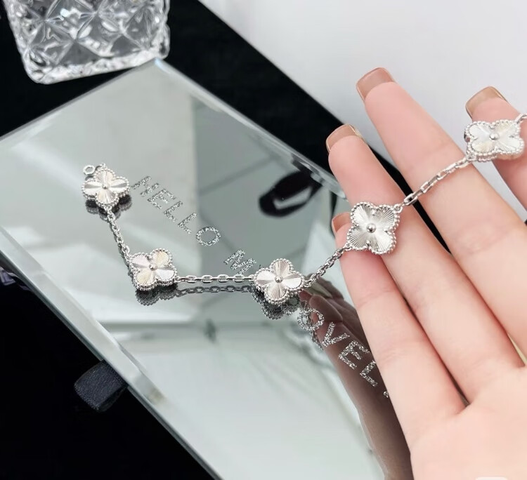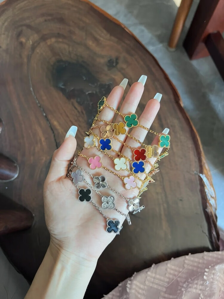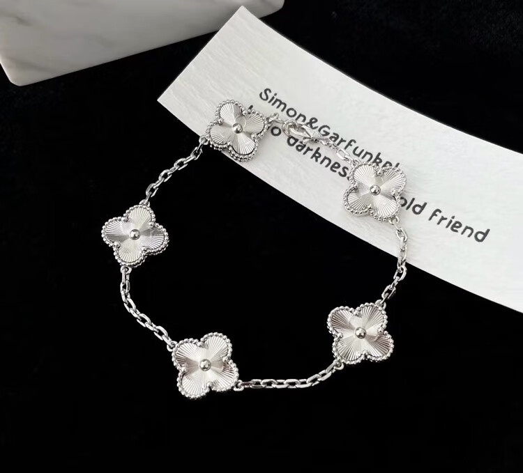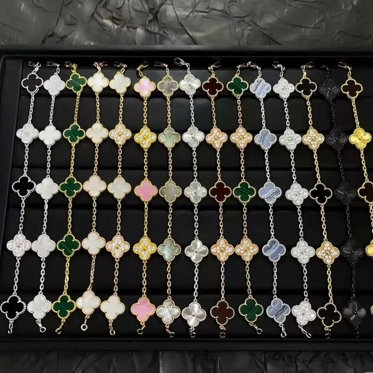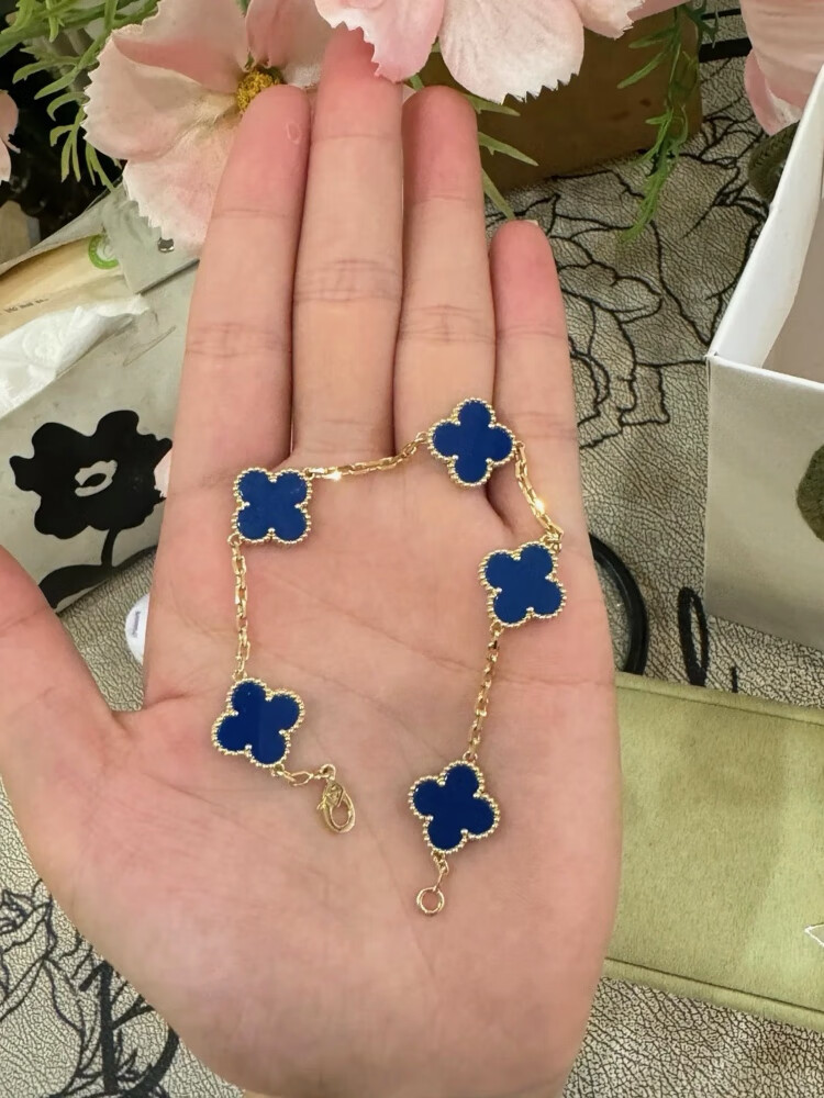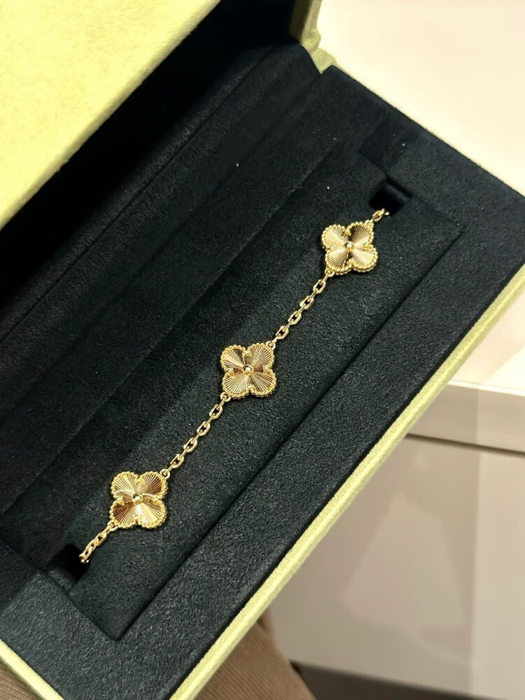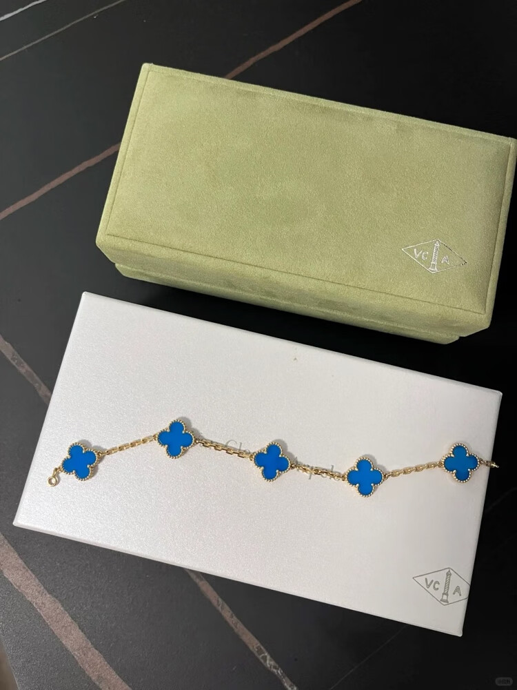 VCA Van Cleef's same four-leaf clover 18K gold bracelet for girls, light luxury high-end five-flower bracelet, versatile gift, gold white mother-of-pearl precision five-flower bracelet, with counter gift box