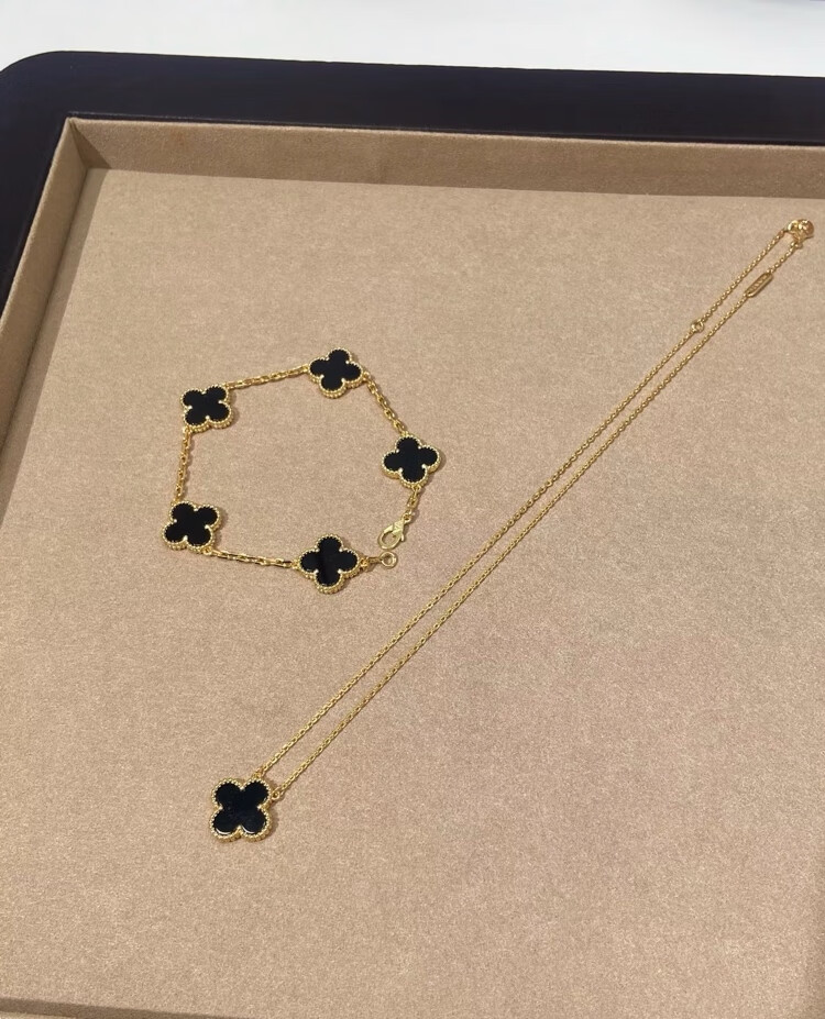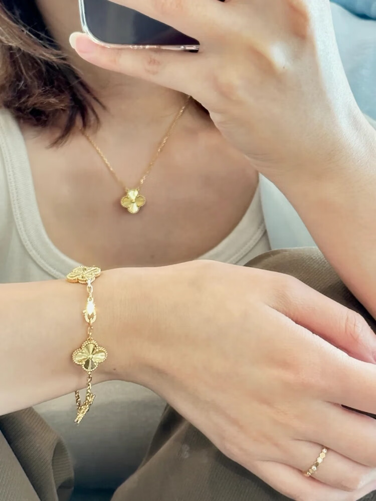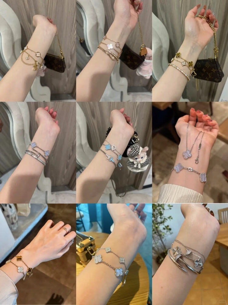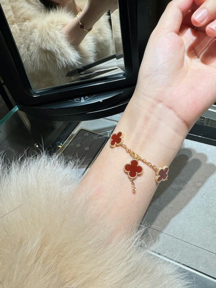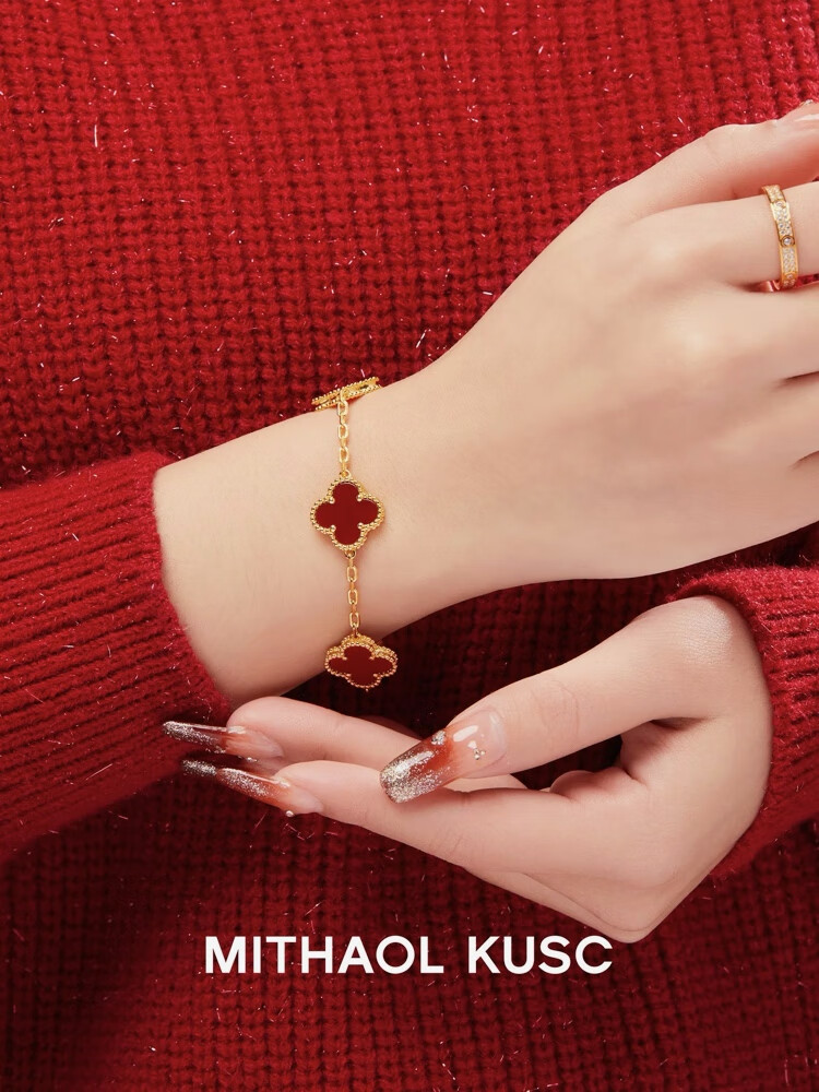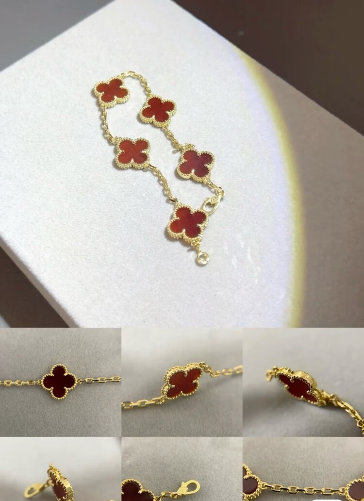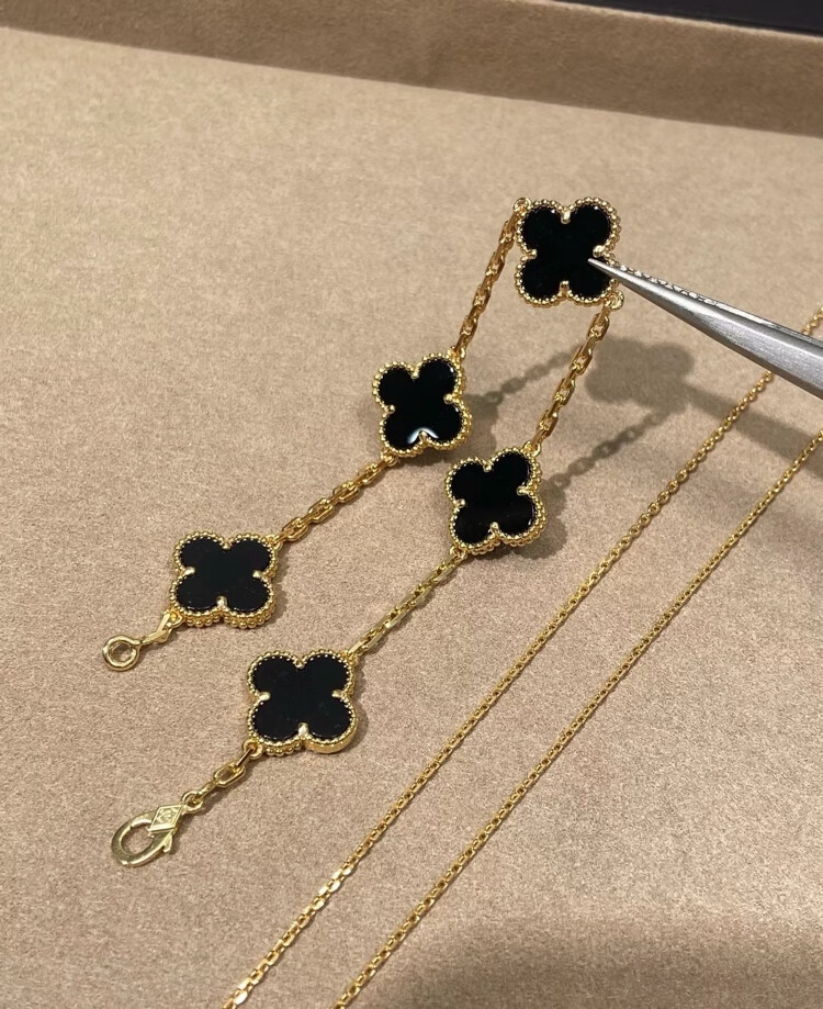 VCA Van Cleef's same four-leaf clover 18K gold bracelet for girls, light luxury high-end five-flower bracelet, versatile gift, gold white mother-of-pearl precision five-flower bracelet, with counter gift box