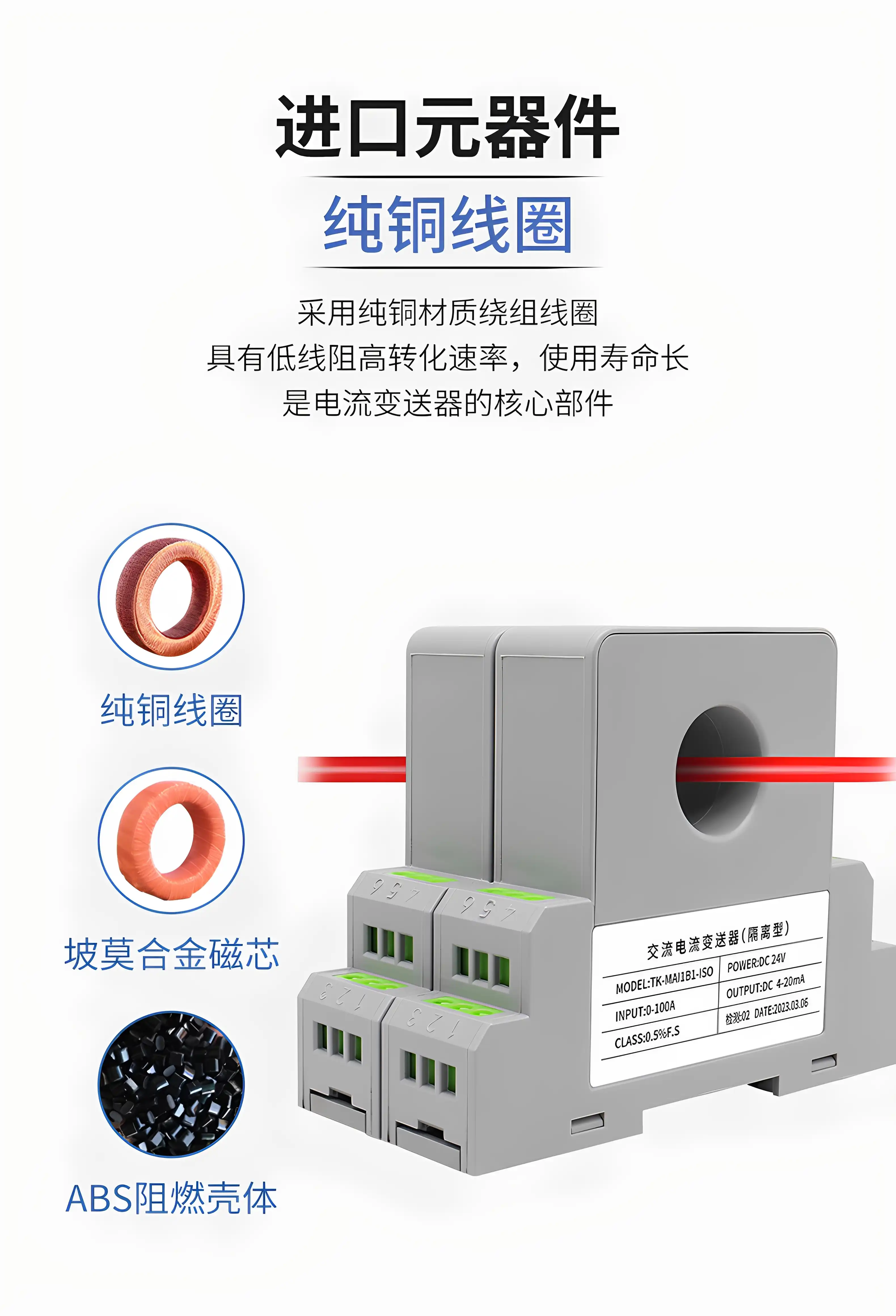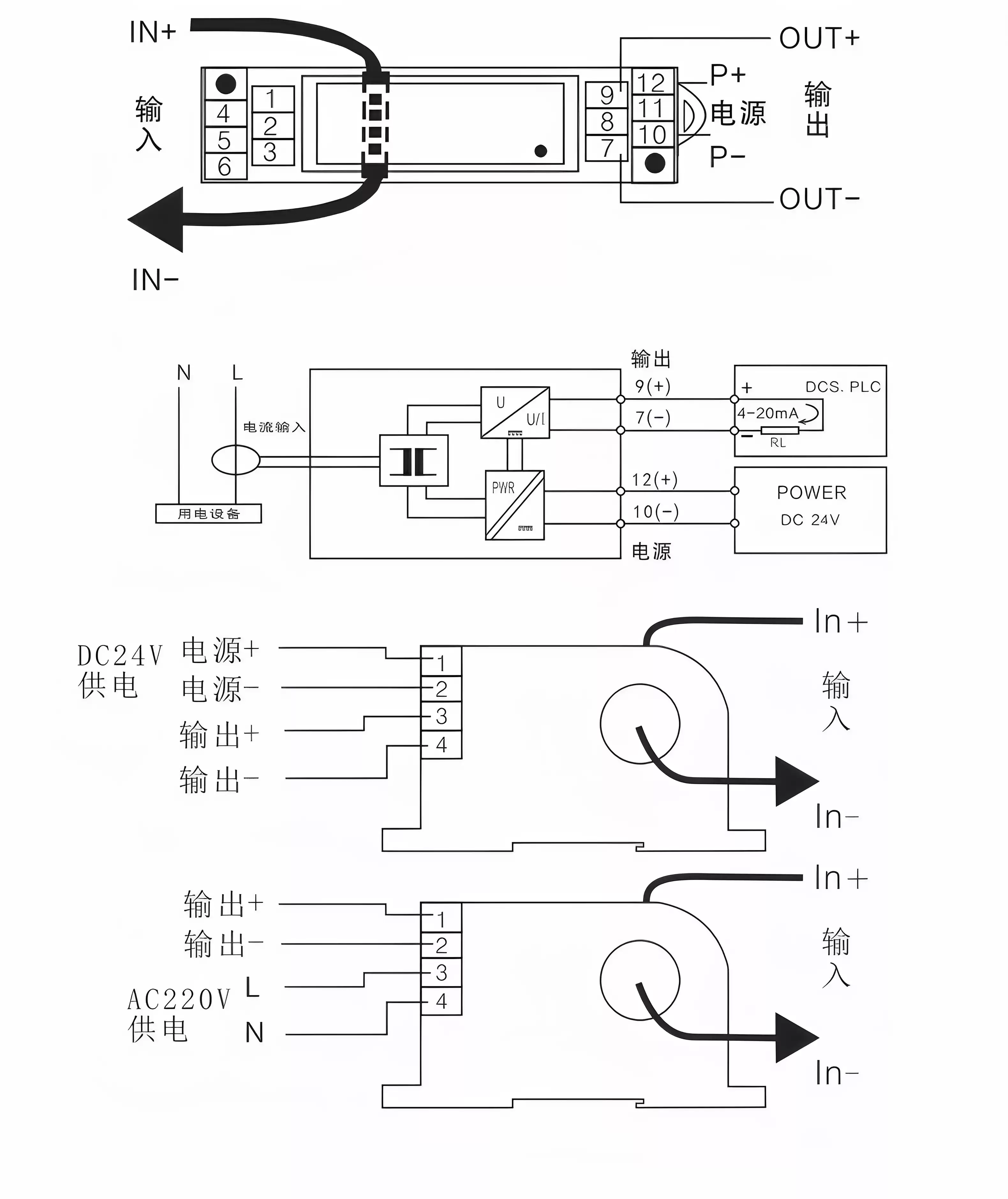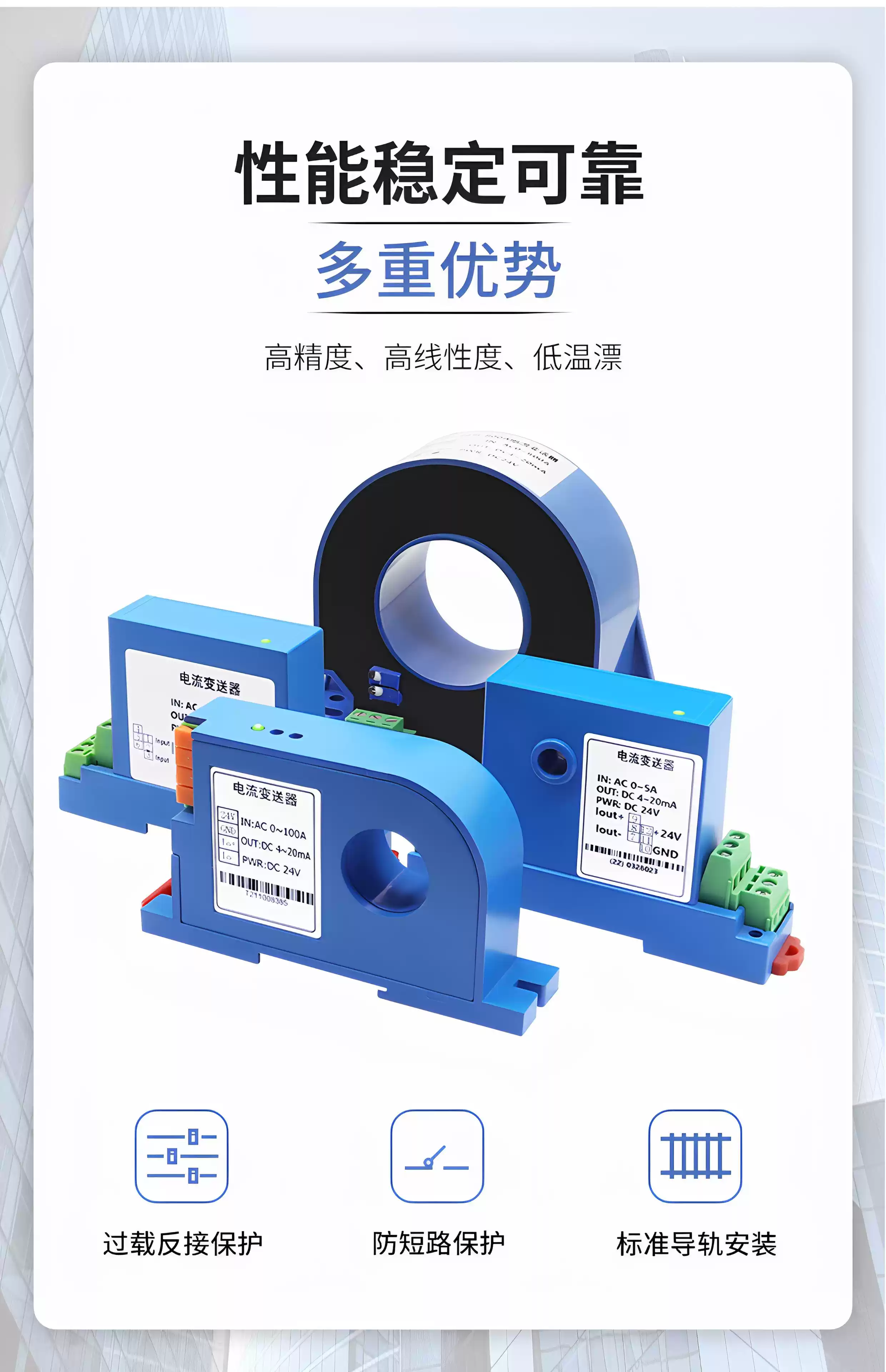 Perforated AC current transmitter Hall DC mutual inductance 5A to 4-20mA single three-phase voltage sensor 485 AC0-10A transmitter wiring 0.3 level