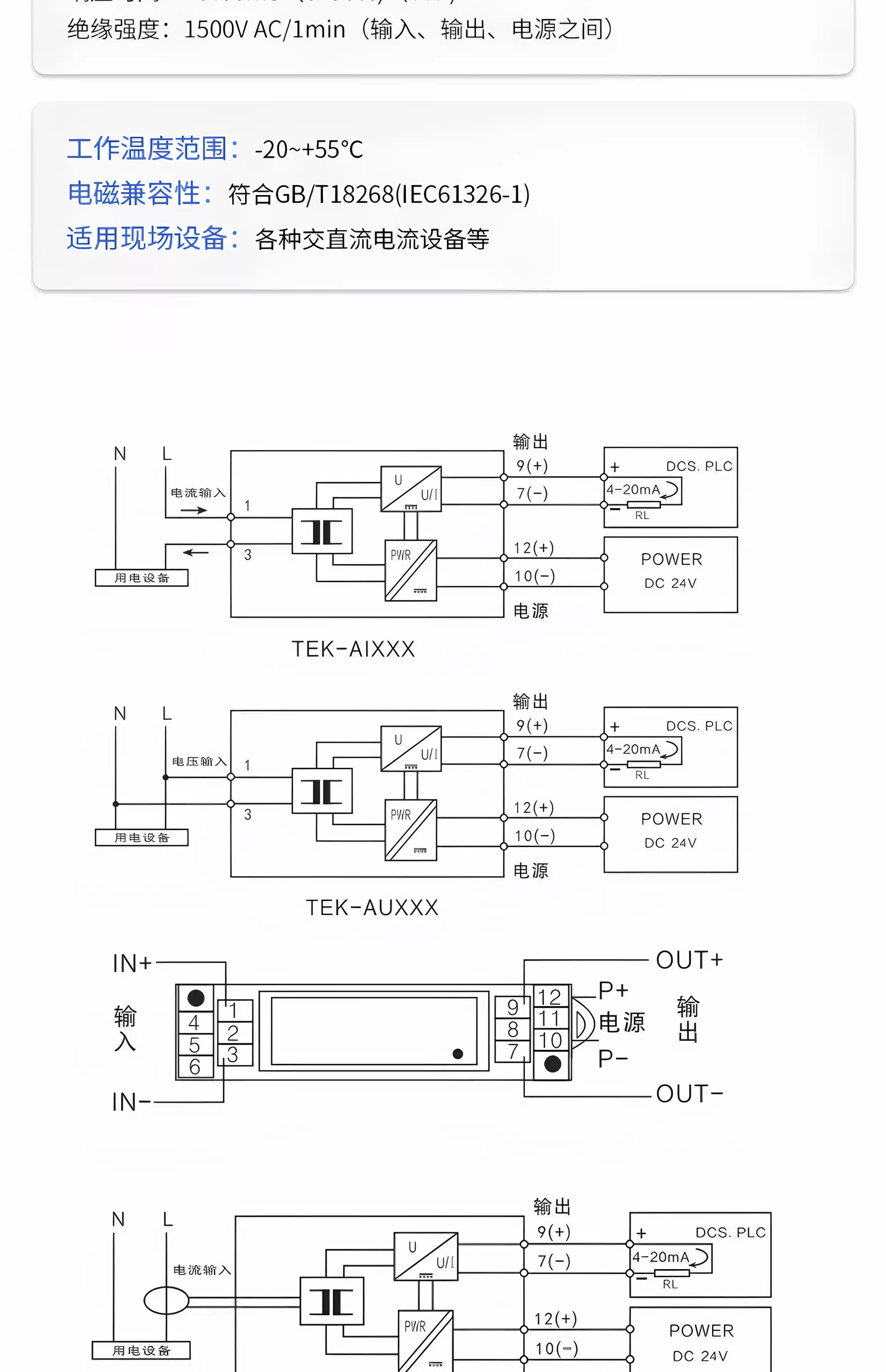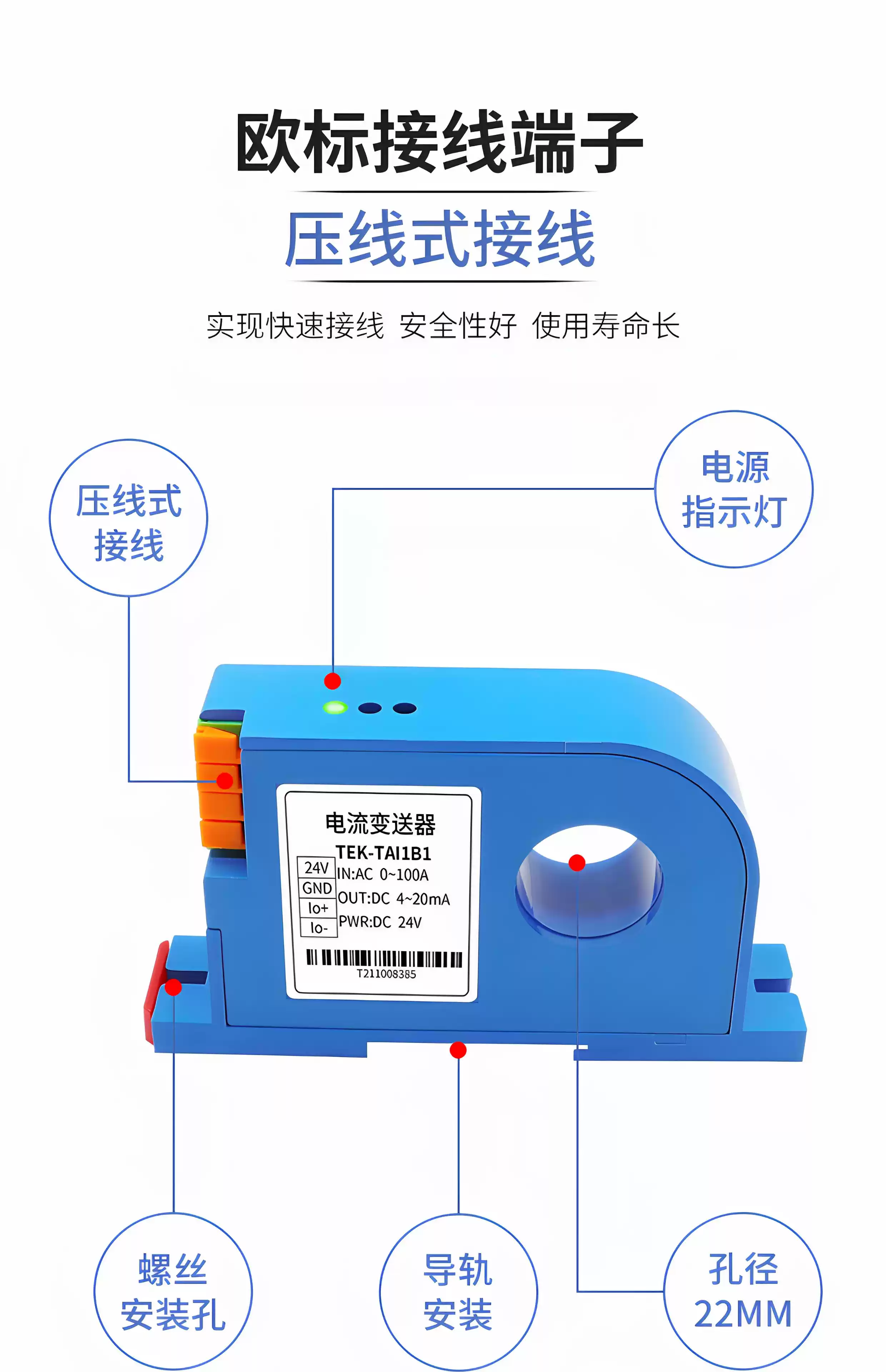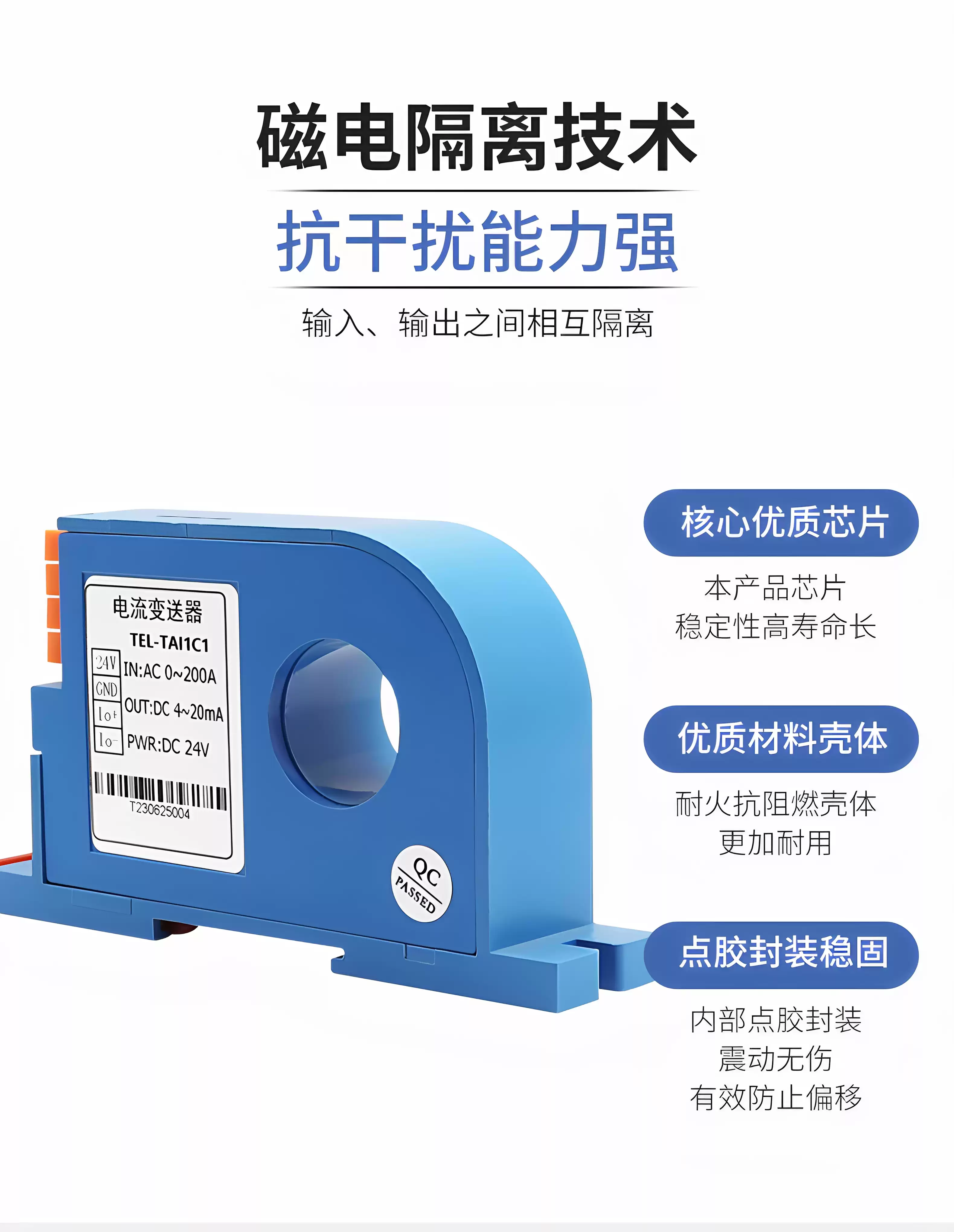 Perforated AC current transmitter Hall DC mutual inductance 5A to 4-20mA single three-phase voltage sensor 485 AC0-10A transmitter wiring 0.3 level