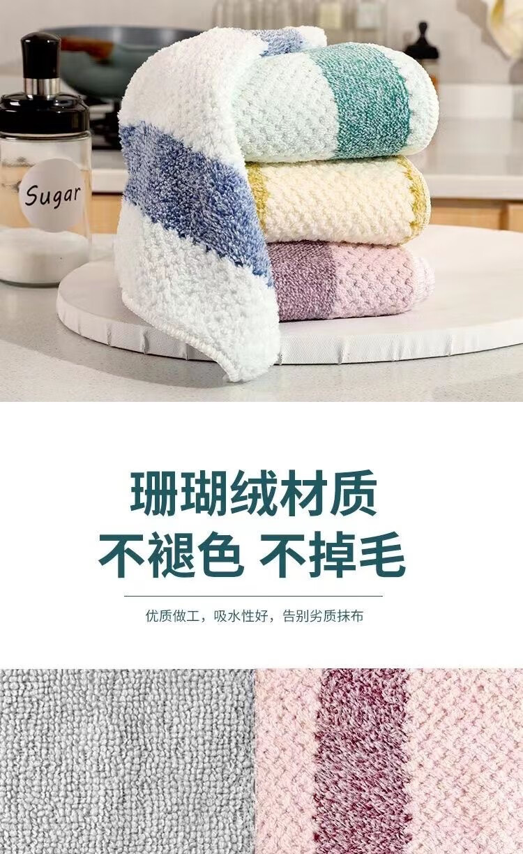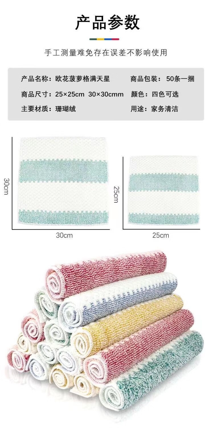Rod wiper fishing towel coral velvet non-stick oil dishcloth thickened oil-removing and water-absorbing outdoor fishing cleaning rag 3 strips of pineapple plaid (random color)