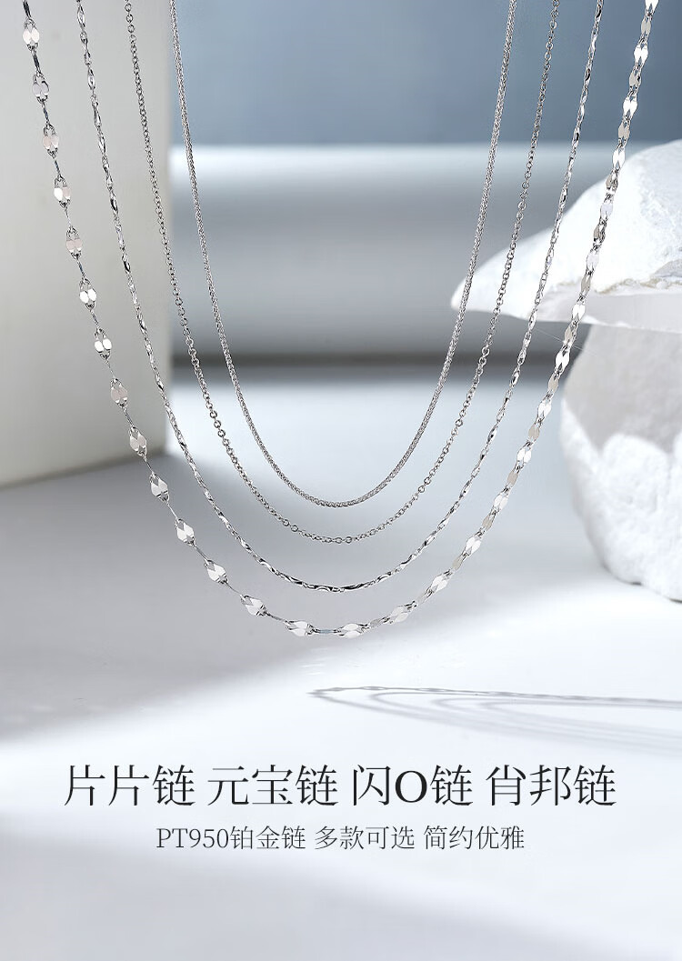 Meluxe Pt950 platinum necklace with flash O chain platinum chain plain chain birthday gift for wife flash O chain about 1.85g-45cm