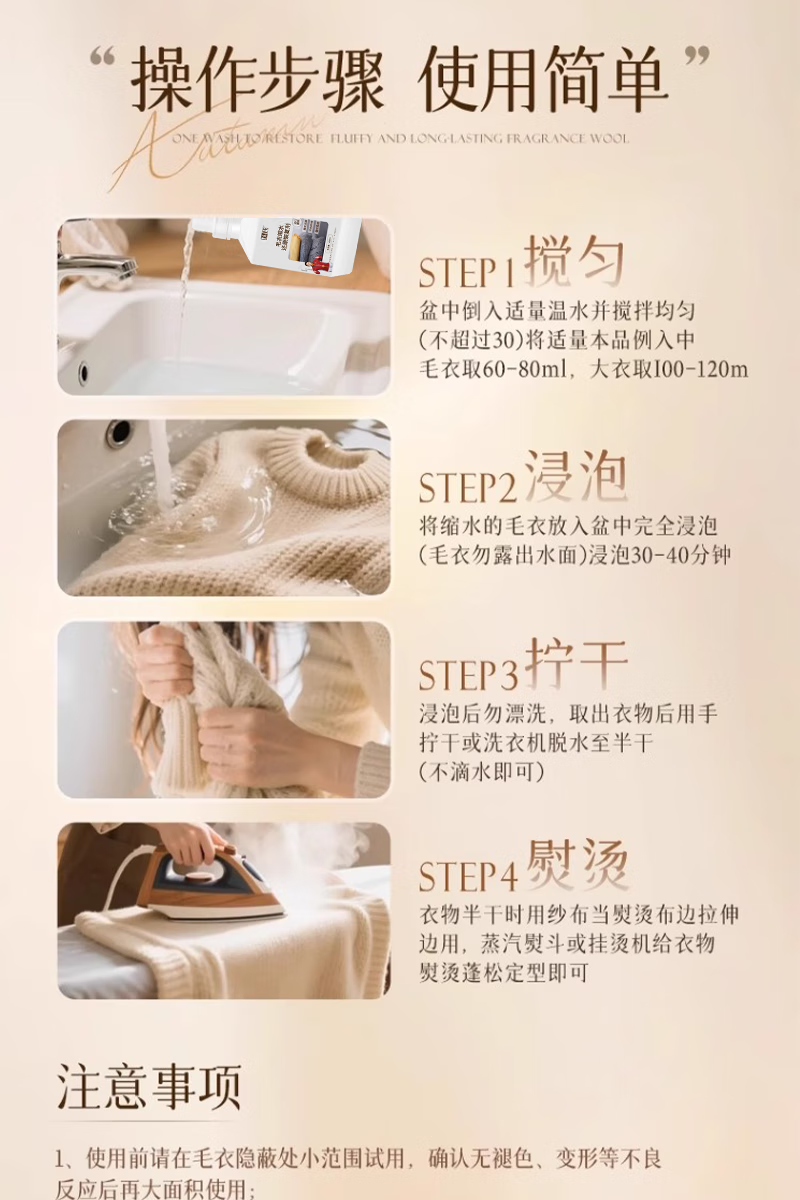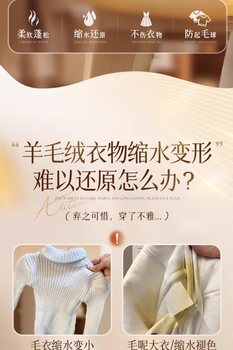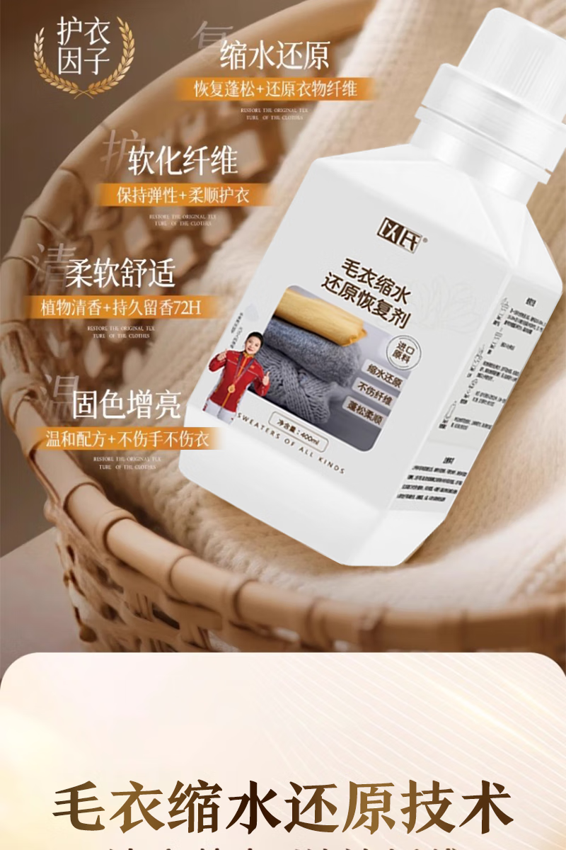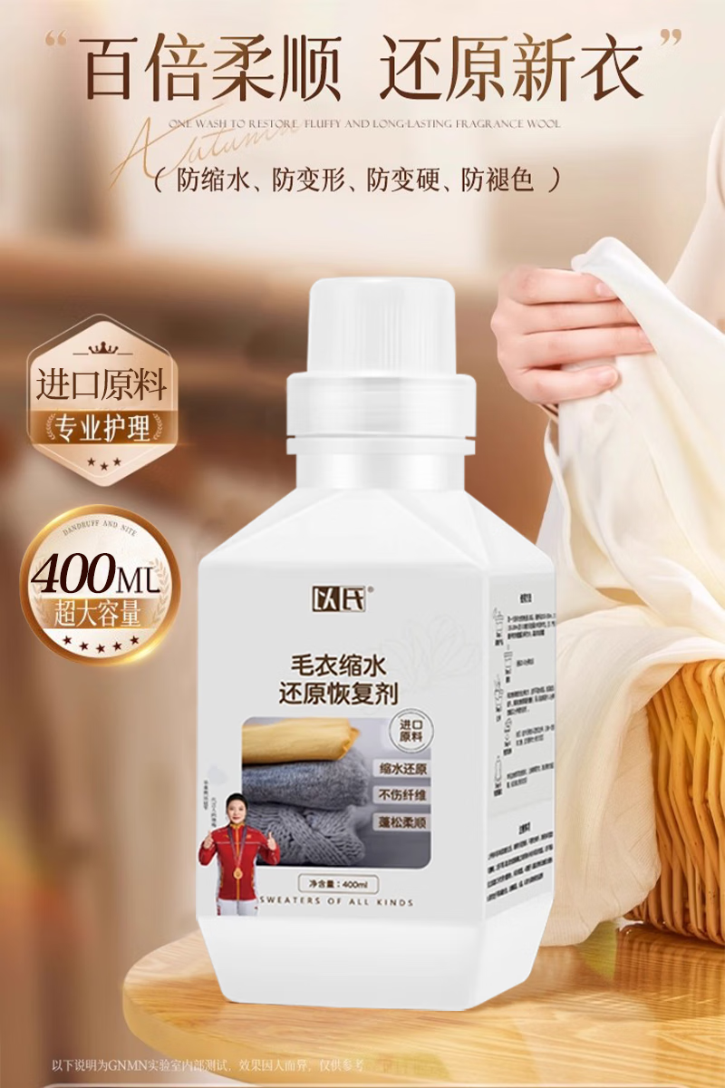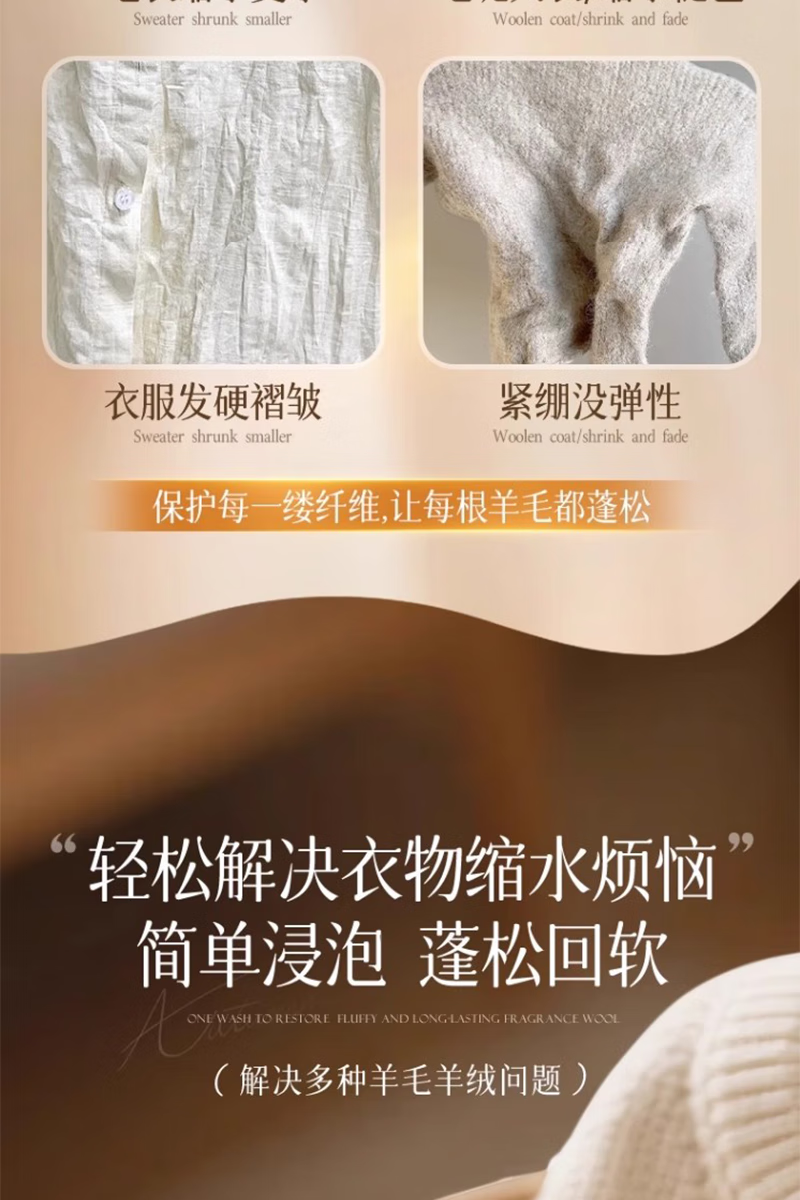 Yishi Cashmere Wool Shrinkage Reducing Agent Cashmere Sweater Shrunk and Fluffy Enlargement Recovery Wool Special Care and Washing Combination Shrinkage Reduction Recovery Agent + Special Care Solution