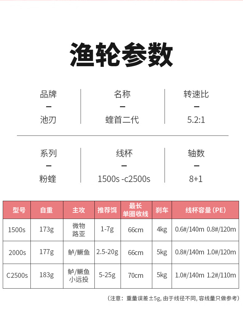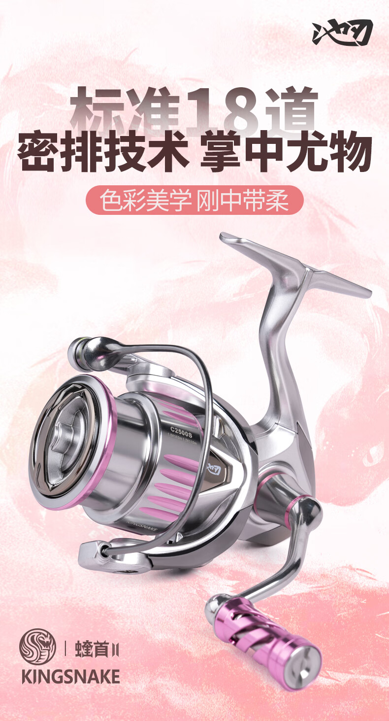 Chi-Blade Pink Viper's standard close-packed 18-lane spinning wheel, Viper's first and second generation carbon fiber micro-object shallow line cup fishing reel, Luya Fishing Reel Standard close-packed 18-lane C2500s (pink wheel bag included)