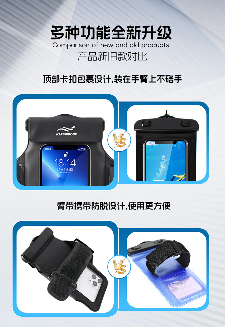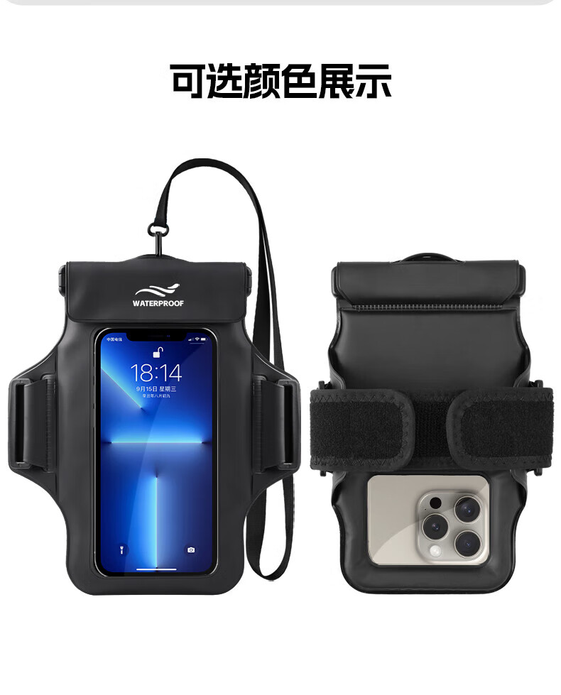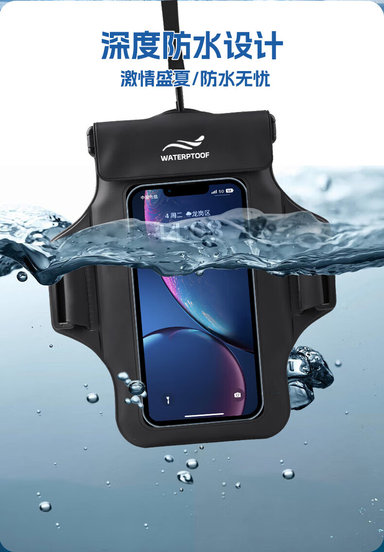 MieLanat mobile phone waterproof bag with touch screen swimming rafting hot spring takeaway hanging neck arm arm sponge waterproof mobile phone case black