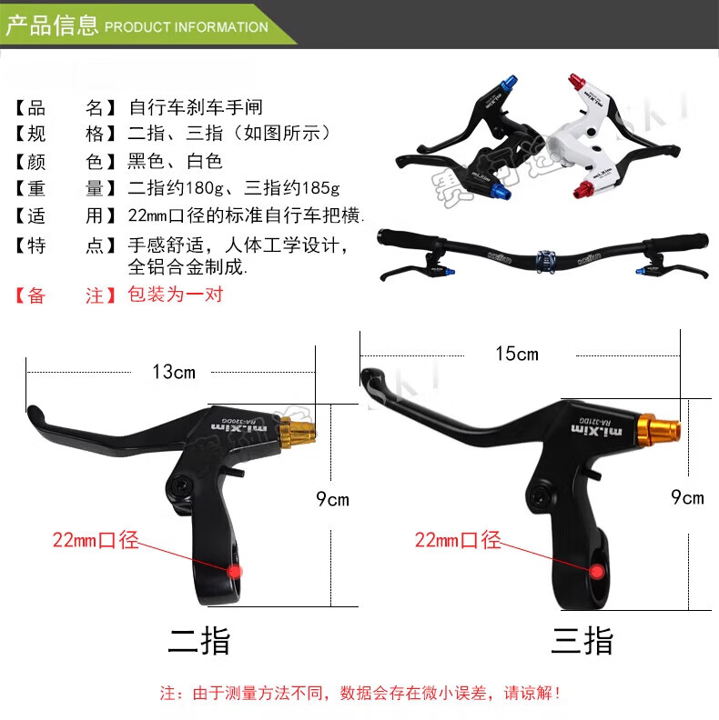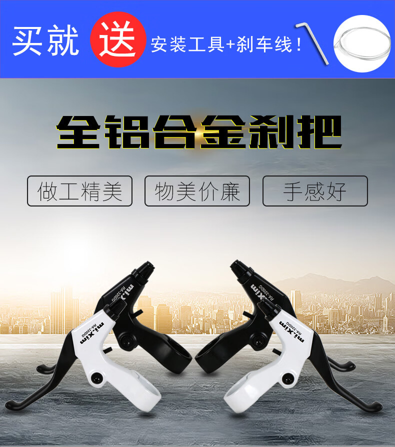 Shantou Lincun punch-free water bottle cage, aluminum alloy dead-fly bicycle, mountain bike, V disc brake handle, brake handle, handbrake, folding bike, two-finger pure black, 1 pair (free tools + cable)