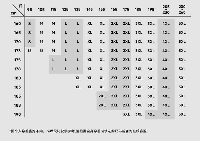 China (cm) 160-165/84-86 165-170 / 88-90 167-172 / 92-96 168-173 / 98-102 170-176 / 106-110