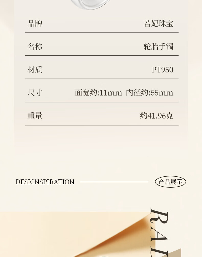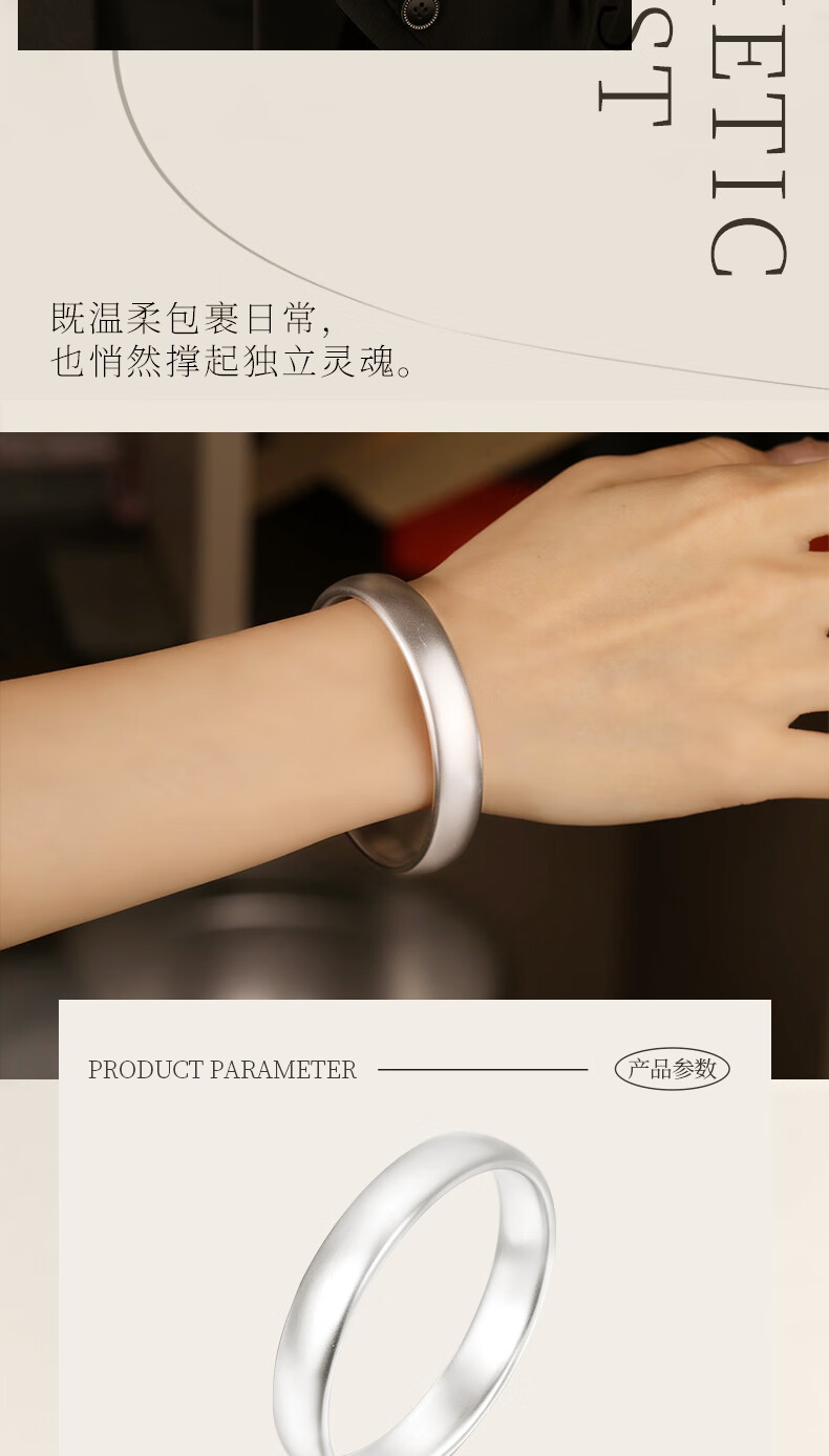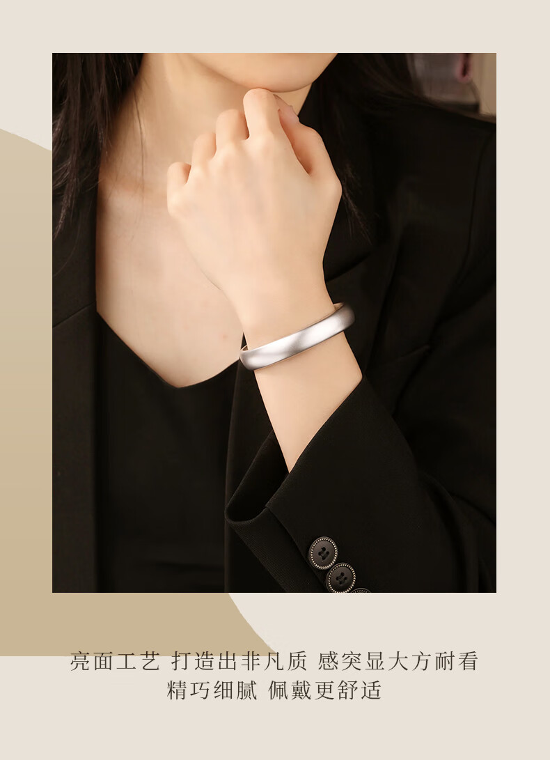 Ruofei platinum bracelet for women pt950 platinum women's bracelet semi-solid ancient method round tire gold bracelet for women as a gift inner diameter 60mm weight 41-43g thick about 11mm