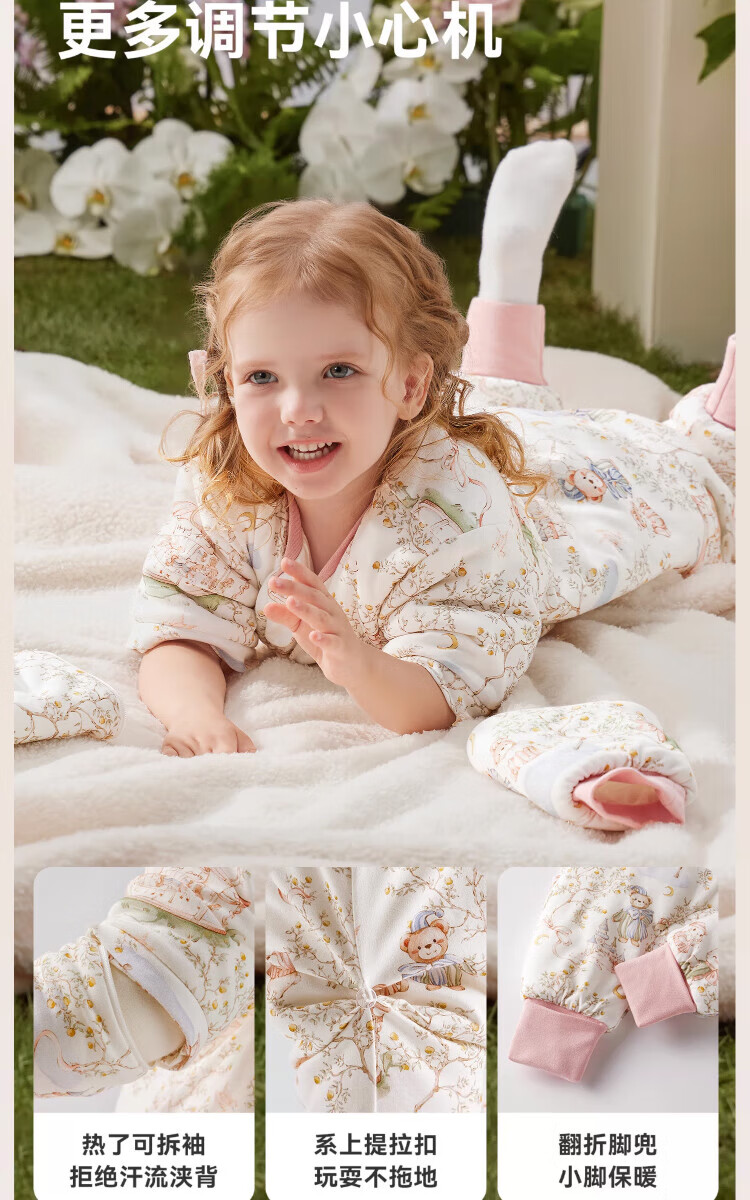 AIBEDILA baby sleeping bag, thin autumn and winter constant temperature anti-kicking quilt for babies and children in winter, universal for all seasons, medium thick in autumn and winter, room temperature 10-18, Bellis College L size, suitable for height 90-105cm
