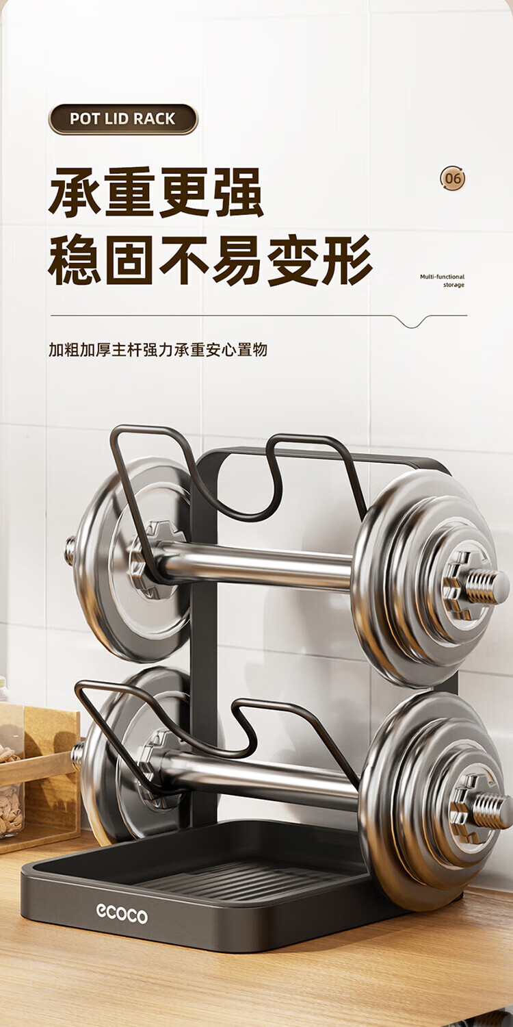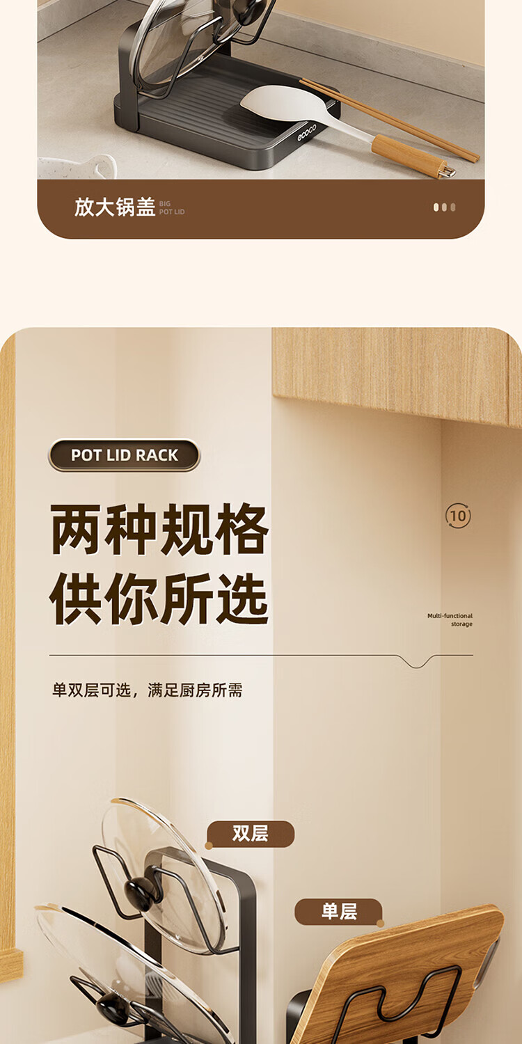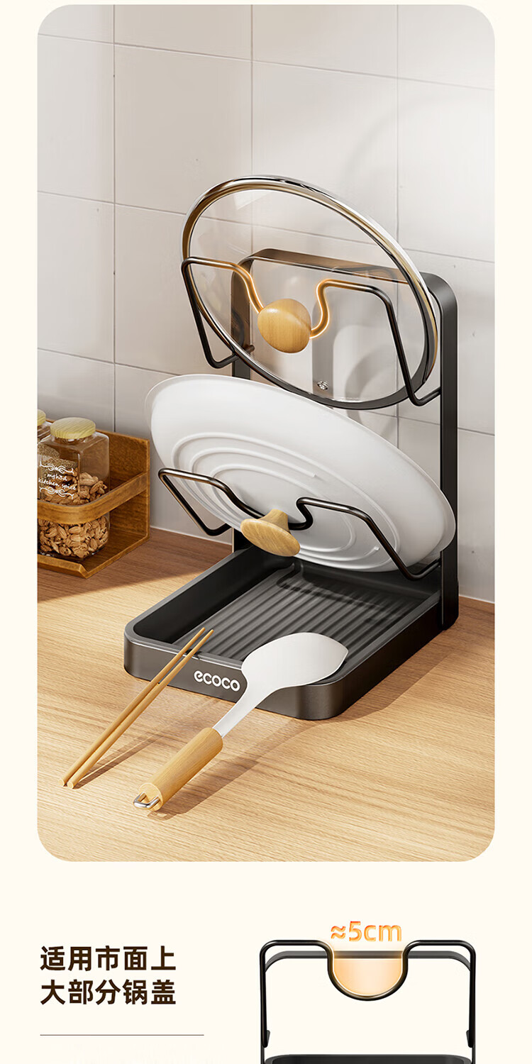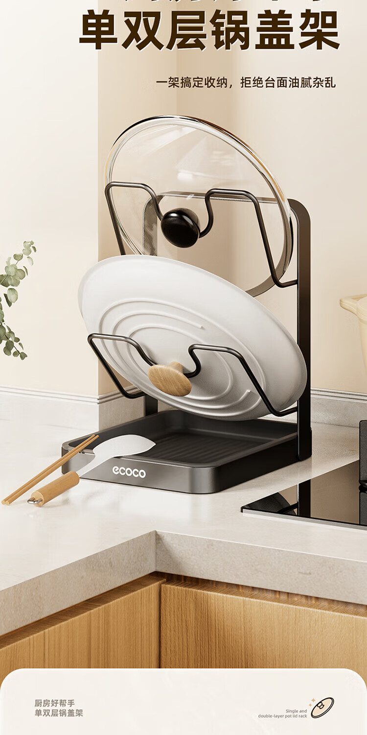 Ecoco pot lid rack countertop kitchen household cutting board chopping board pot lid rack multi-functional punch-free storage rack gun gray double layer pot lid rack - thickened version can accommodate both large and small pot lids