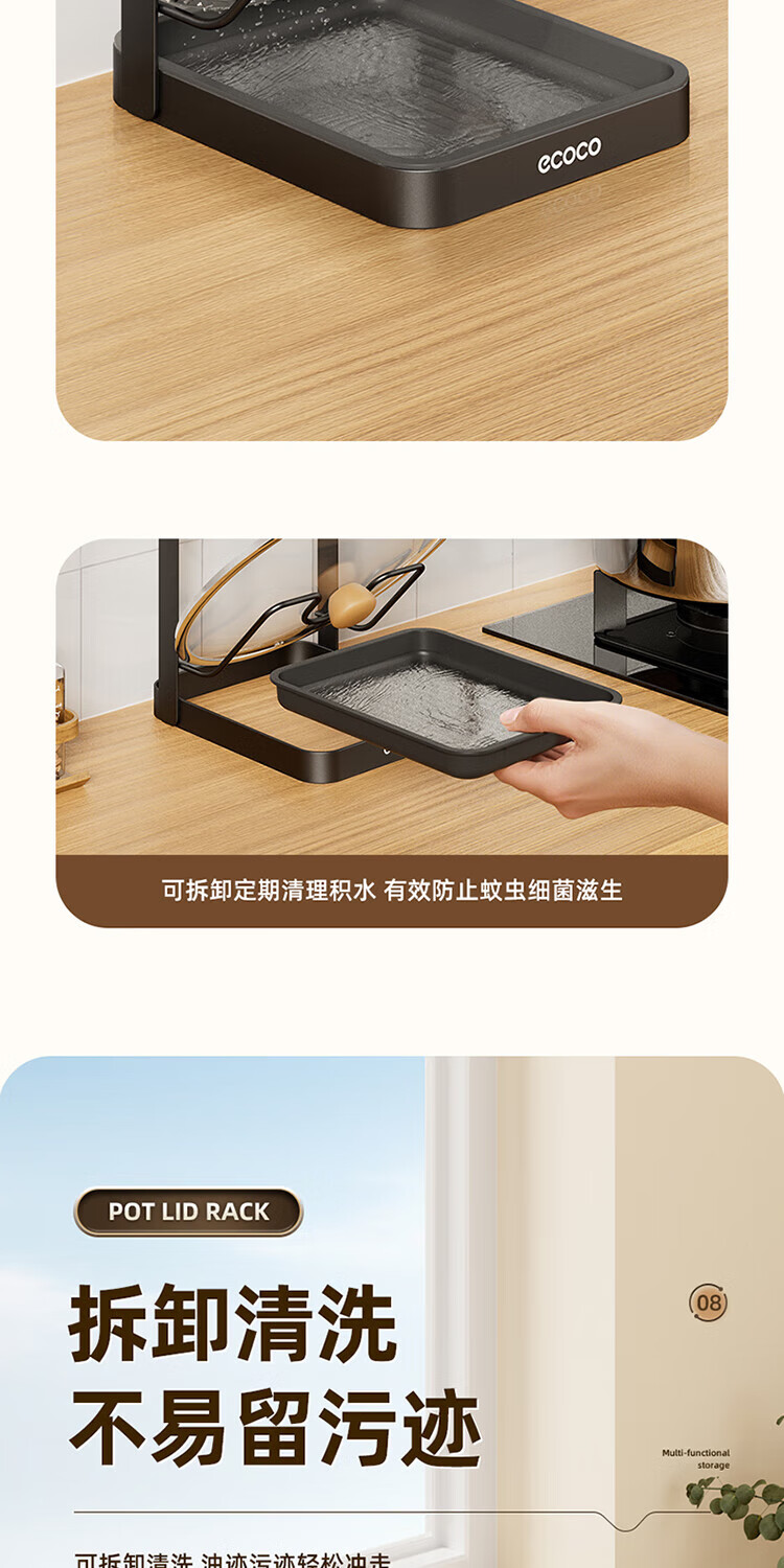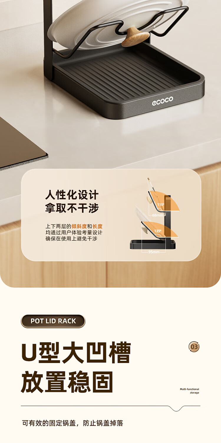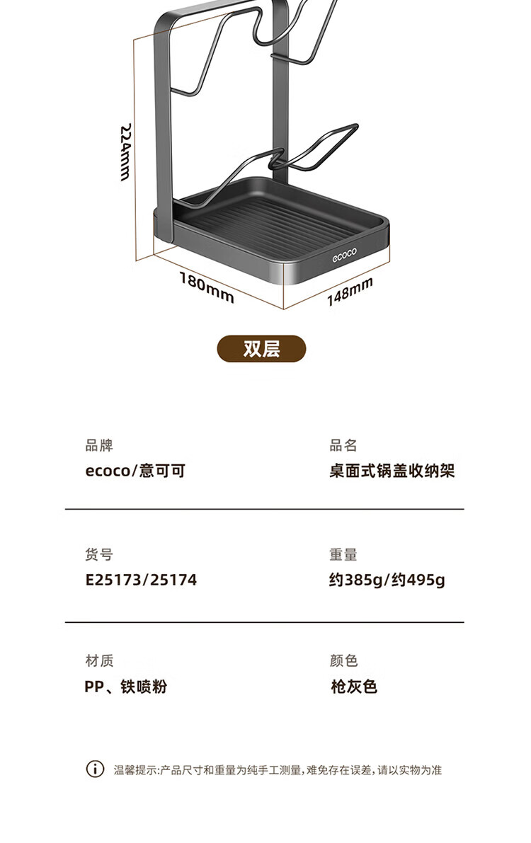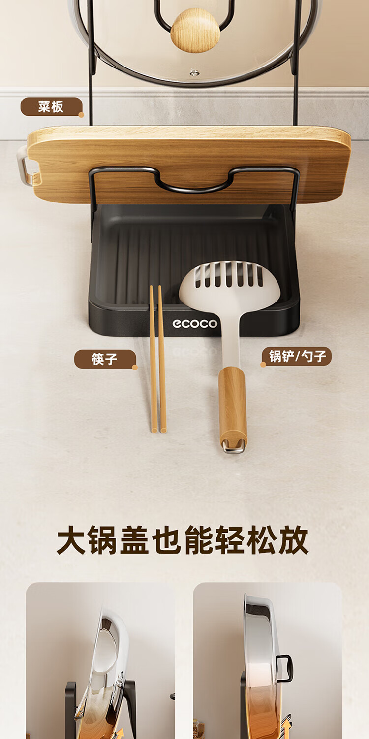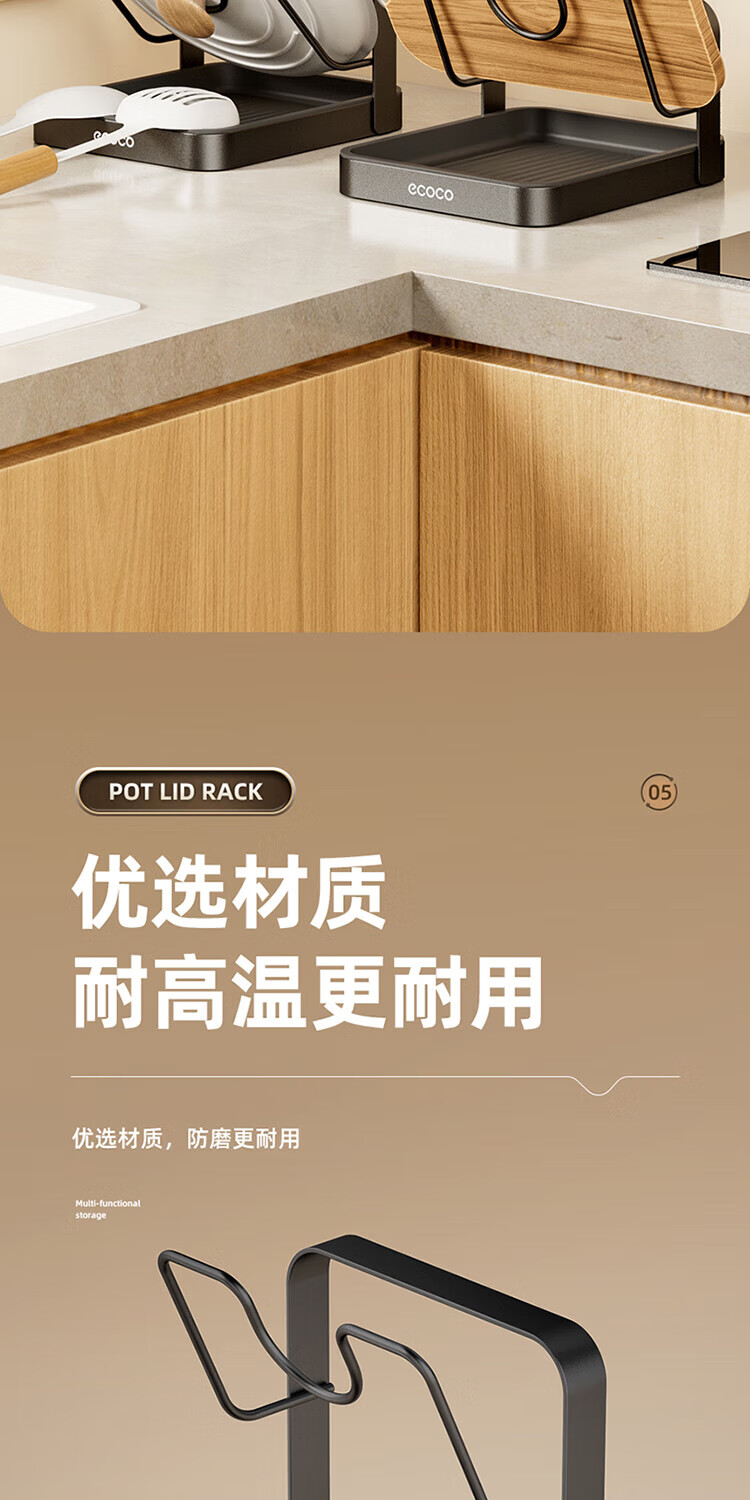 Ecoco pot lid rack countertop kitchen household cutting board chopping board pot lid rack multi-functional punch-free storage rack gun gray double layer pot lid rack - thickened version can accommodate both large and small pot lids