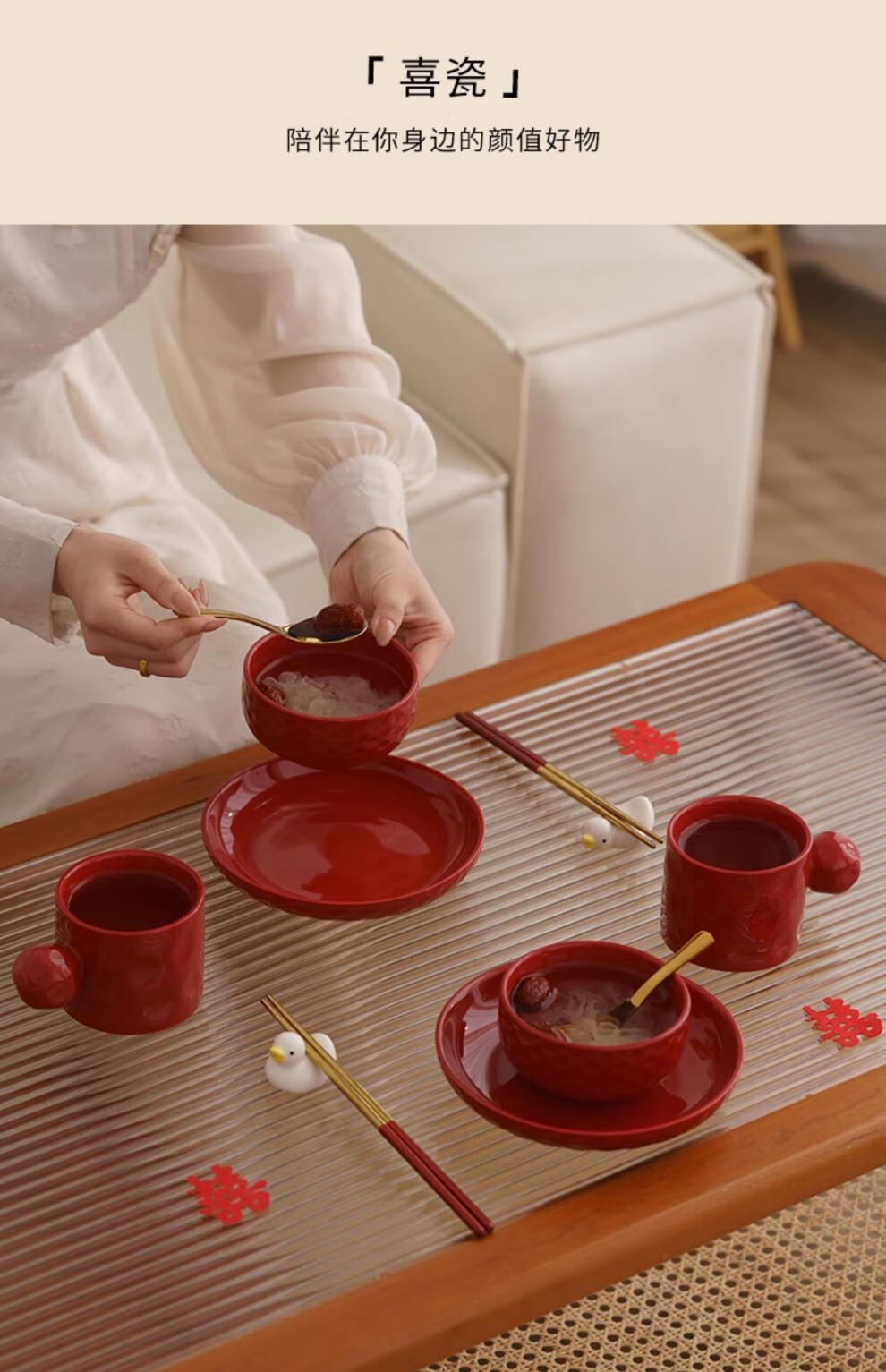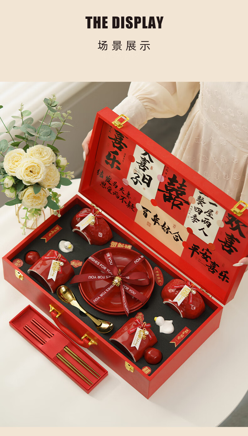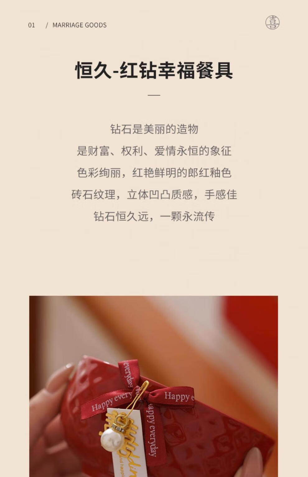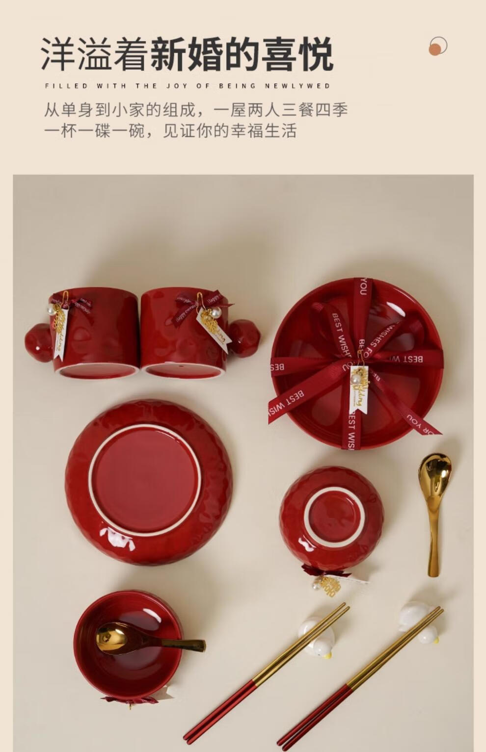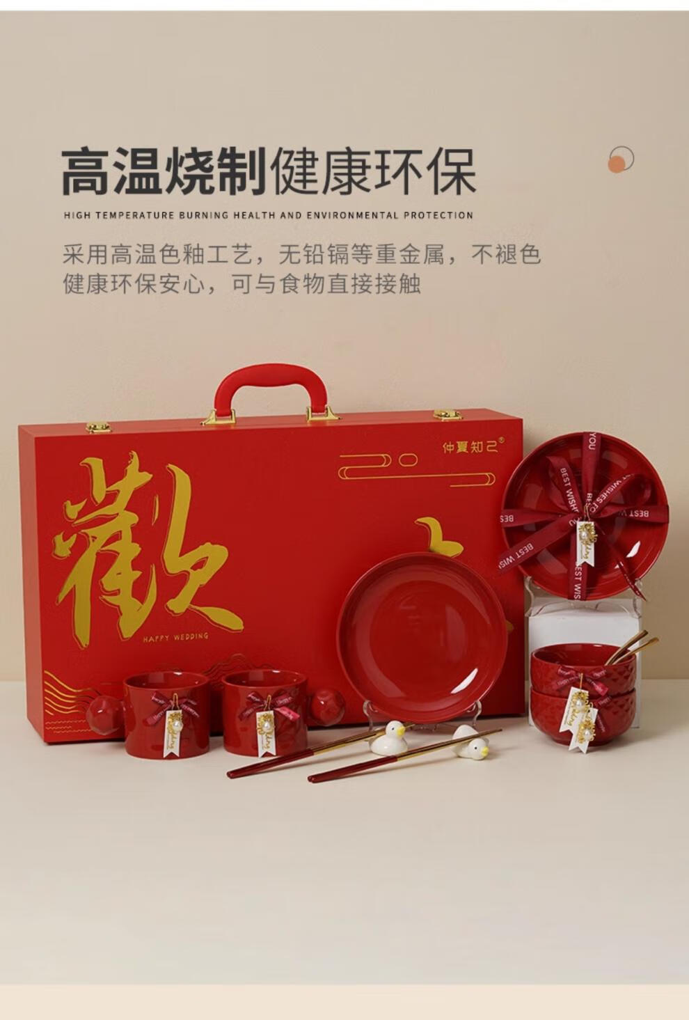 Fat Donglai's eight-piece engagement gift set of the same style is a mid-summer confidant's wedding gift for the newlyweds, a bowl, chopsticks and tableware set. Hengjiu-Red Diamond Happy Tableware 12-piece Suitcase