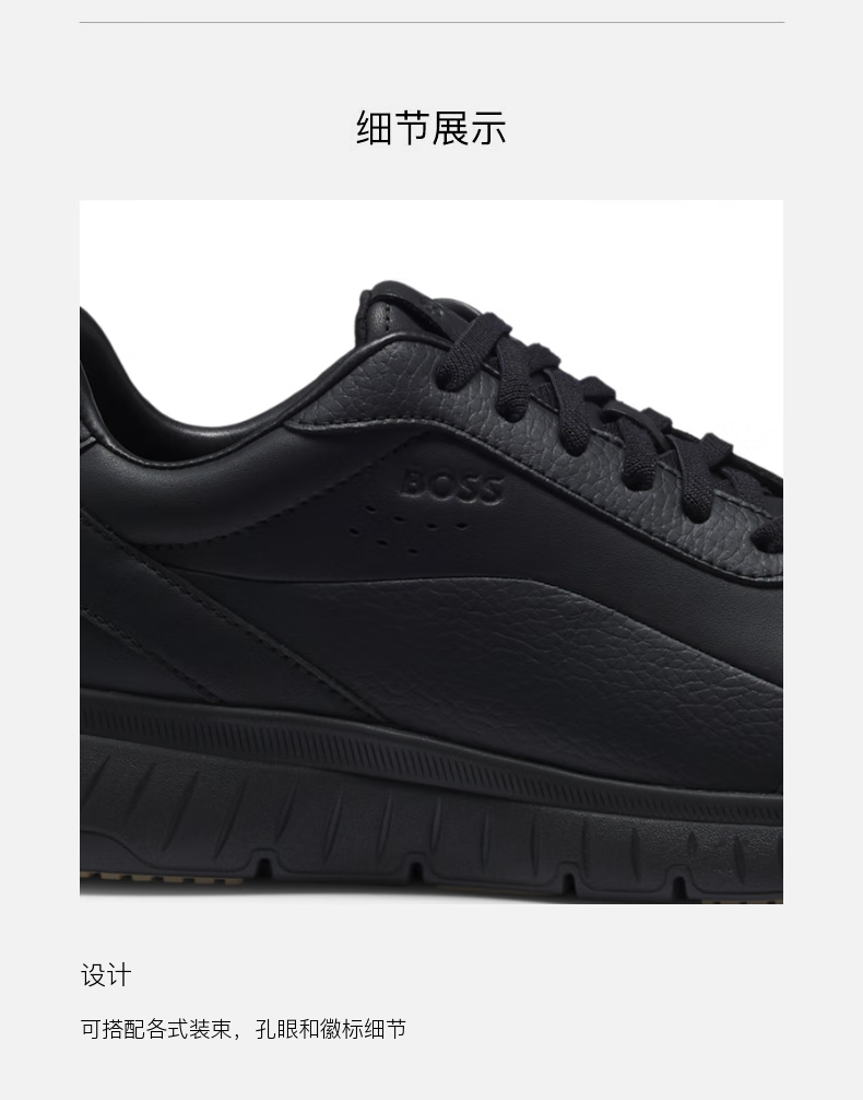 Hugo Boss BOSS New Year's Gift Men's 25th Winter New Grained and Solid Color Leather Sneakers 005-Black 41
