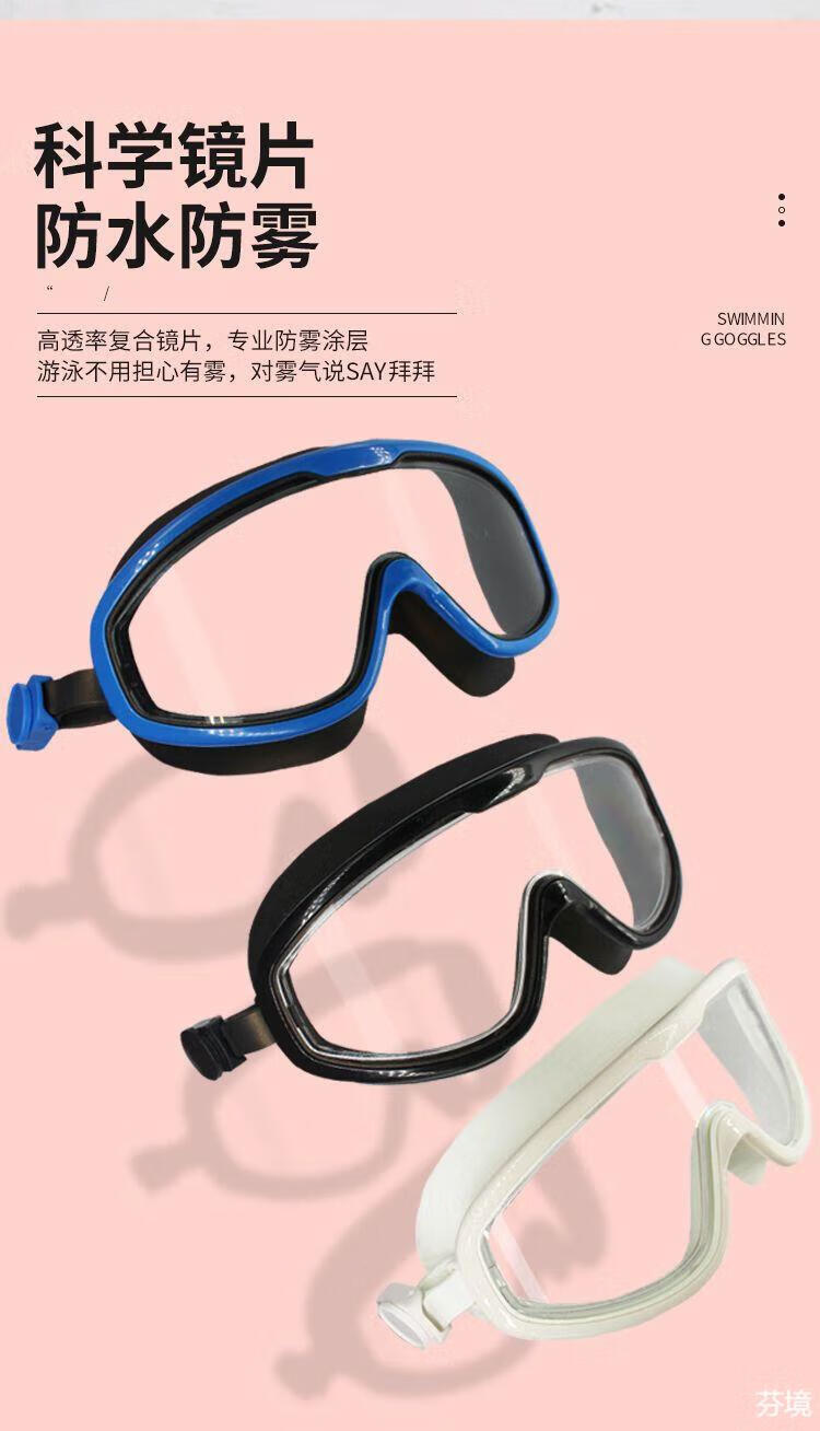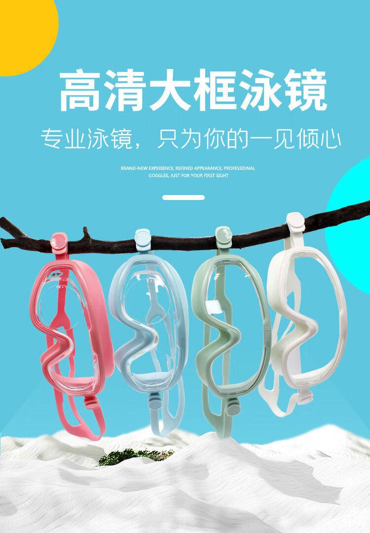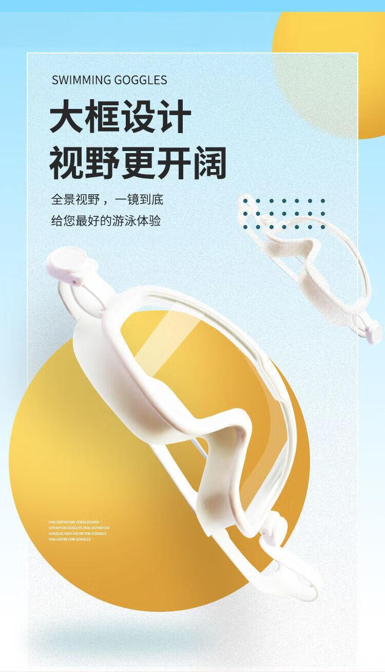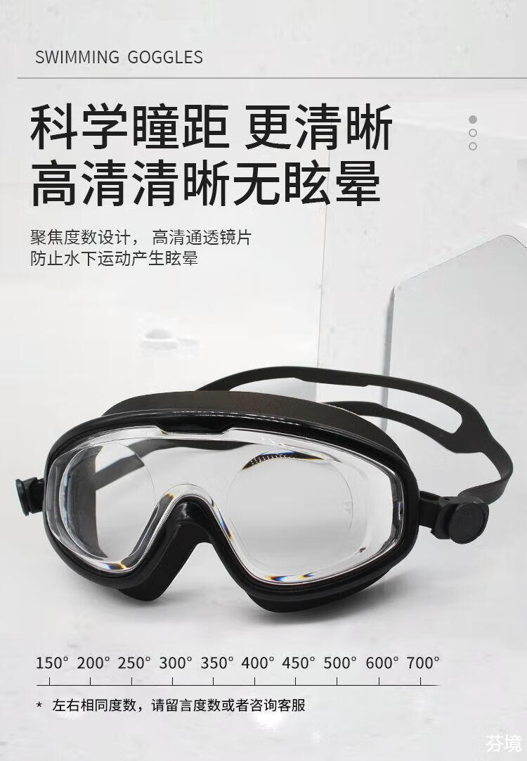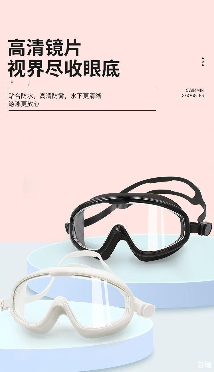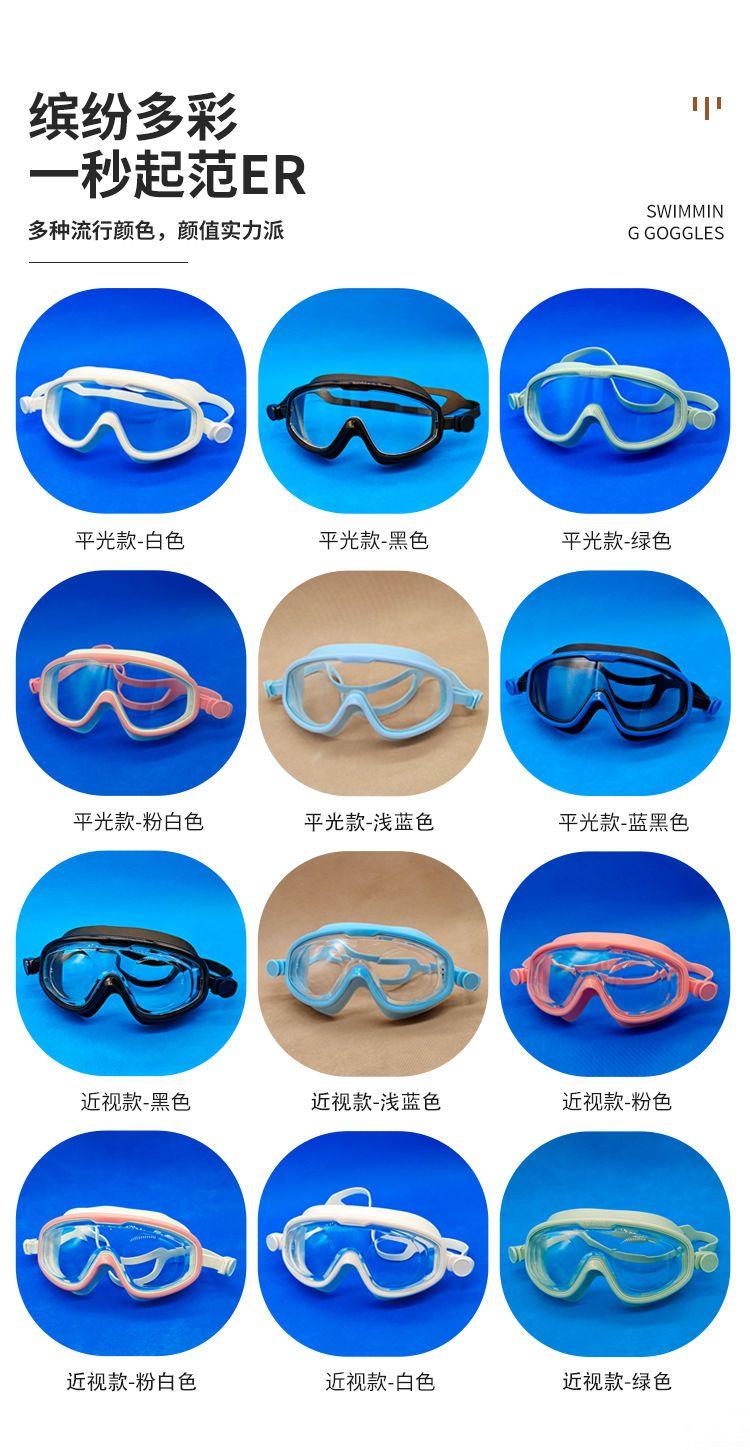 Goggles, waterproof special swimming goggles, myopic large frame anti-fog for teenagers who are beginners in swimming, complete 360-degree professional assembly 1880-1 large frame flat style - transparent white single swimming goggles (boxed) (attention + nose clip earplugs)