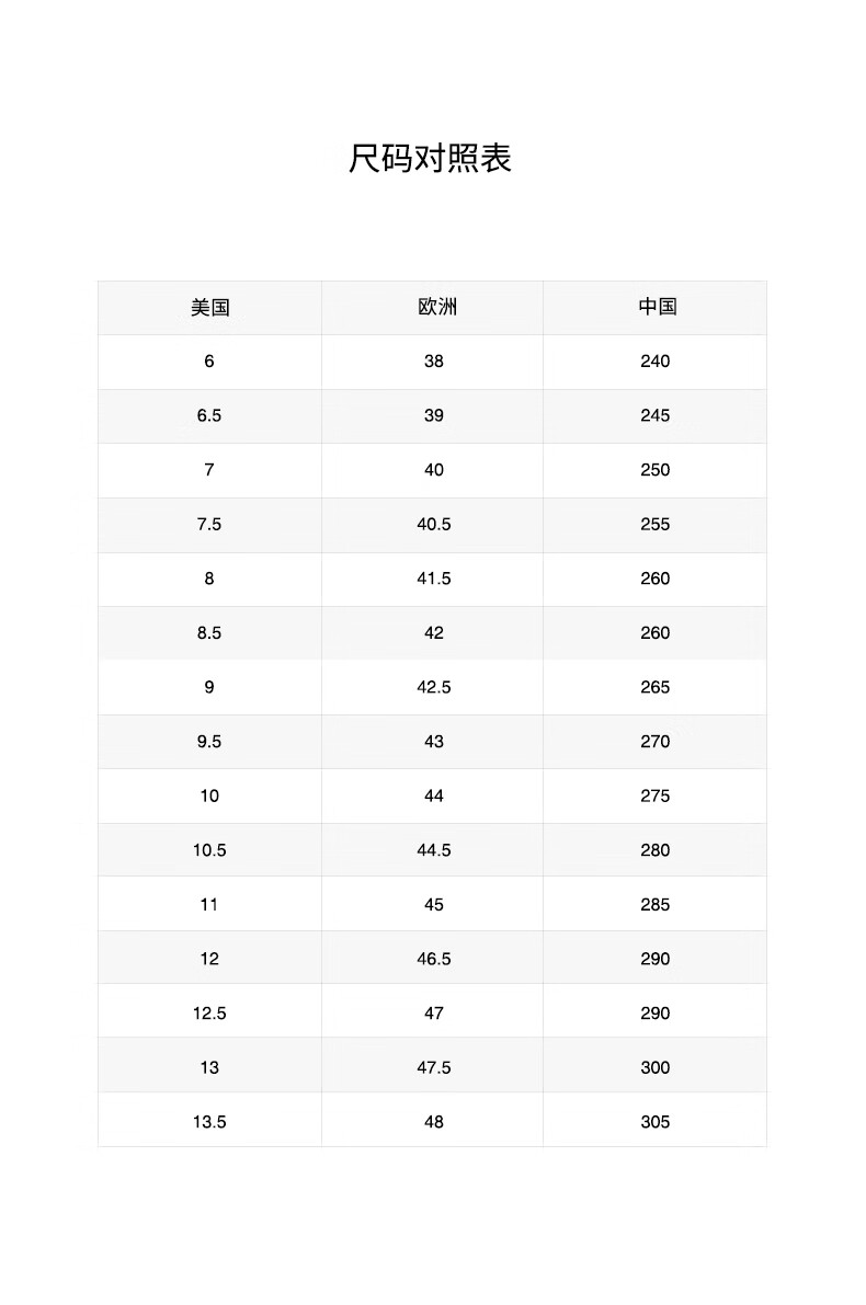 USA 6 7 8 8.5 9.5 10 11 12 12.5 13