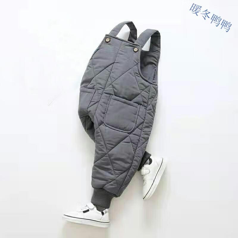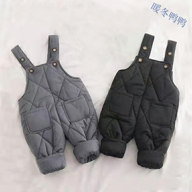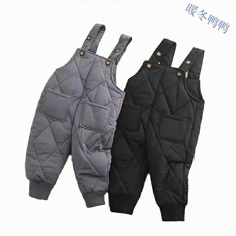Warm winter baby down cotton overalls for toddlers, quilted and warm, women's outer wear with openable stalls, boys' winter baby thickened cotton pants, down cotton black 100
