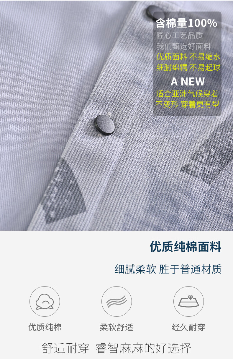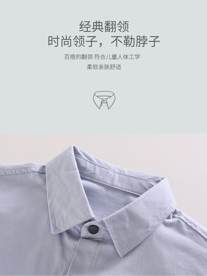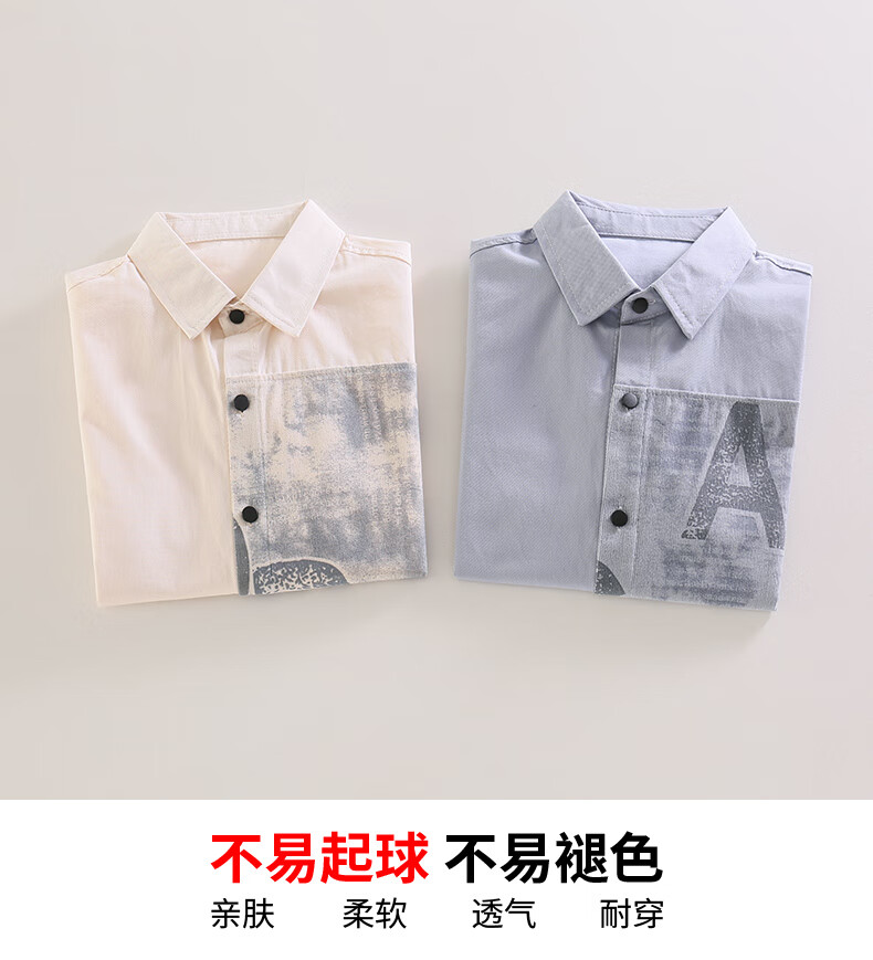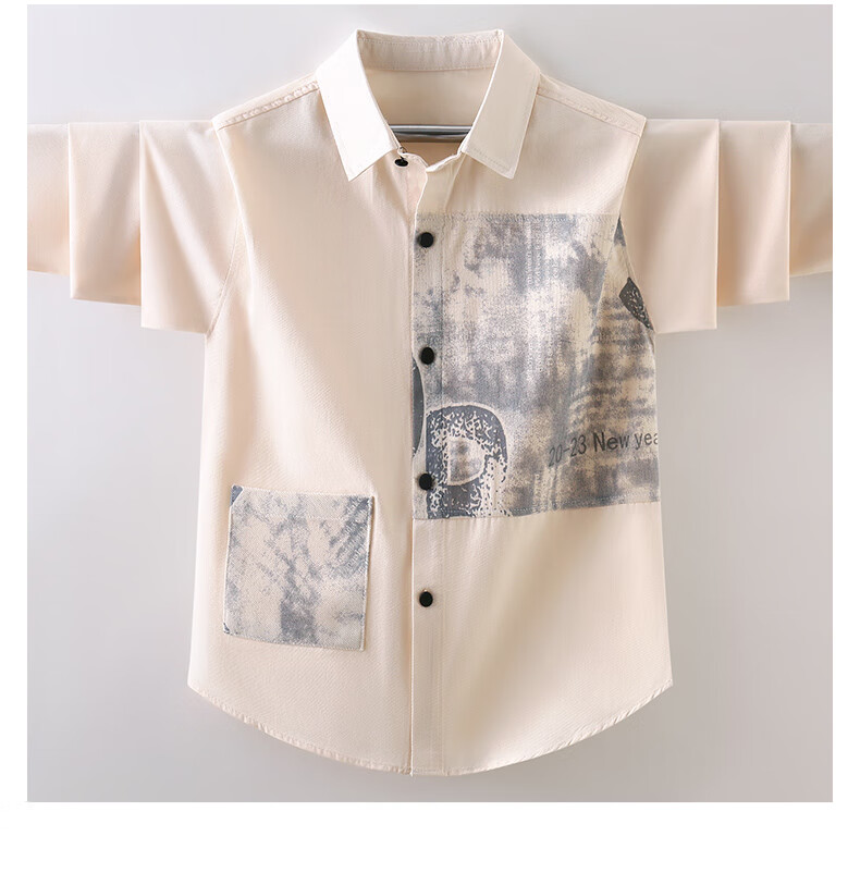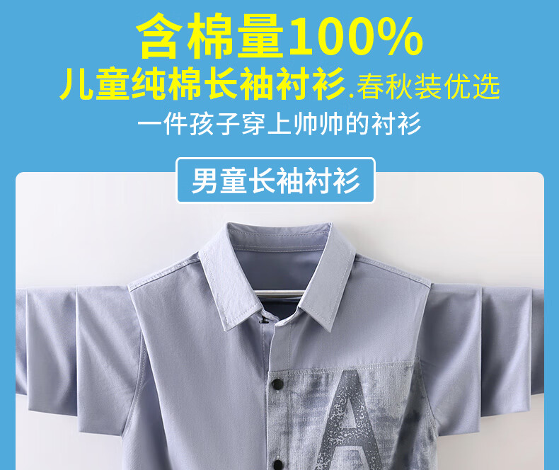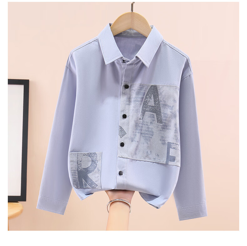 Hengyuanxiang boys' shirt pure cotton long-sleeved spring children's lapel printed shirt baby middle and large children plus velvet thickening modern style blue gray 170 cm
