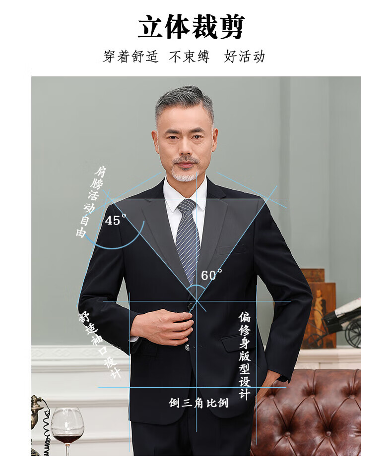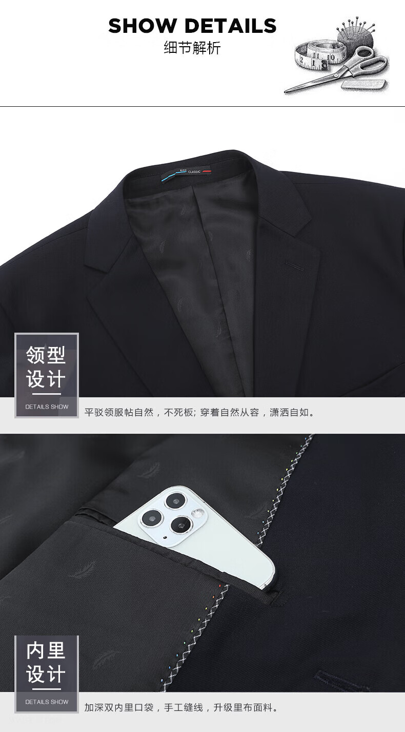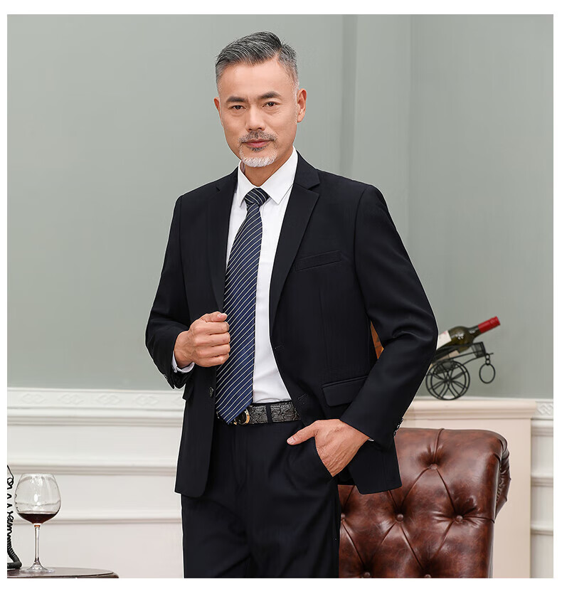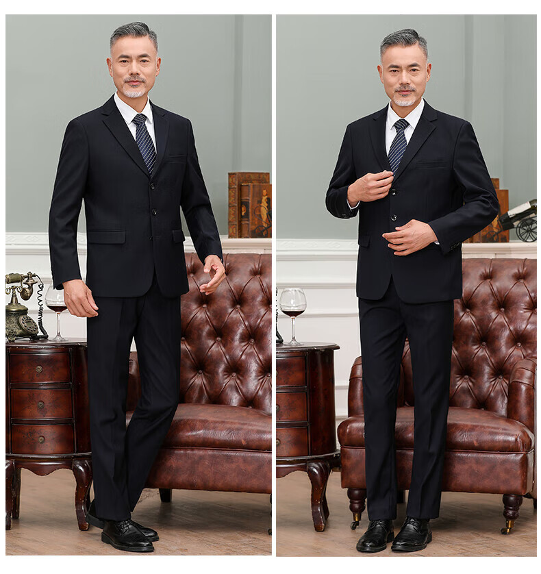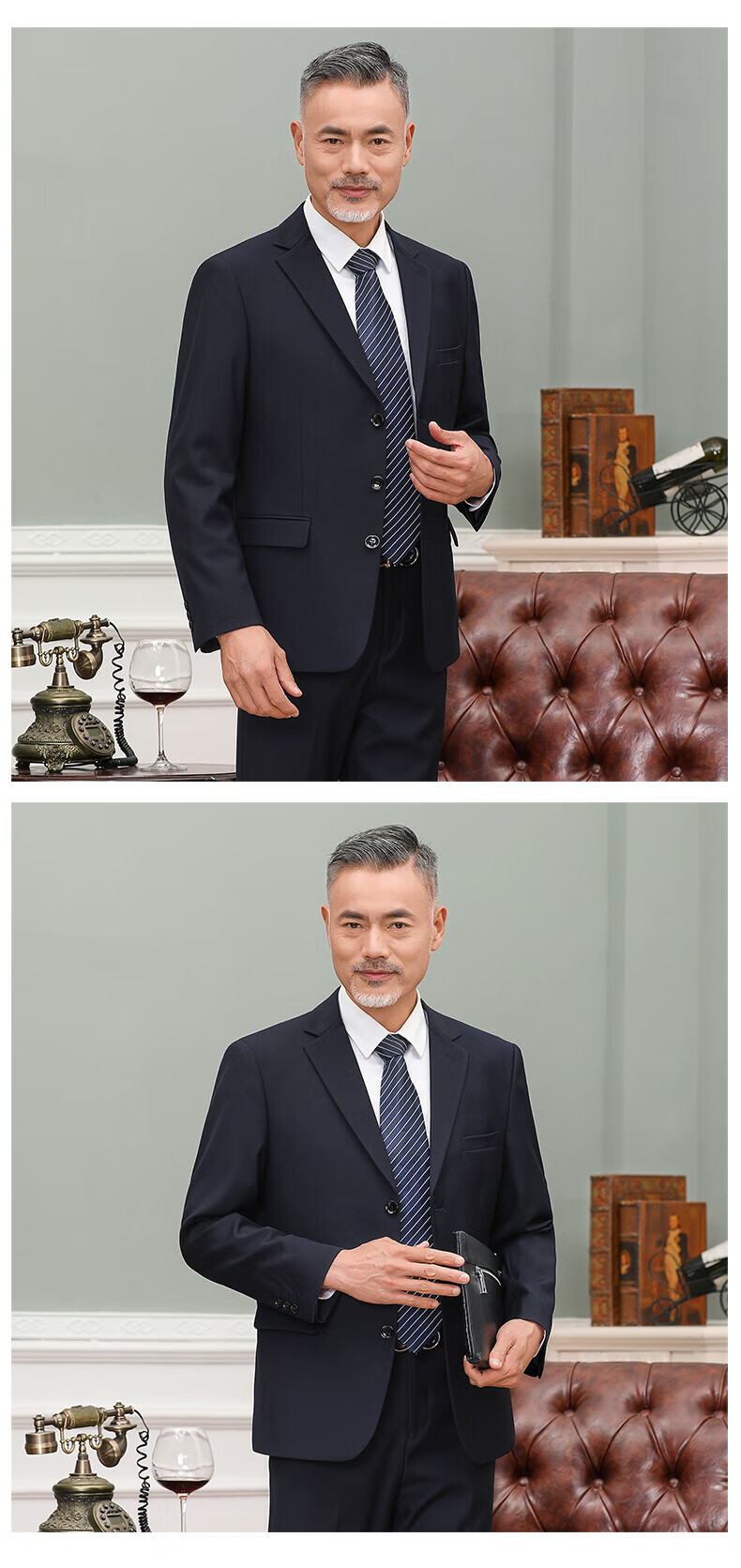 Pierre Cardin middle-aged dad suit suit men's wedding banquet jacket loose middle-aged suit father-in-law business casual dress men black three-piece suit suit + trousers + shirt XL (free 8 pieces of gift)