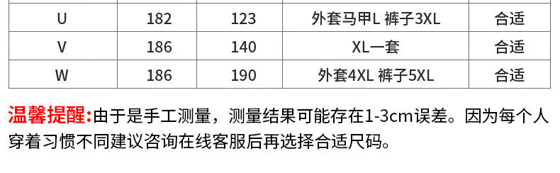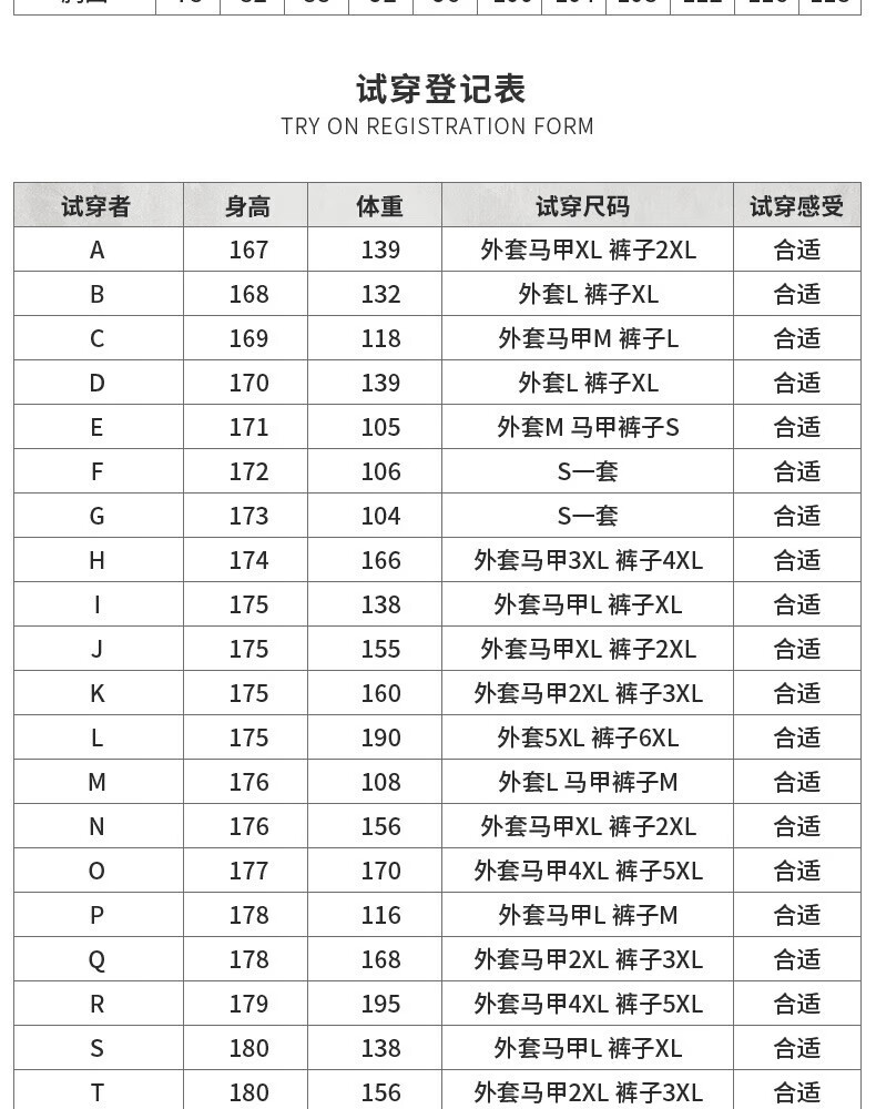 China (cm) 165 / 88-90 170 / 96-98 175 / 108-110 180 / 118-122 185 / 126-130