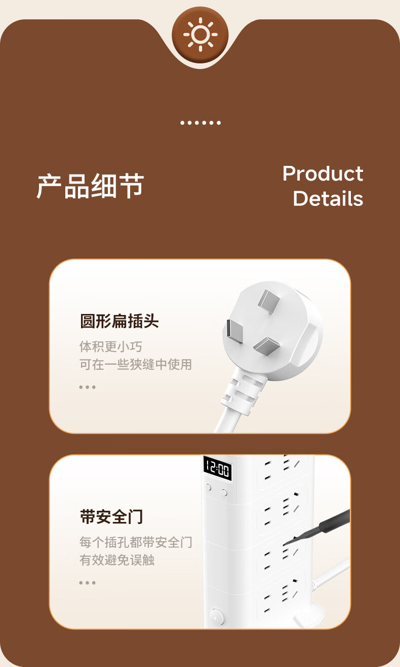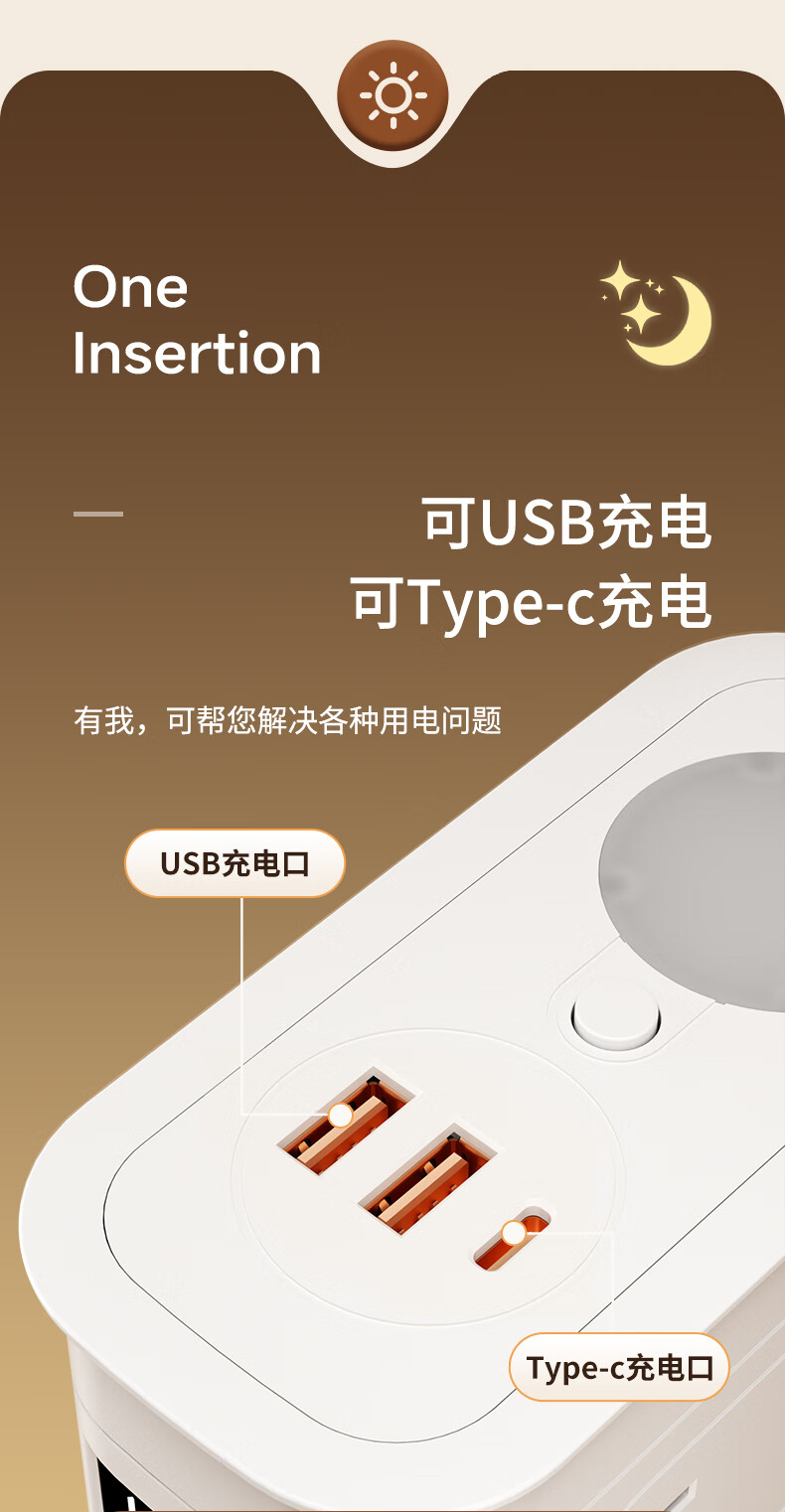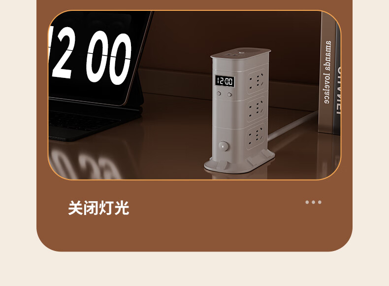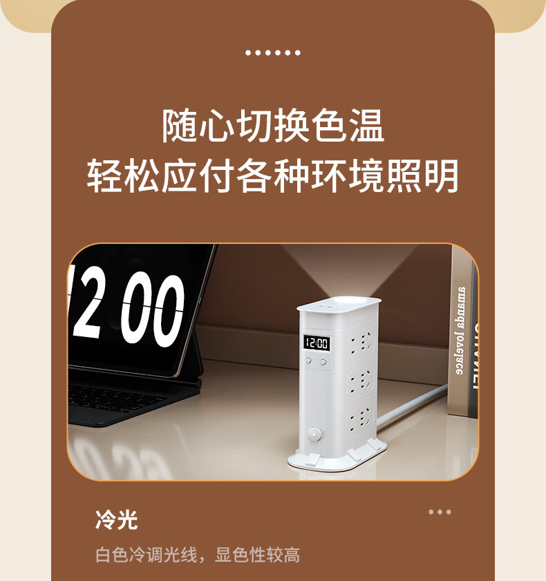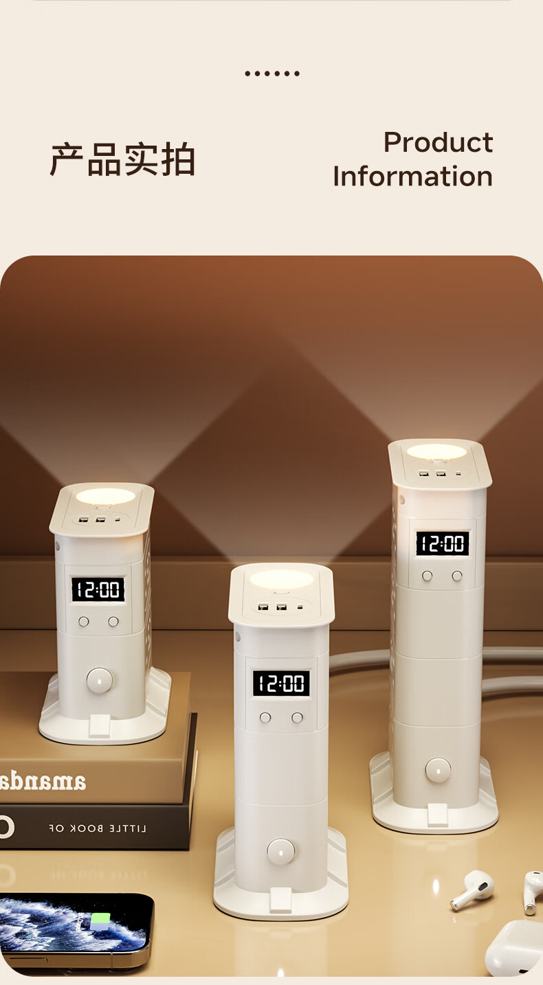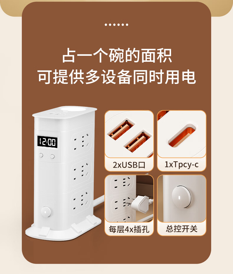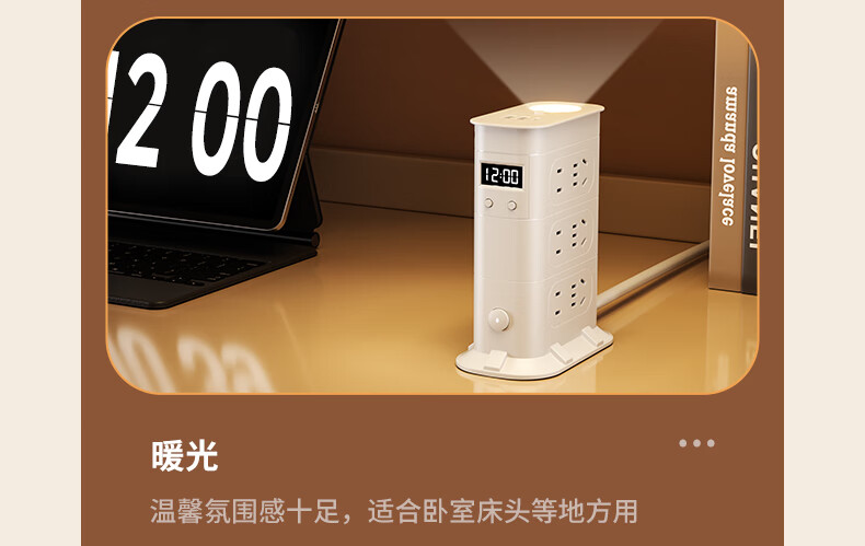 JD Logistics Vertical Smart Socket Multifunctional Porous USB Night Light Converter Home Office Desktop Power Strip Multifunctional Vertical Power Strip with Night Light 2 Layers 8 Sockets With USB + Night Light + Time Display Total Length 0.8 Meters