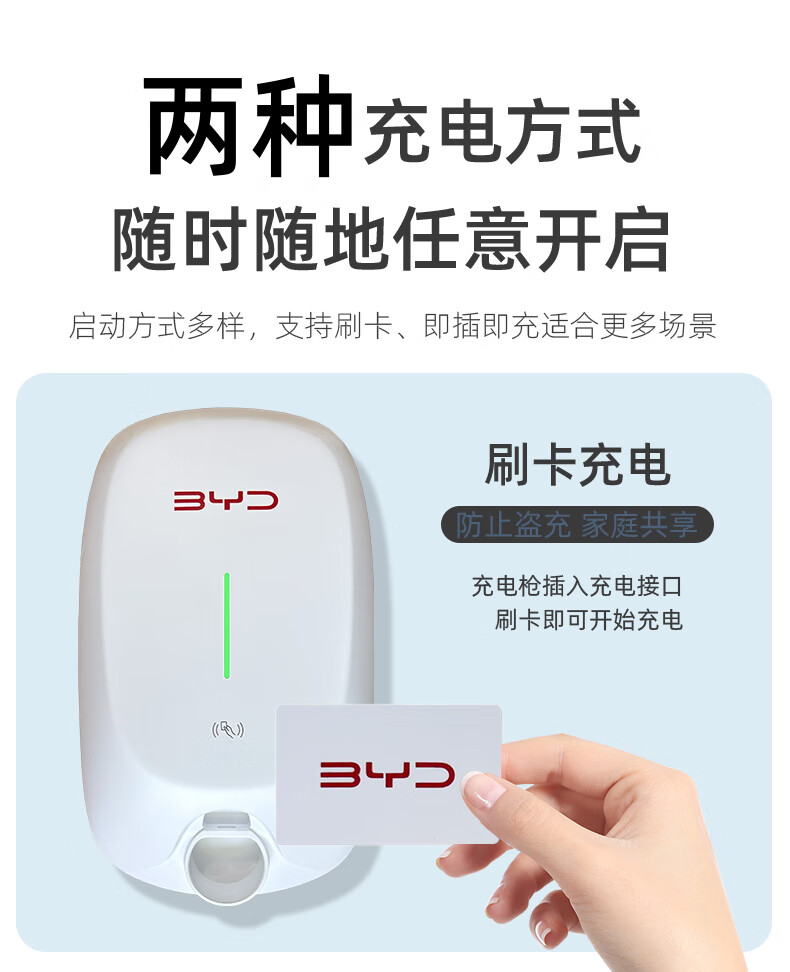 BYD 7kw household AC charging pile is suitable for all its models. BYD 7th generation-7kW-5m gun line does not include installation. Self-installation does not affect the warranty period.