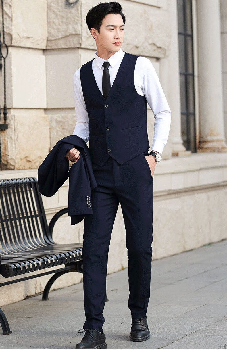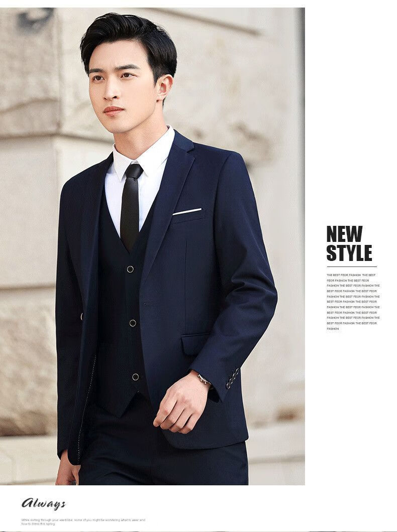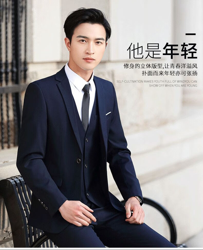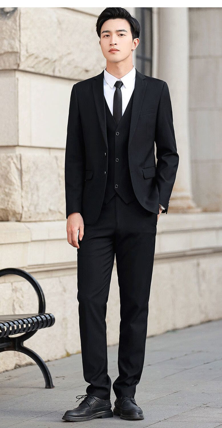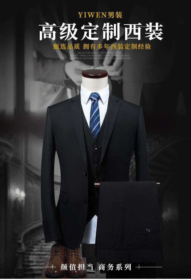 Pierre Cardin high-end suit suit for men three-piece business professional formal small suit for men for wedding and groom slim jacket for men black one-piece suit + tie XL weight 116-125 Jin Jin equals 0.5 kg