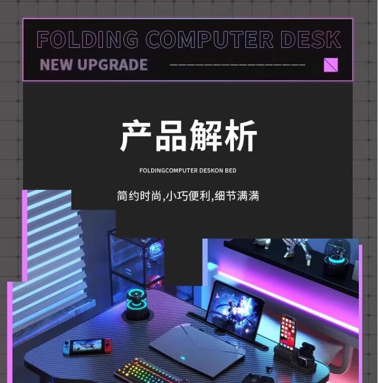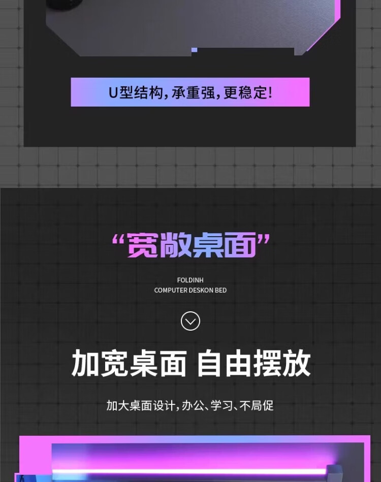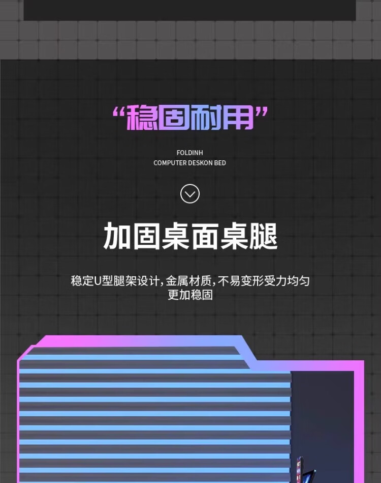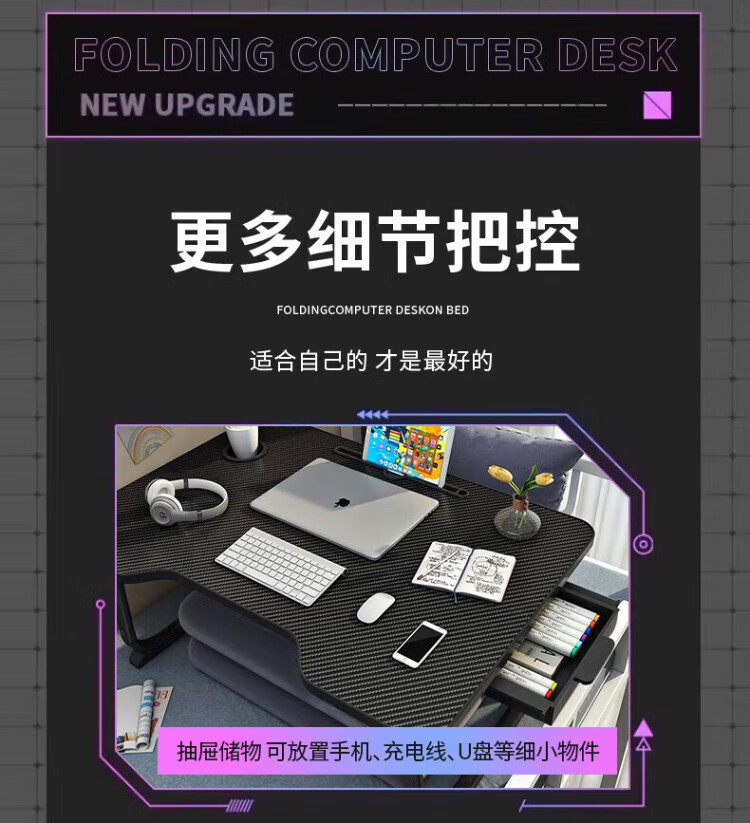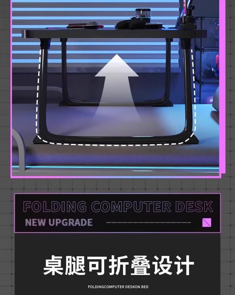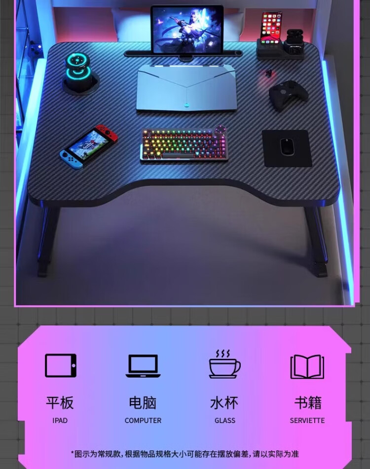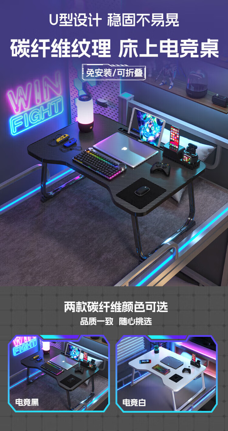 Bed computer desk bed desk computer desk bed notebook desk foldable table dormitory artifact small table black flat model 80*50*32cm