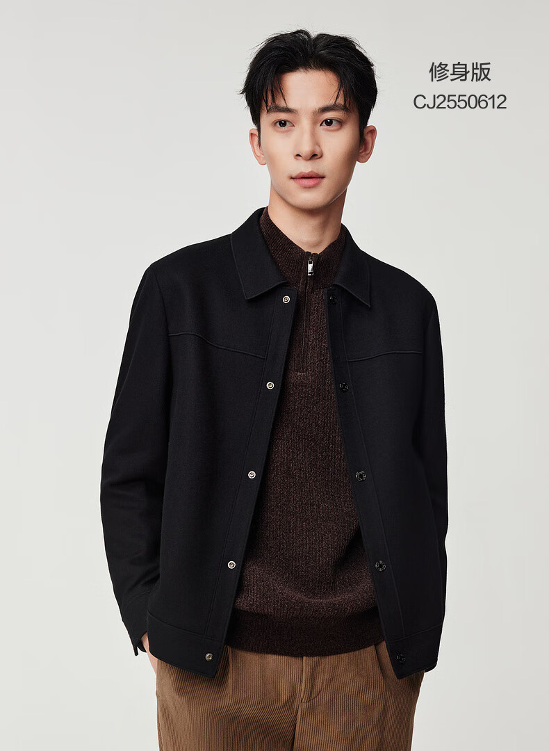 Jiumu King Warm-locking and cold-proof shopping mall same style jacket men's 30% sheep wool 25 new autumn woolen jacket top slim version + jet black + CJX2550612 L 175/96A (50)