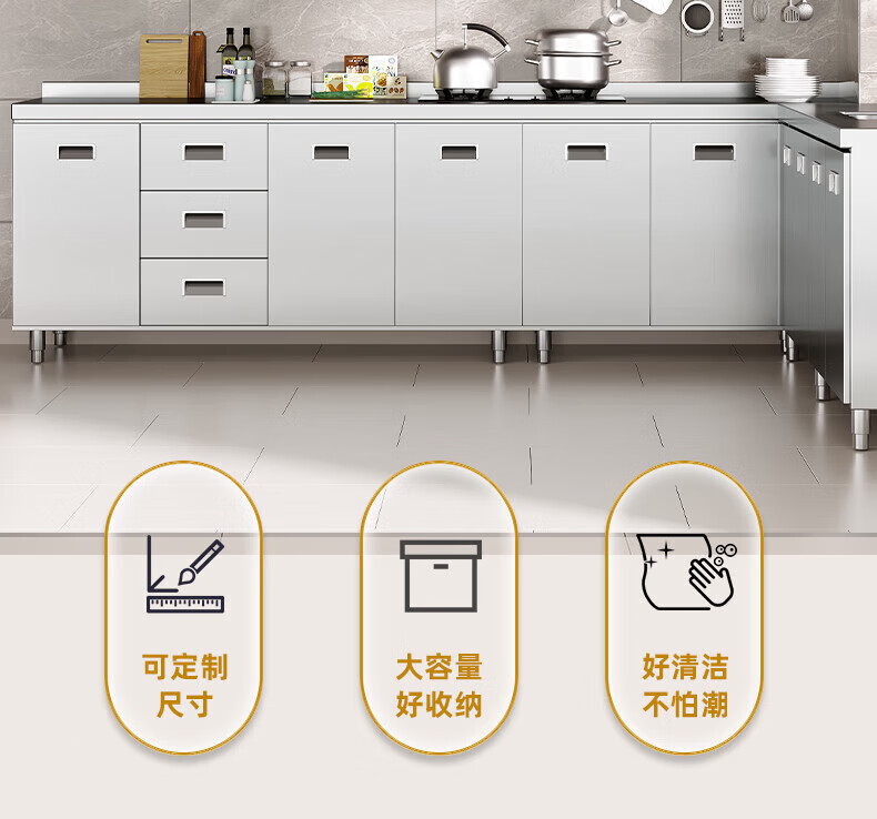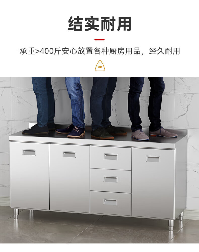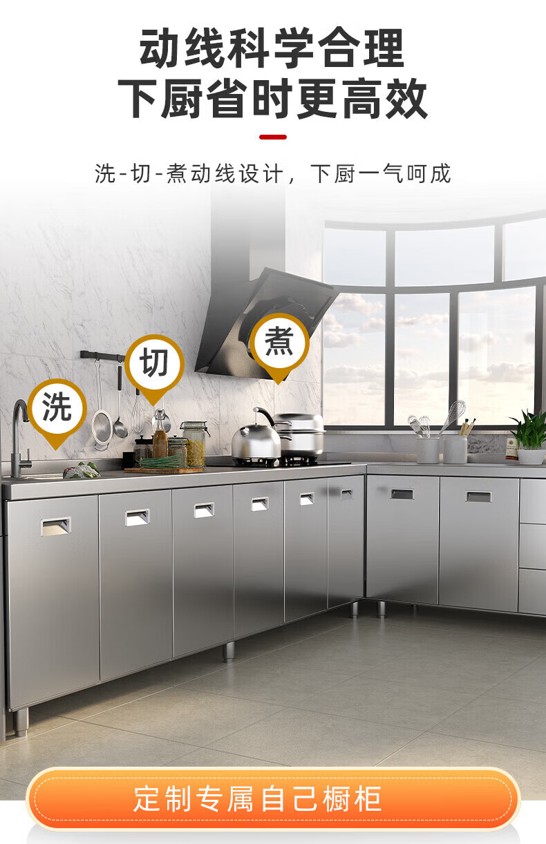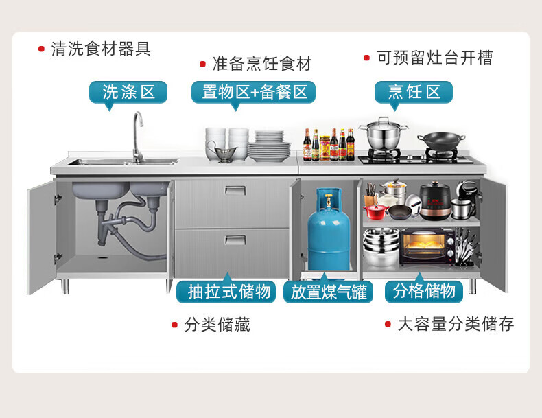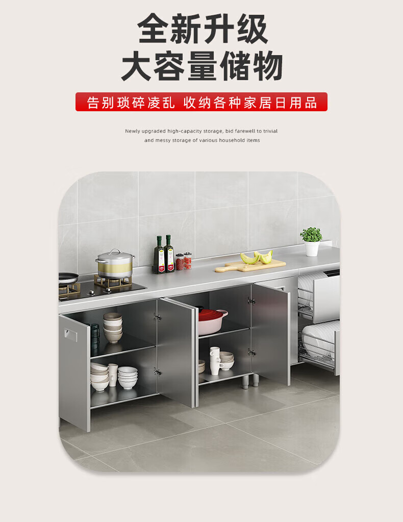 Initial conception of stainless steel kitchen cabinets, stove cabinets, multi-functional all-steel storage cabinets, cupboards, sink cabinets integrated into 304 steel 100cm double door single basin model Remarks