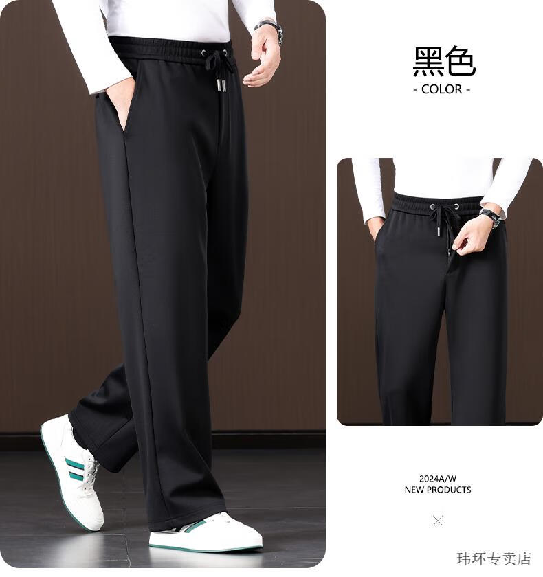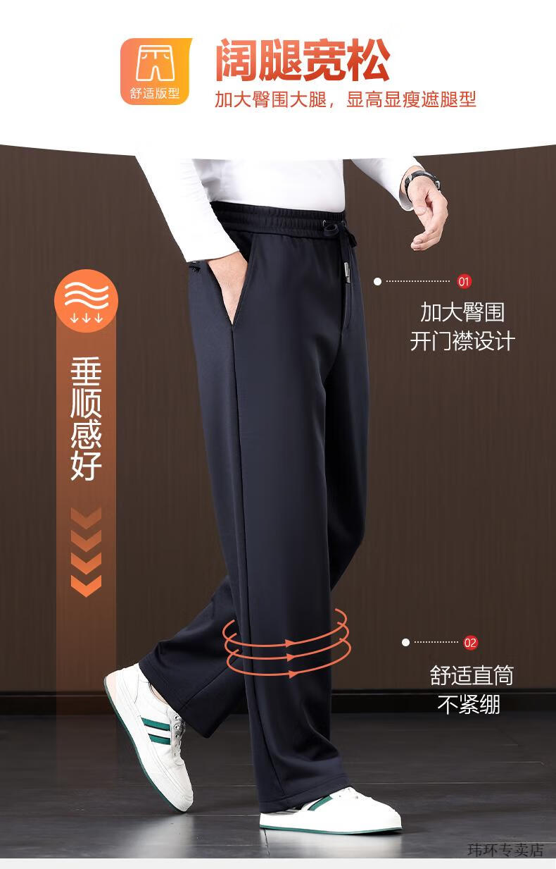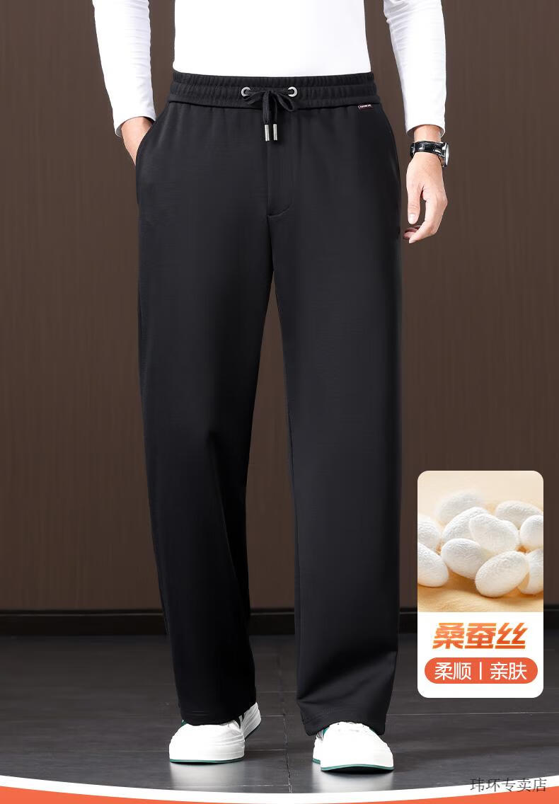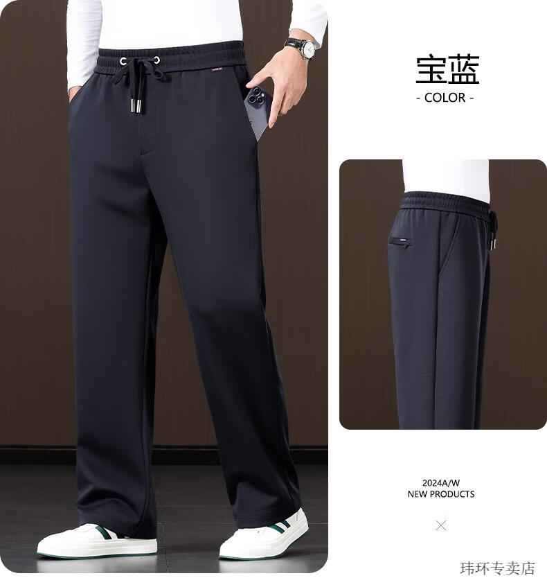 ROMON Mulberry Silk Men's Pants Wide Leg Men's Casual Pants Spring and Autumn Style Dad Pants Loose Large Size Casual Sports Pants Men's Blue 2XL Suitable for 160-175 Jin Jin equals 0.5 kg 2.7-2.8 feet