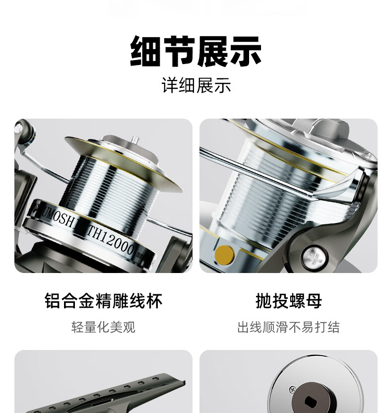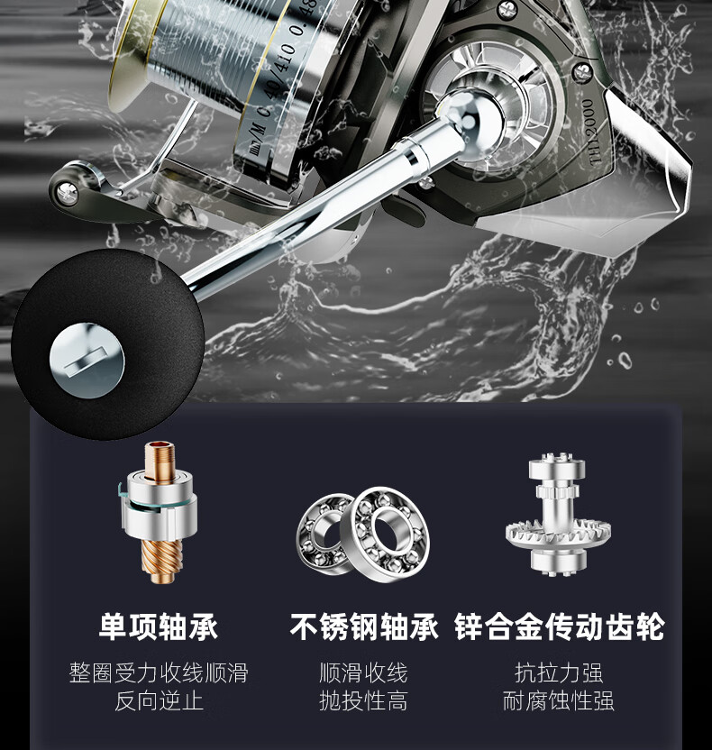 Anchor fishing wheel long-distance casting special spinning wheel without gap sea rod anchor rod sea fishing all-metal line cup 10000 type fish wheel long-distance casting wheel TH silver 12000