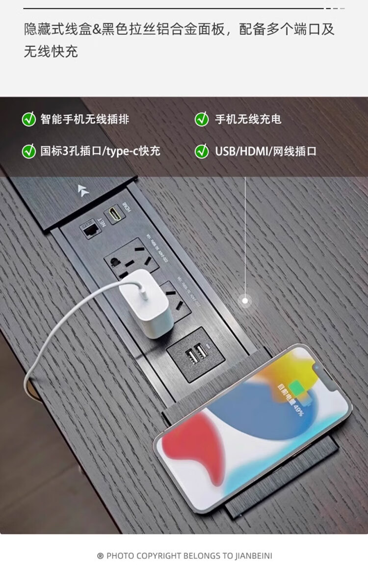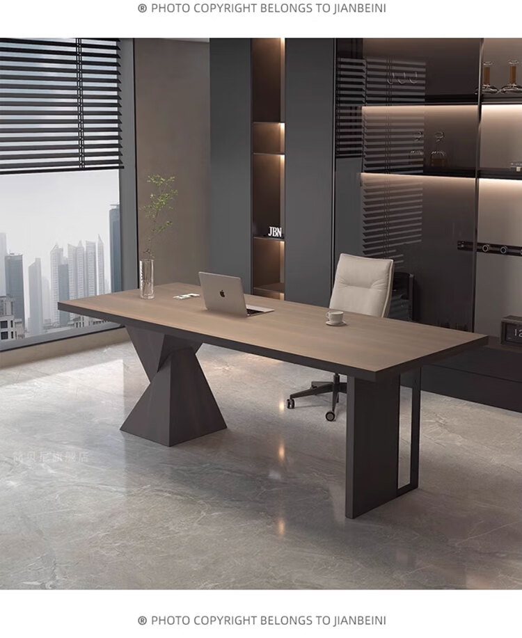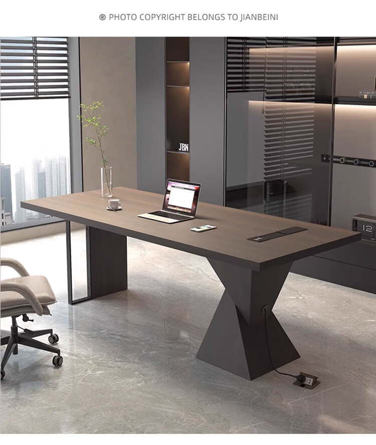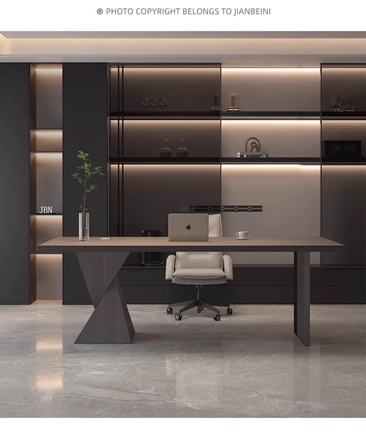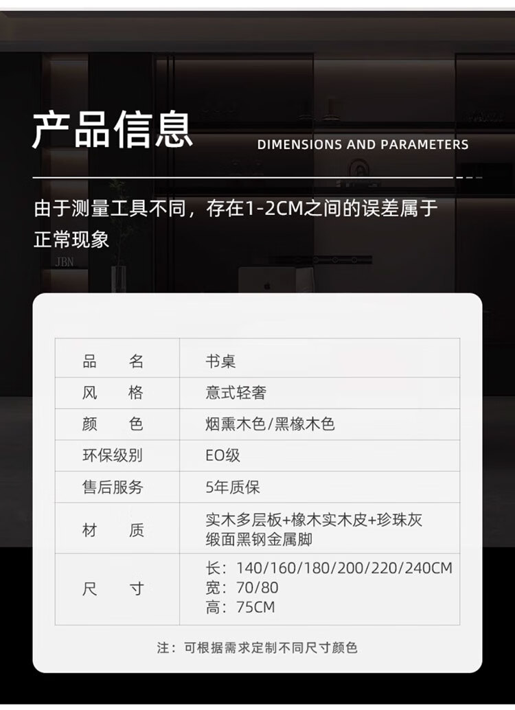 Canawu Italian minimalist desk study adult light luxury modern large solid wood desk high-end boss computer desk smoked wood desk smart power strip 180x70x75cm