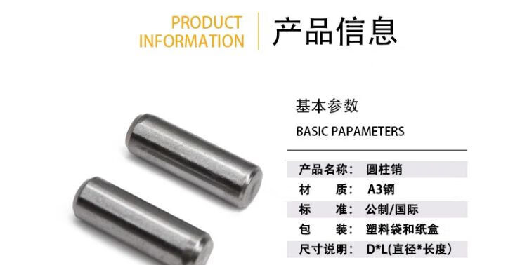 He Jiagong customized GB119 standard parts A3 iron cylindrical pin positioning pin fixed pin solid pin M3M4M5M 3*10-100 pieces