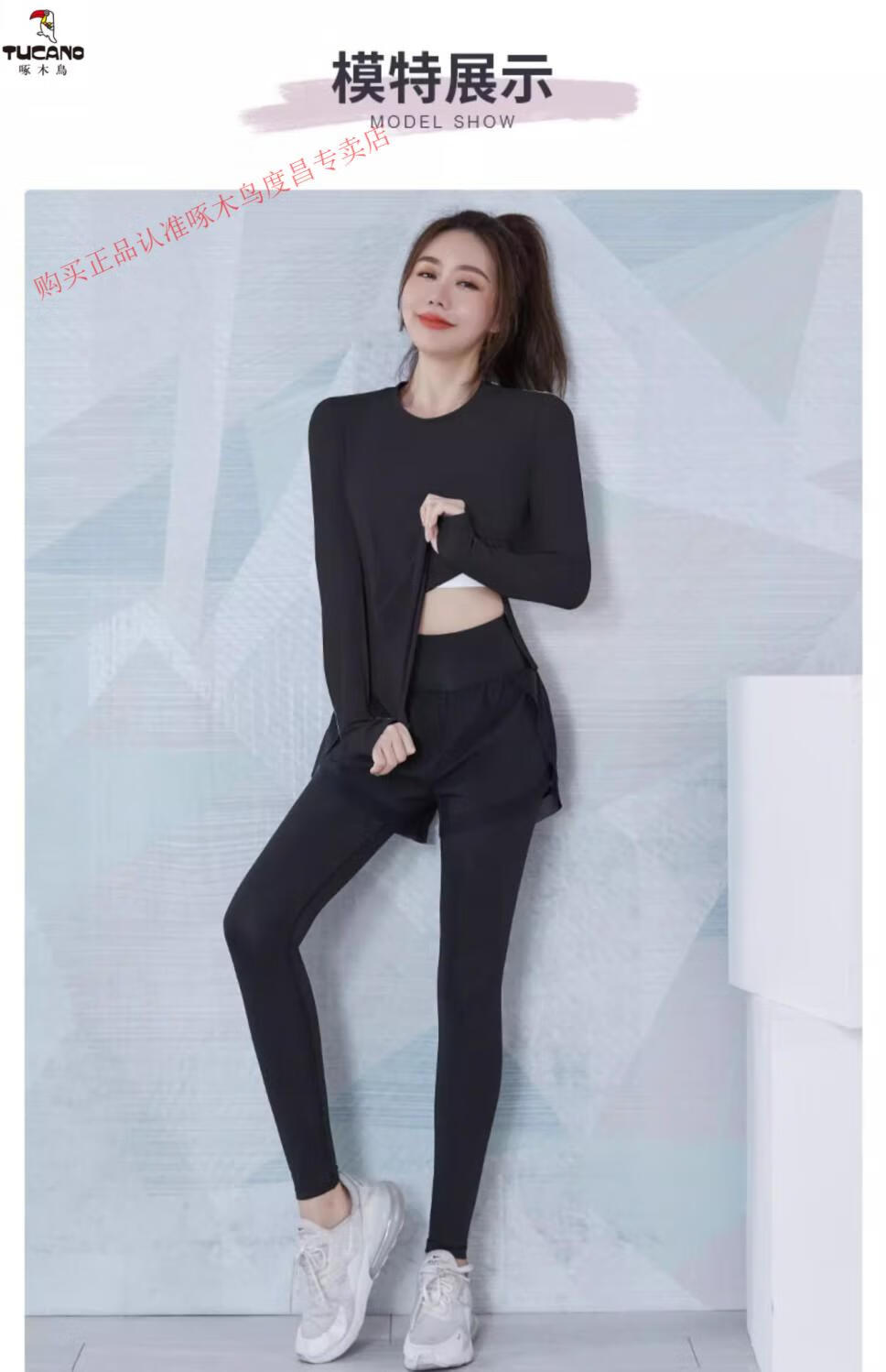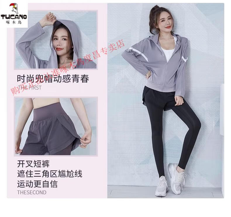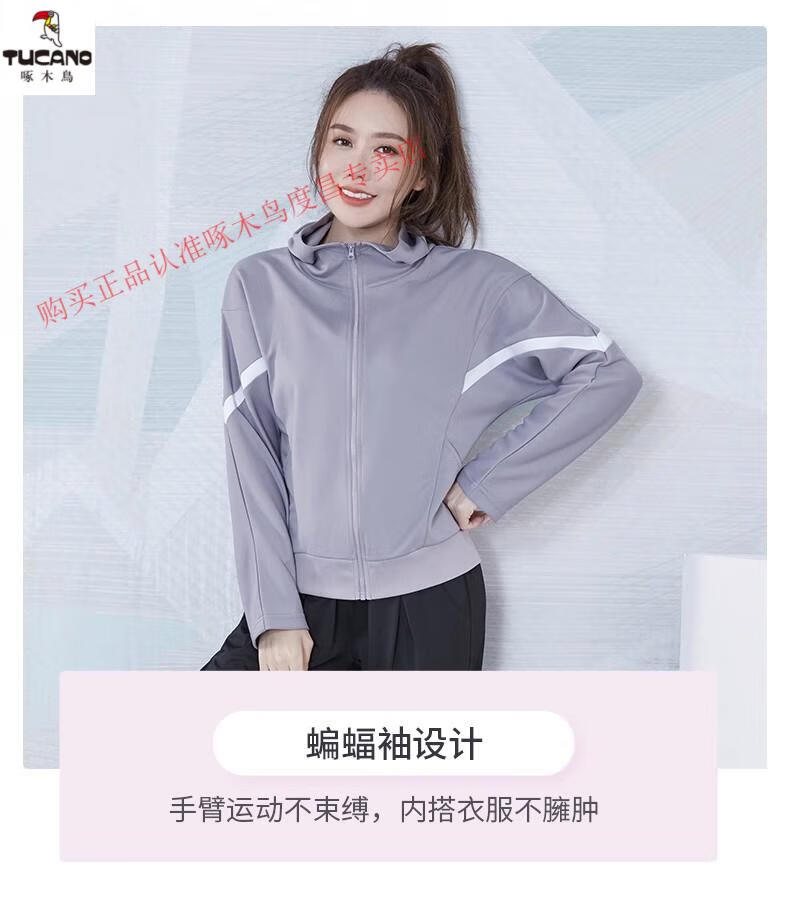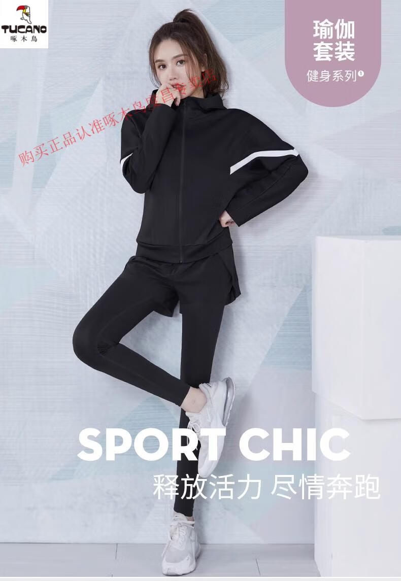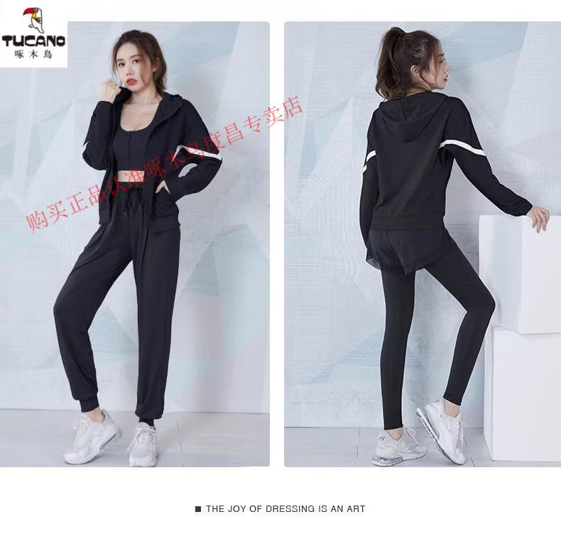 Woodpecker autumn and winter new running fitness suit women's outer wear morning running windproof hooded loose Pilates yoga sportswear Star Black two-piece set M