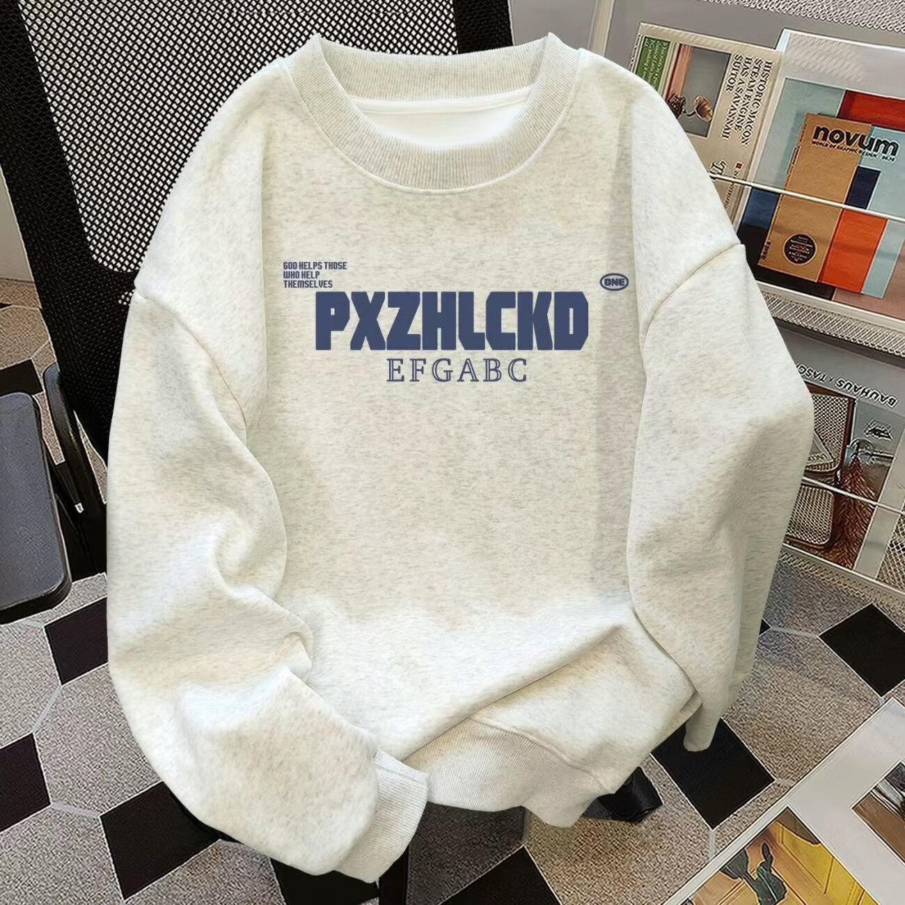 Woodpecker sweatshirt men's autumn and winter round neck plus velvet trendy brand loose long-sleeved T-shirt men's bottoming shirt casual couple tops men white gray (regular style) XL recommended weight 120-140Jin Jin is equal to about 0.5 kg