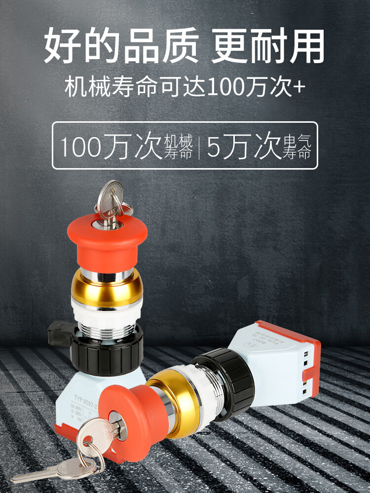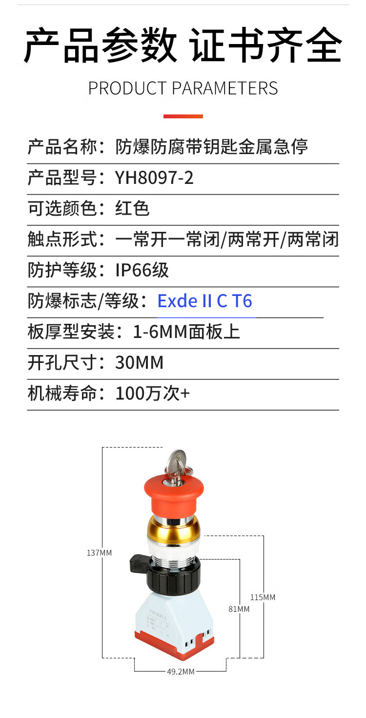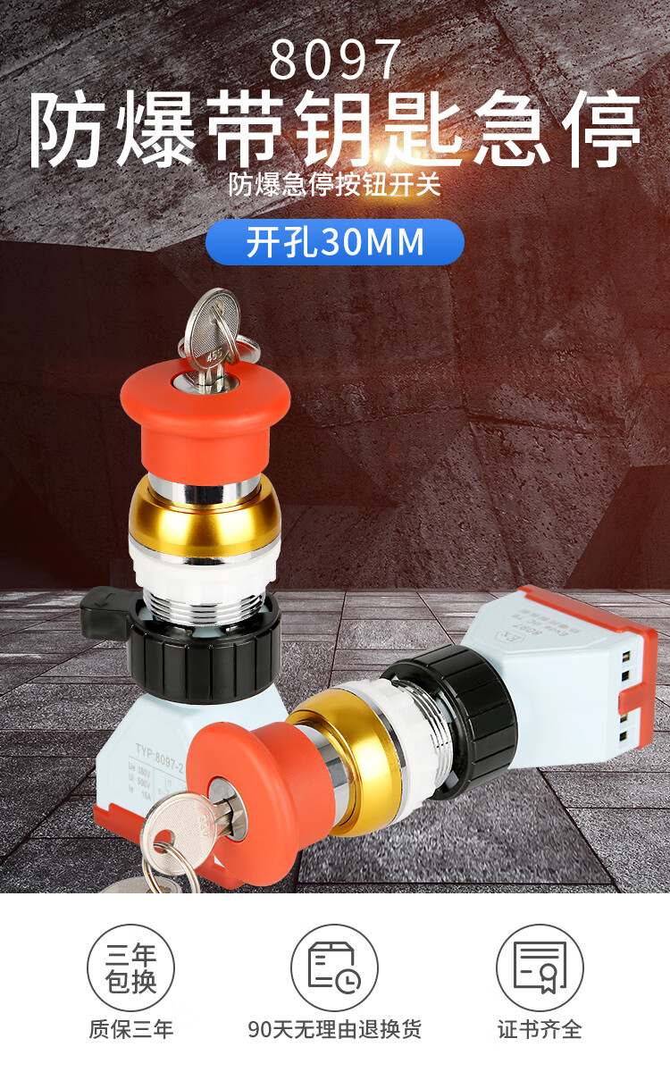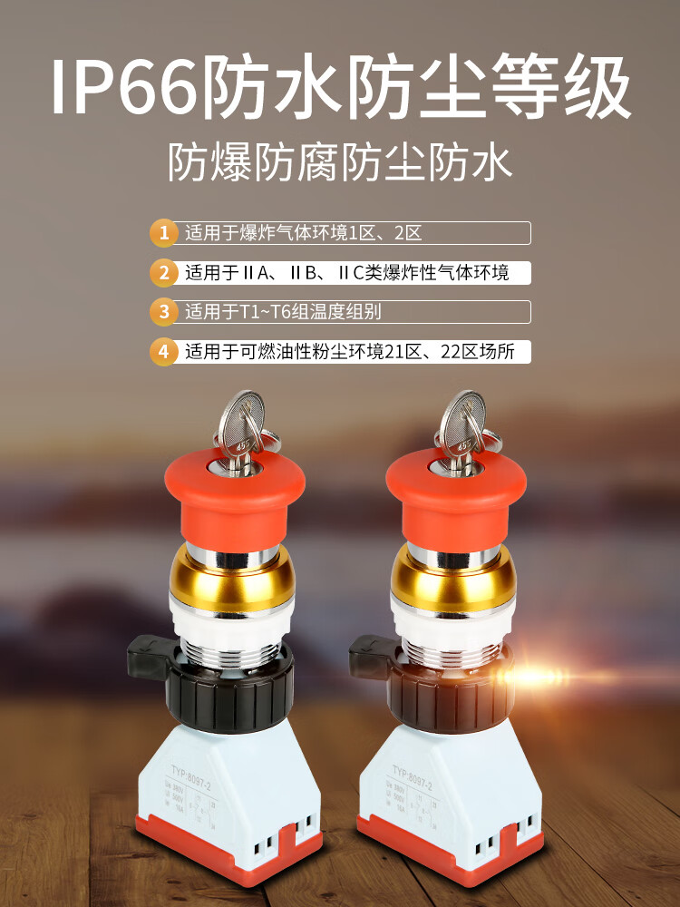 Red metal explosion-proof emergency stop button with lock BA8097 explosion-proof emergency stop control with key, one normally open and one normally closed silver point 16A