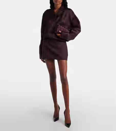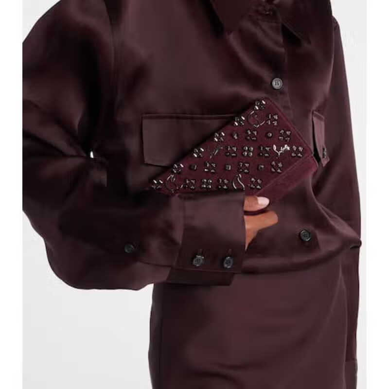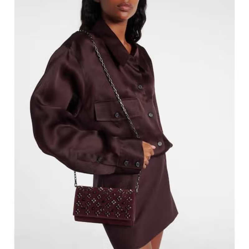 Lu Bo Ting light luxury women's PALOMA rivet suede chain wallet burgundy one size