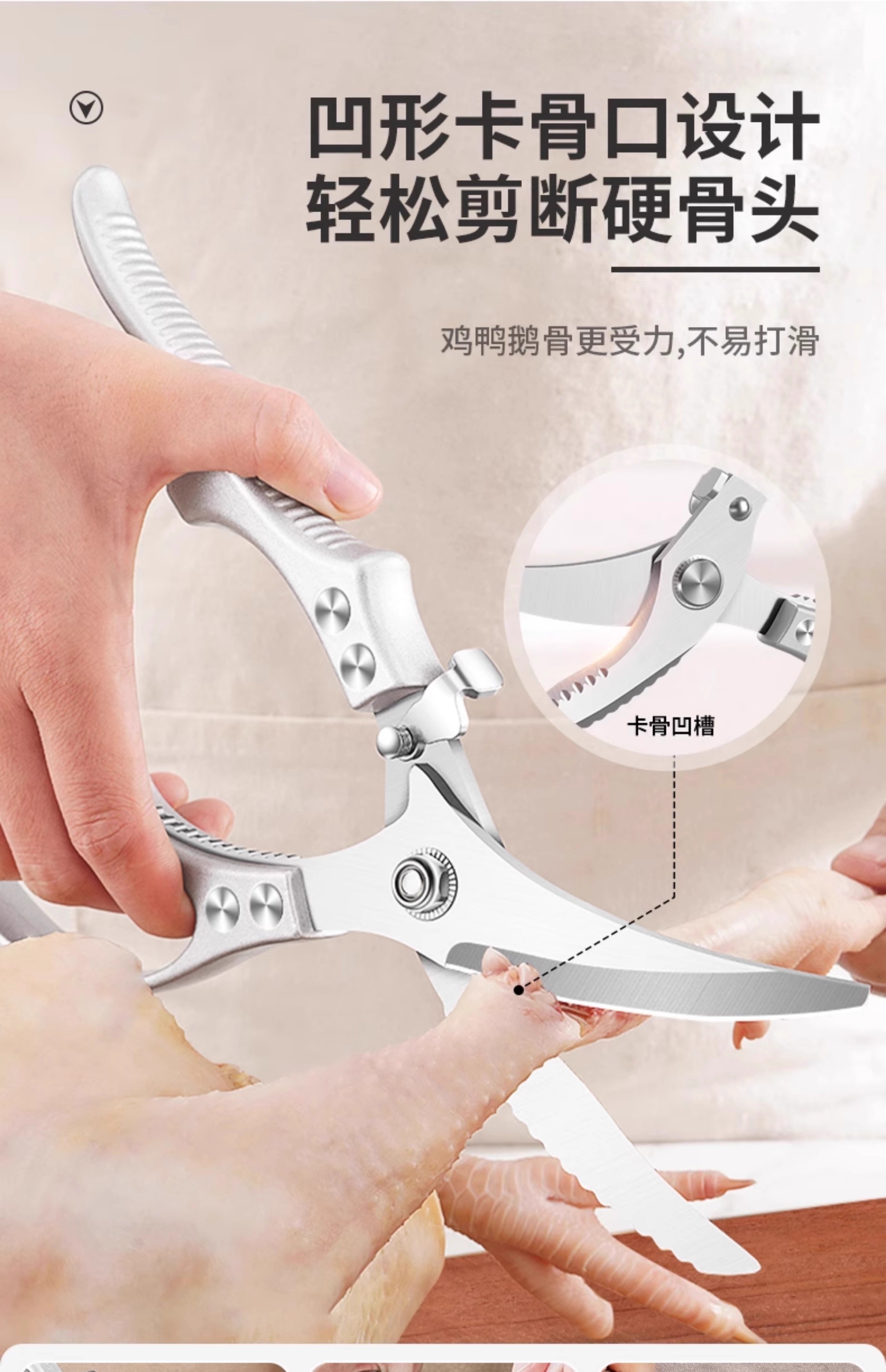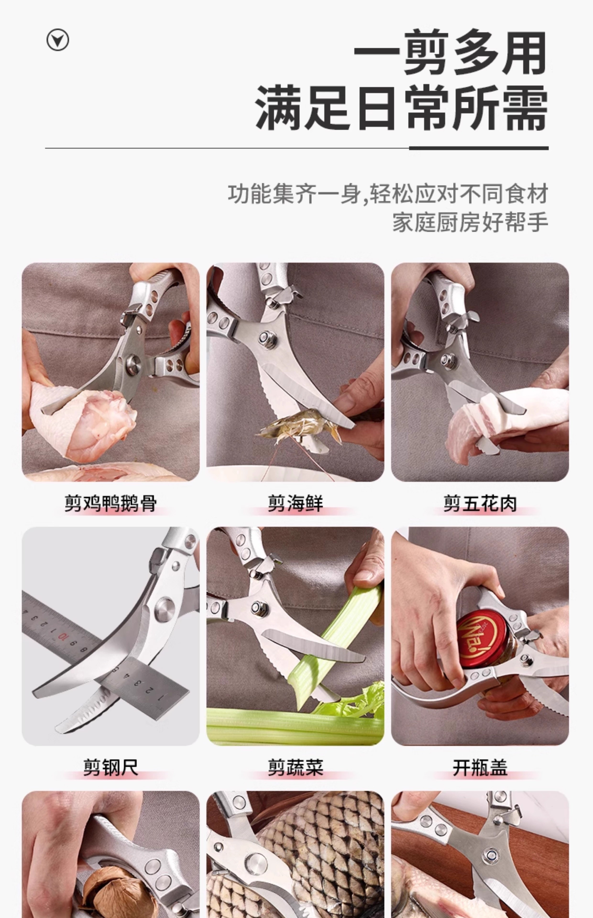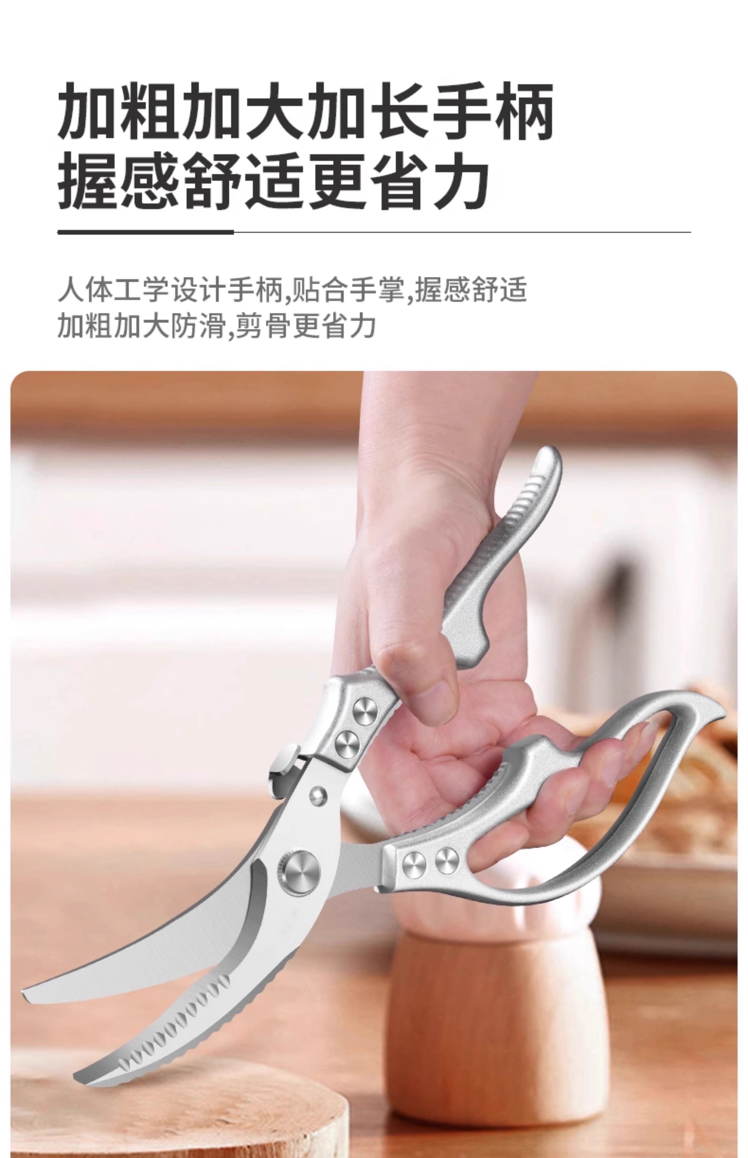 Kitchen scissors for cutting chicken, duck and goose bones, sharp multi-functional stainless steel large fish-killing food scissors, high-end quality, labor-saving and durable, enhanced and upgraded version of powerful chicken bone scissors