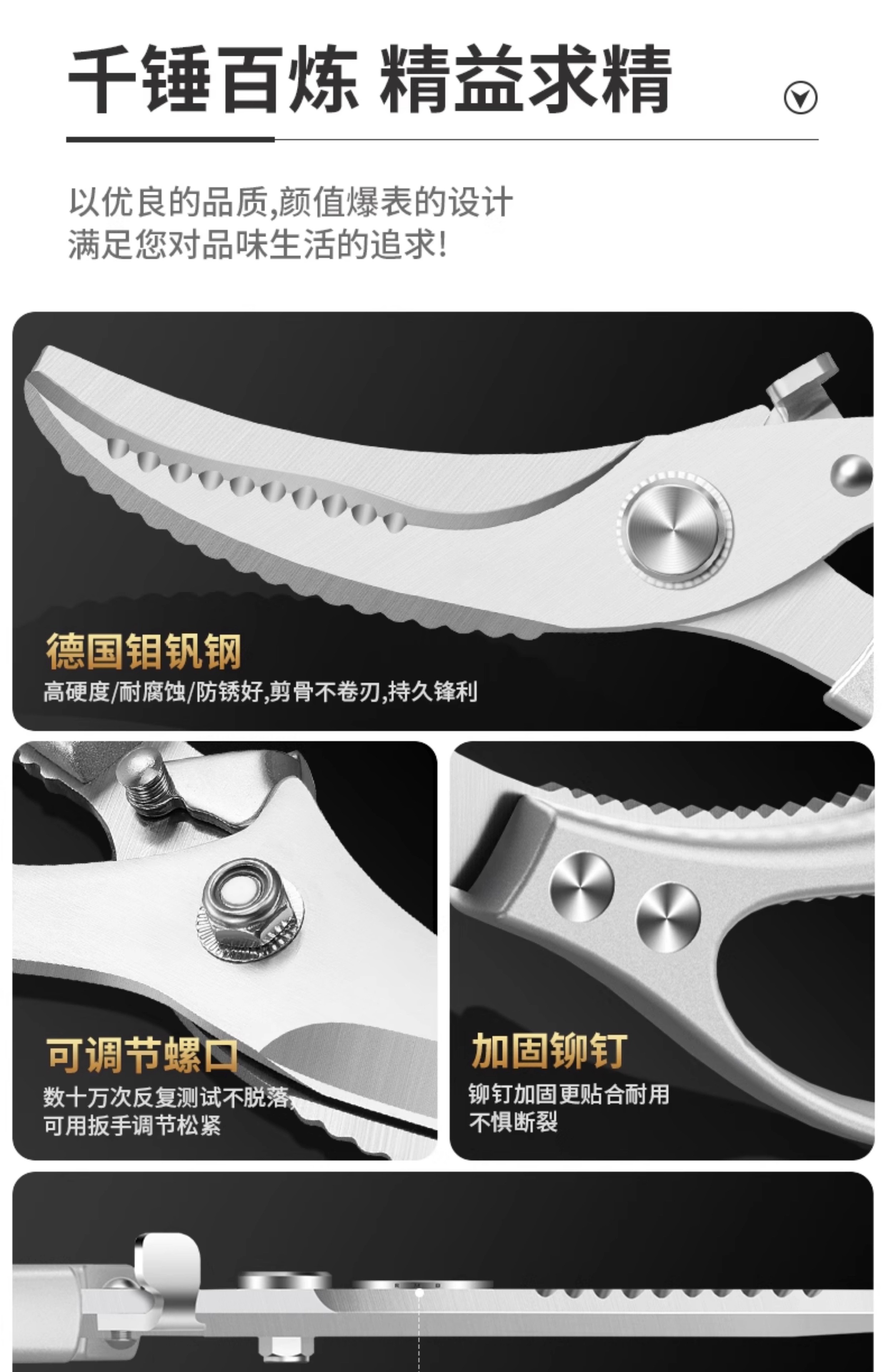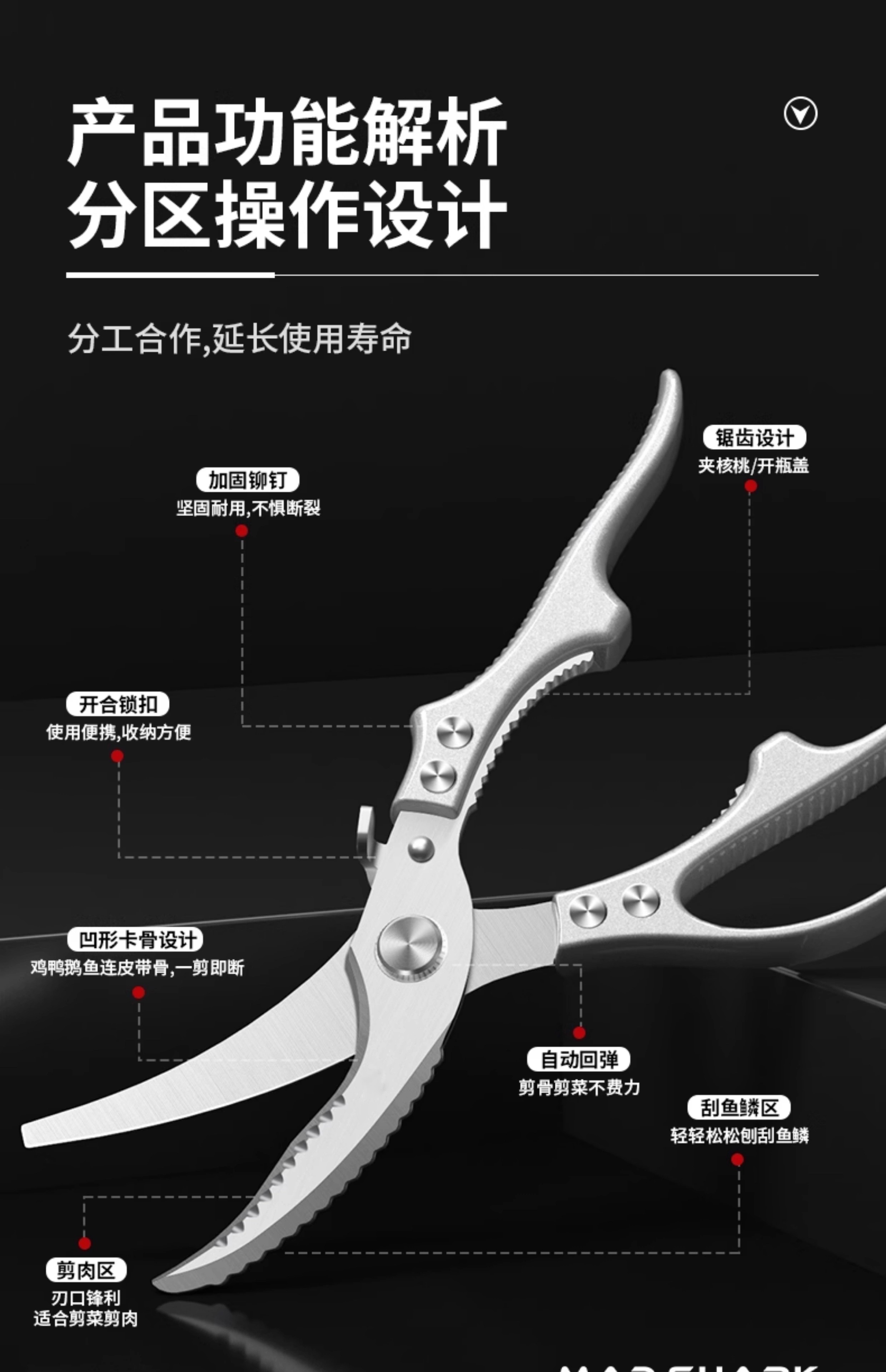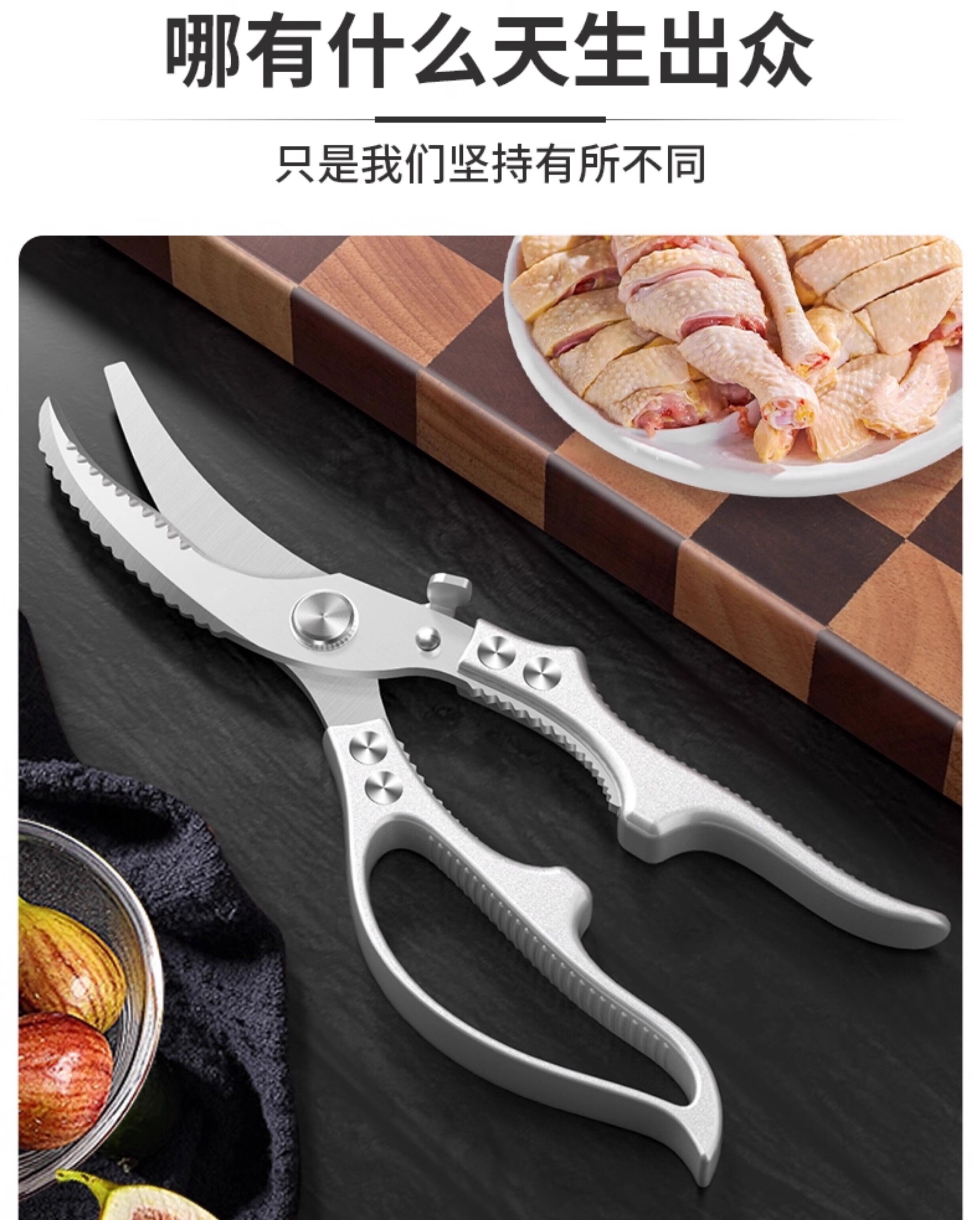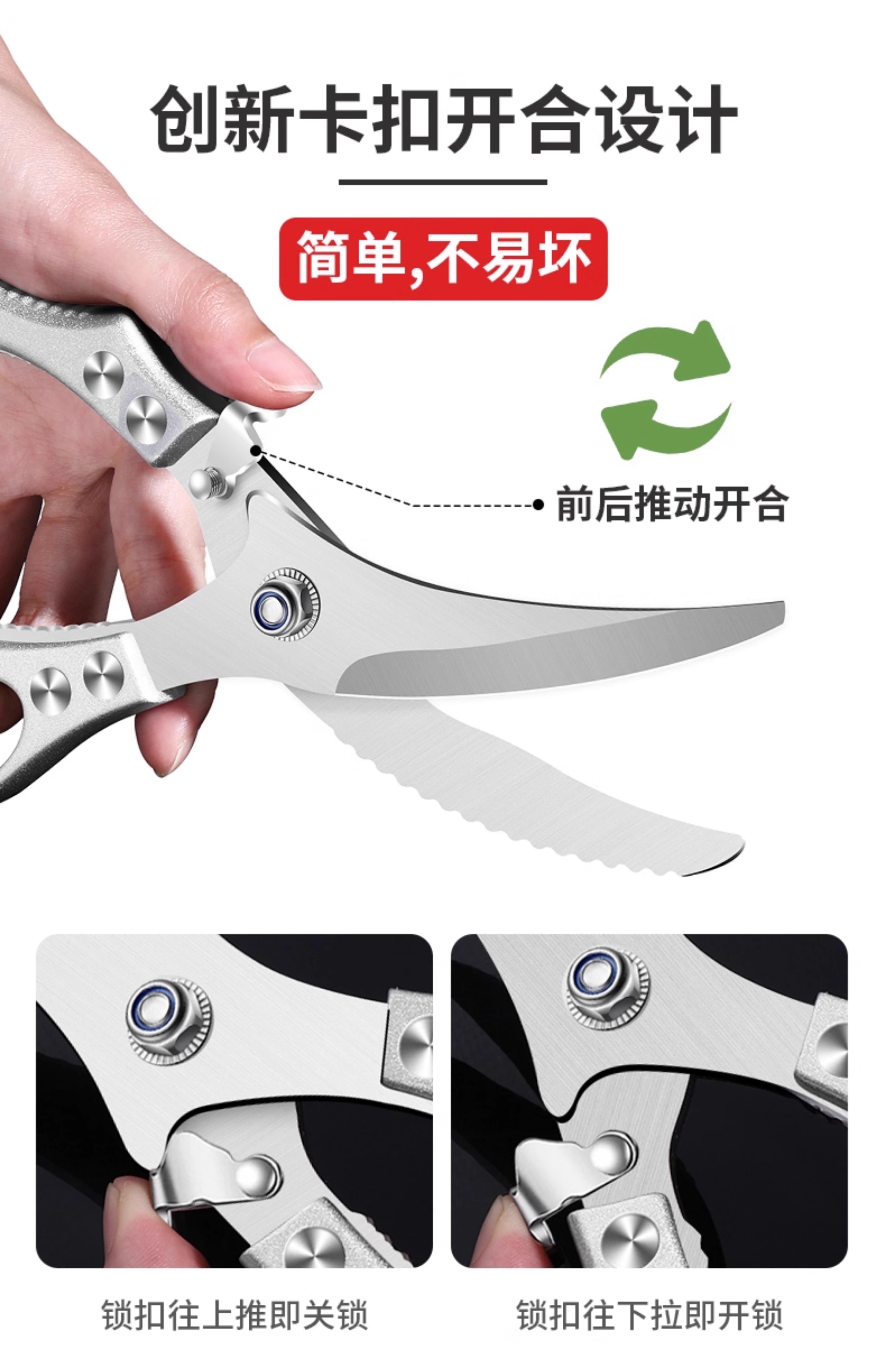 Kitchen scissors for cutting chicken, duck and goose bones, sharp multi-functional stainless steel large fish-killing food scissors, high-end quality, labor-saving and durable, enhanced and upgraded version of powerful chicken bone scissors