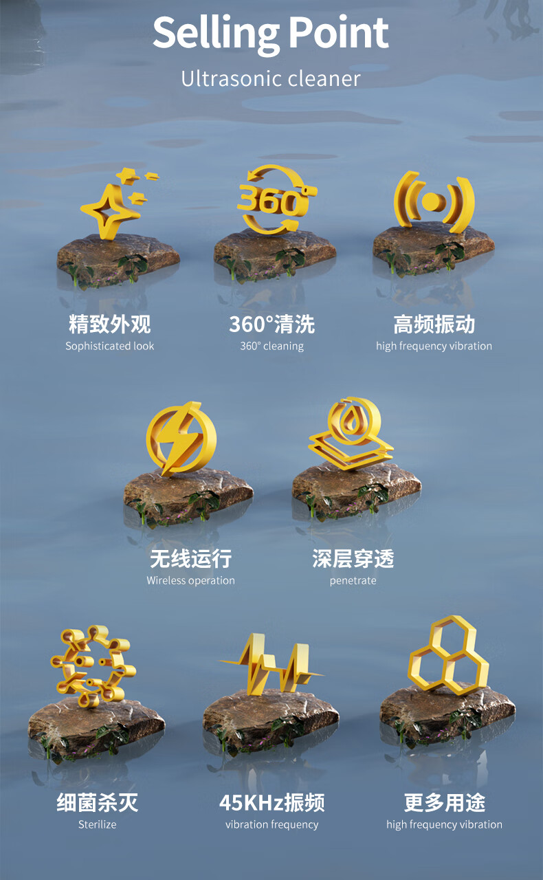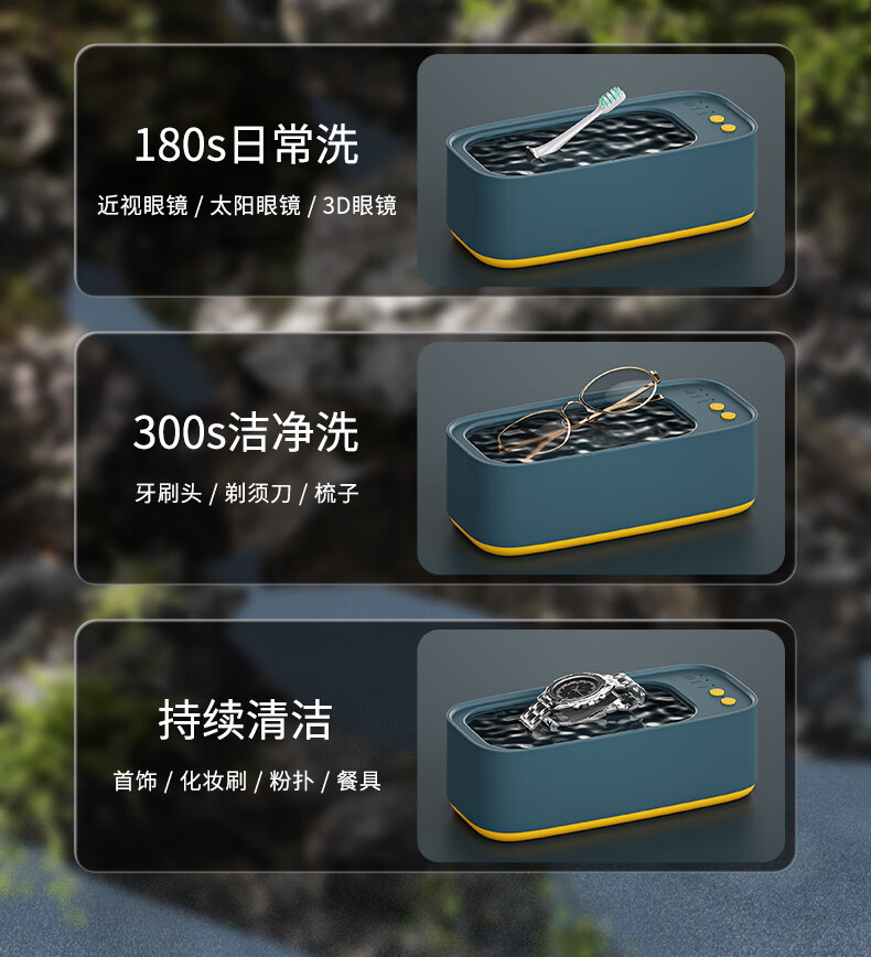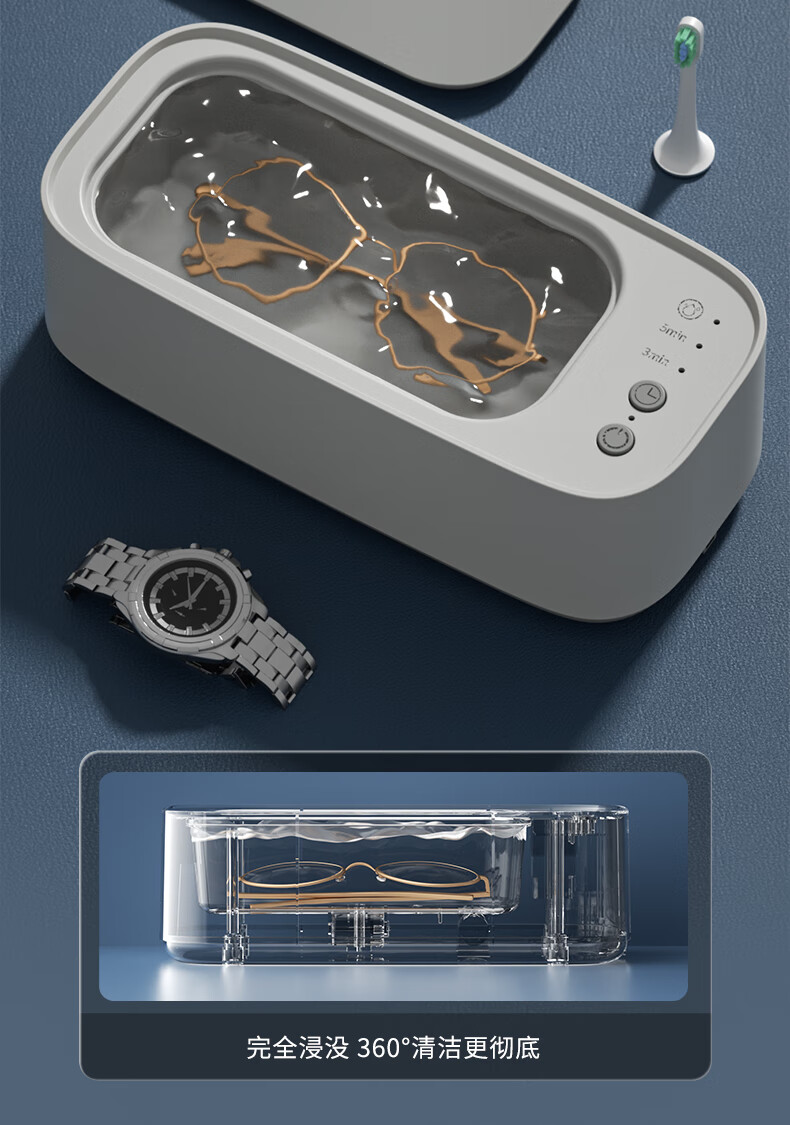Xiaomi Buyi Trendy Life Appliances Ultrasonic Glasses Cleaning Machine Jewelry Cleaning Machine Artifact Home Eye Box Cleaning Denture Braces Automatic Manual Portable Noble Black Top Version 98000HZ Imported from Germany