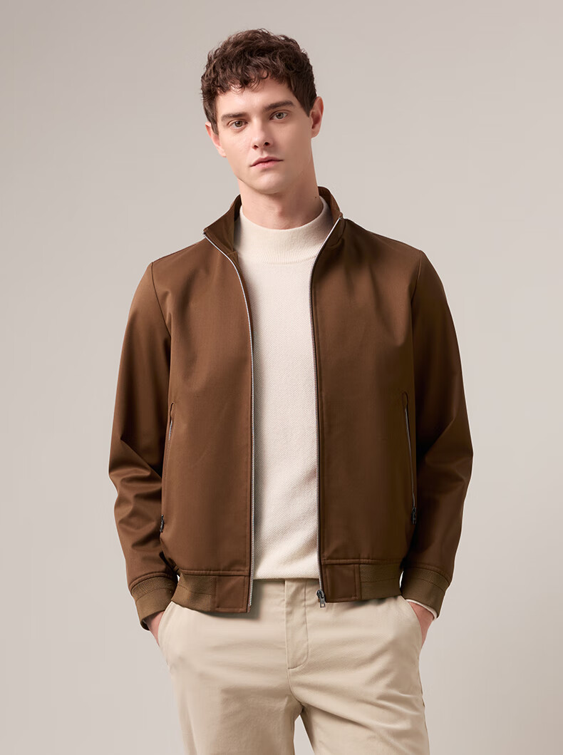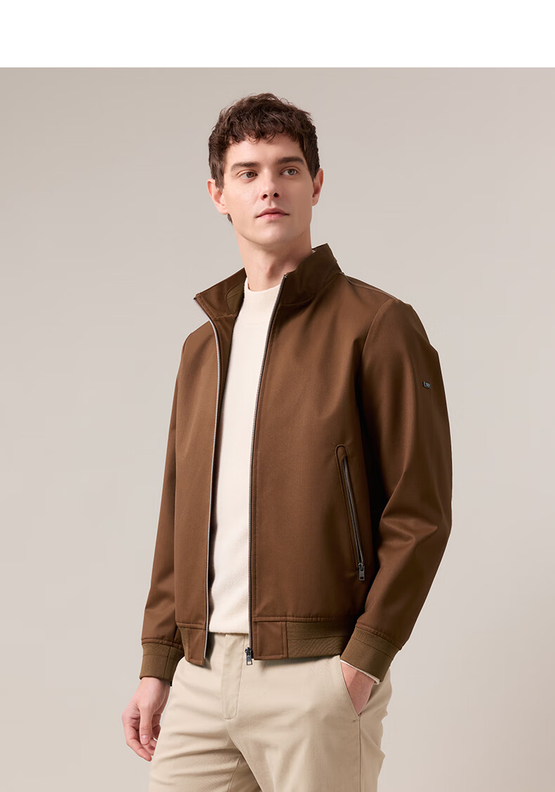 HAZZYS Men's 2025 Autumn New Water-Repellent/Windproof Stand Collar Jacket Men's Wool Blended Jacket ASVZU0CCU04 Brown BW M (170/92A 46)