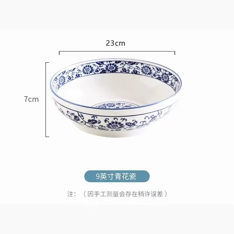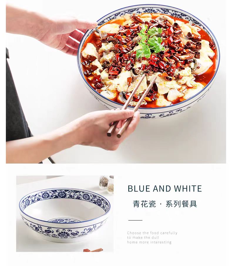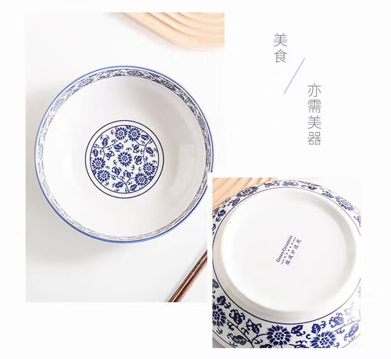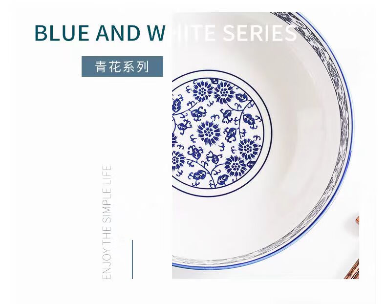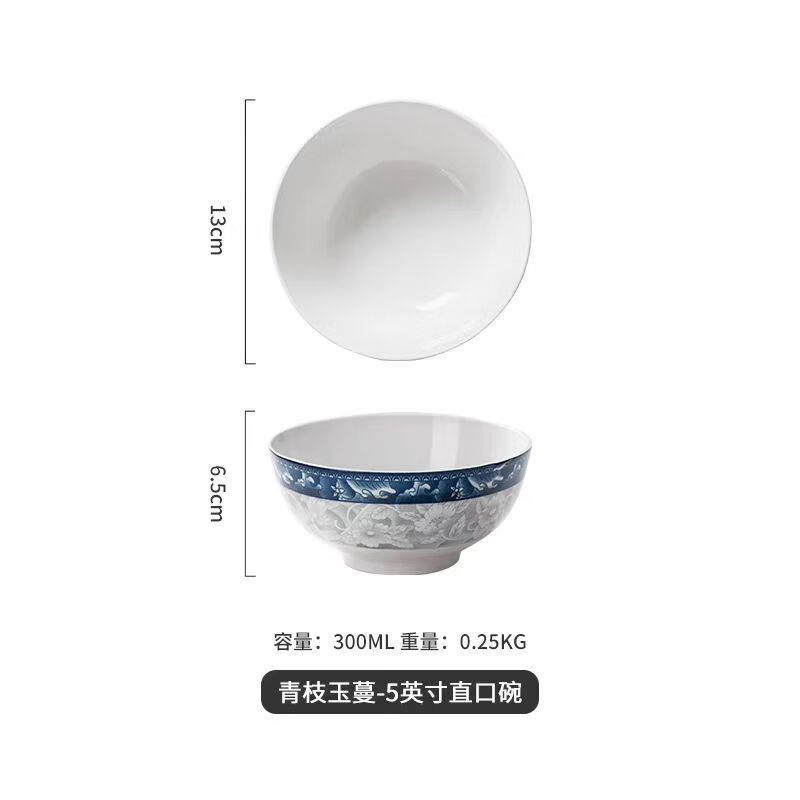 Household Internet celebrity high-looking ceramic tableware underglaze blue and white tableware green branches and jade tableware set 8-inch plate 1 piece