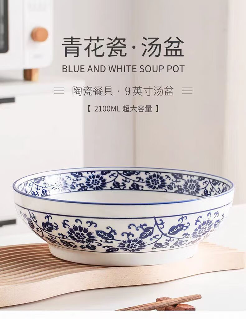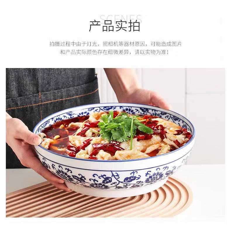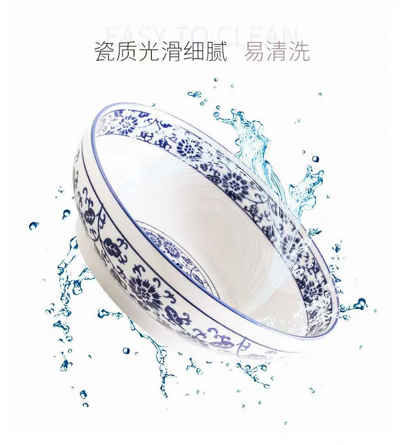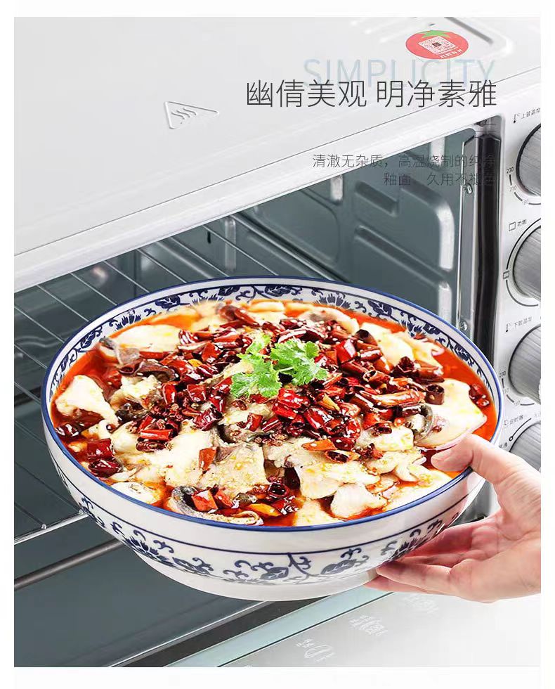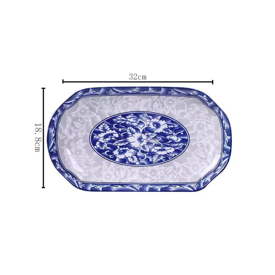 Household Internet celebrity high-looking ceramic tableware underglaze blue and white tableware green branches and jade tableware set 8-inch plate 1 piece