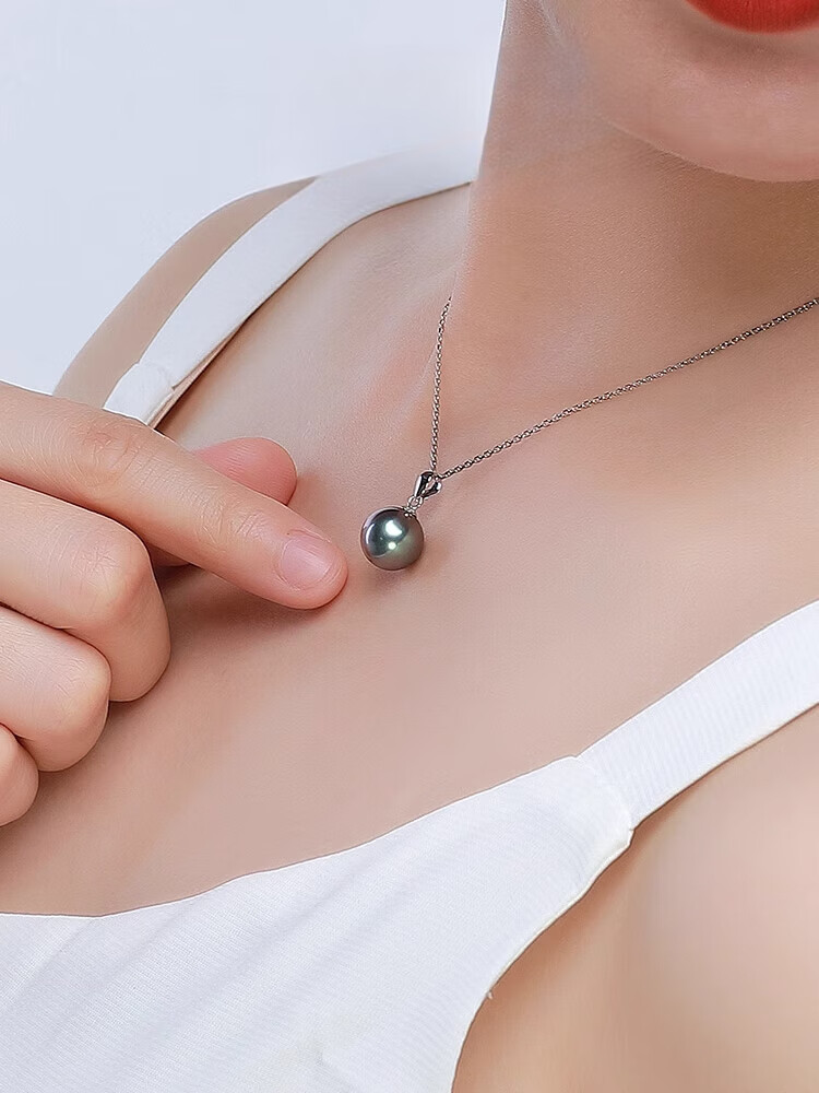 DL 1998 Fat Donglai Quality Nuclear Pearl Necklace 18K Gold Tahitian Pendant Round Seawater Necklace Black Series 8.0-8.9mm