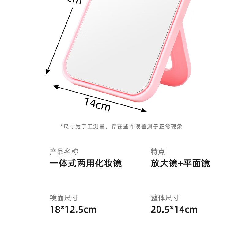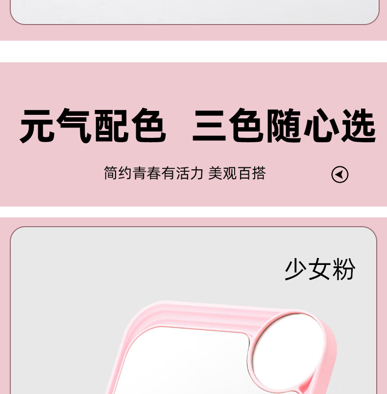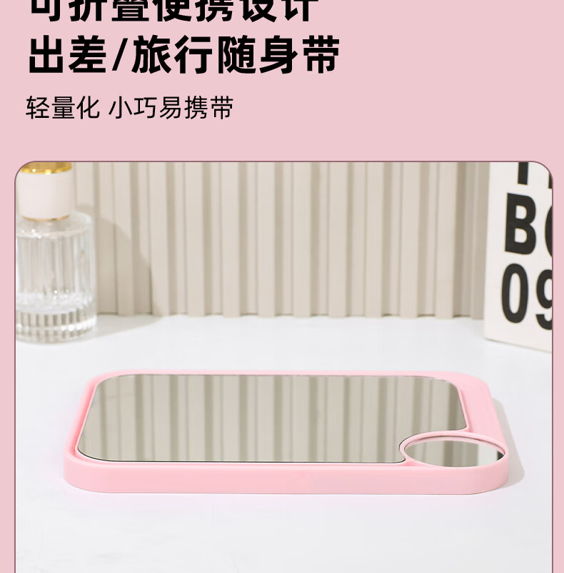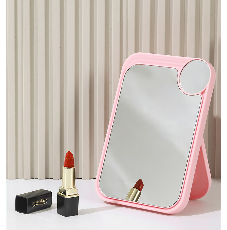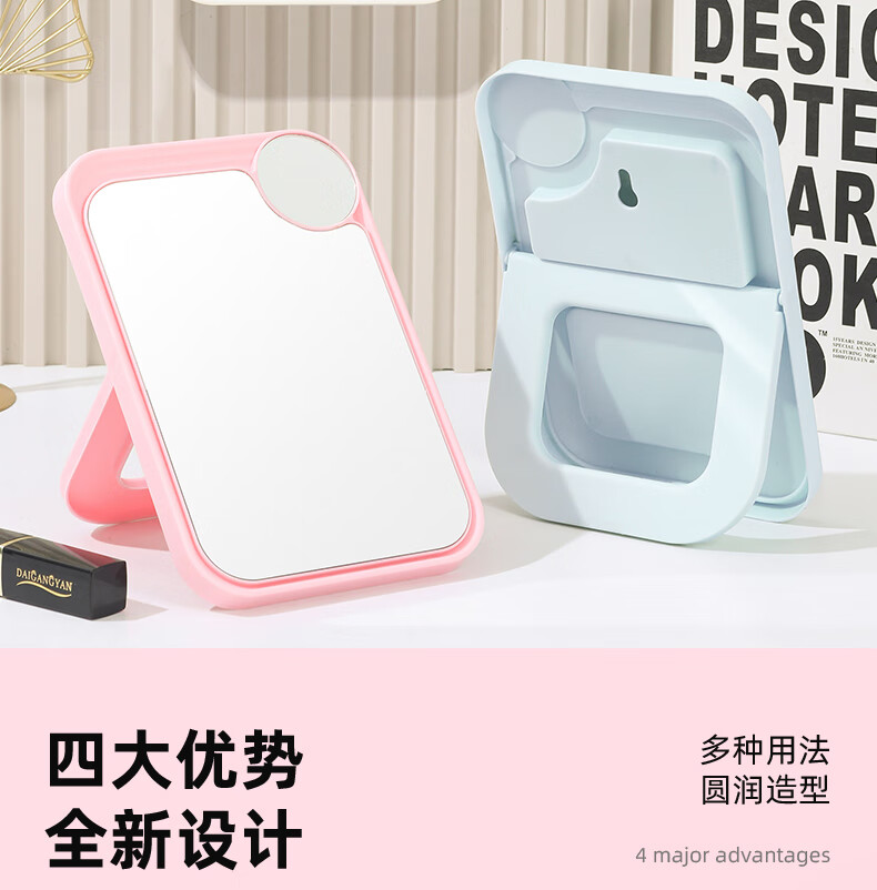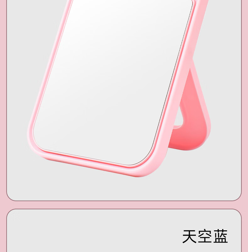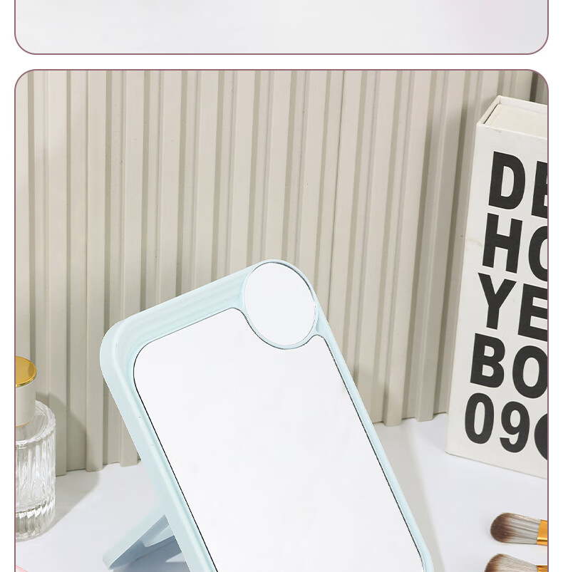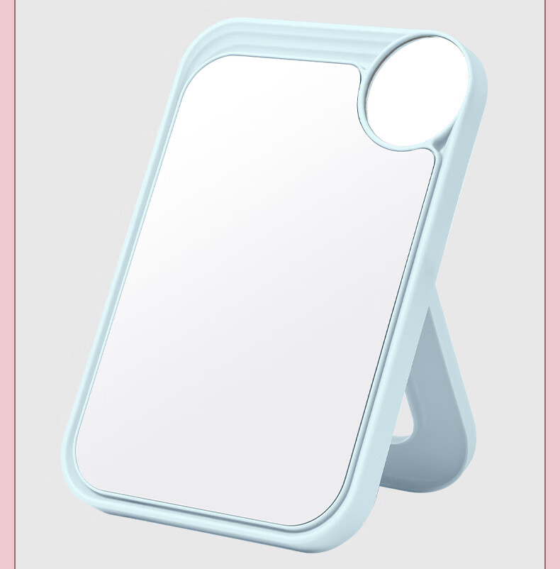 网红ins超高清化妆镜方形台式单面带放大小圆镜美发工具放大两用单面镜LED随身补光镜子 蓝色