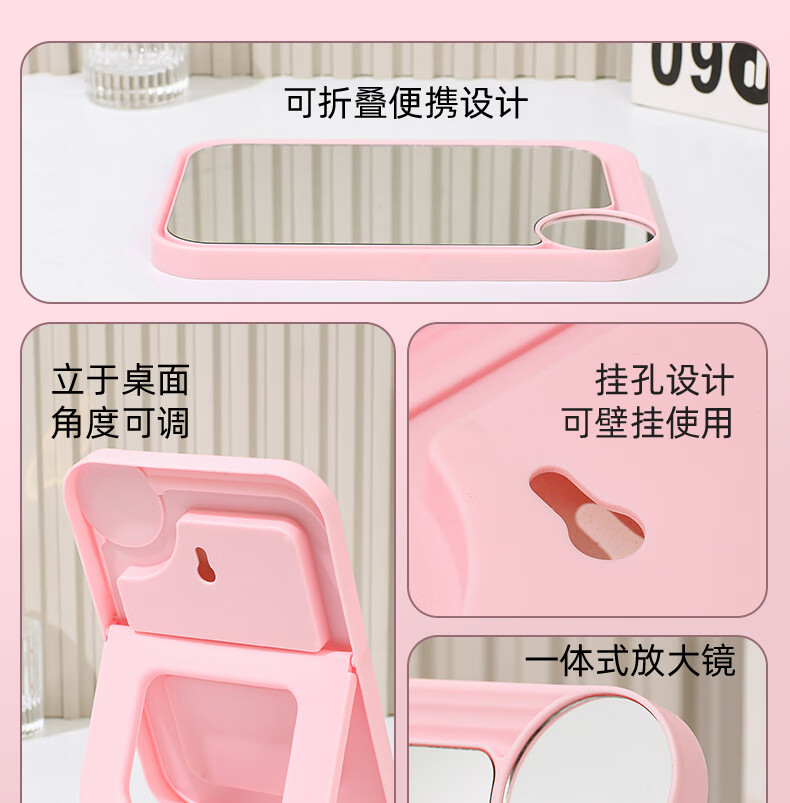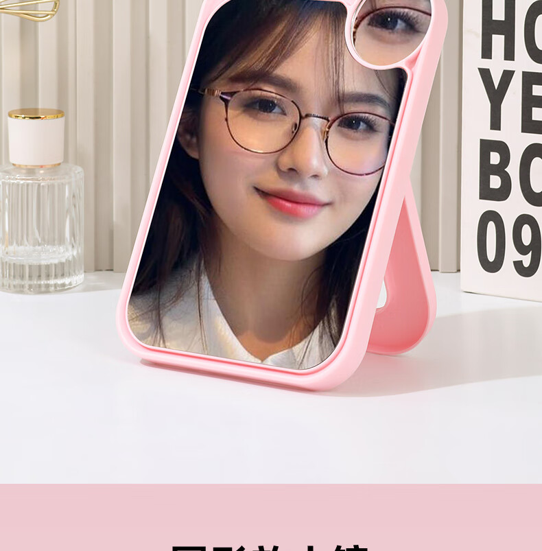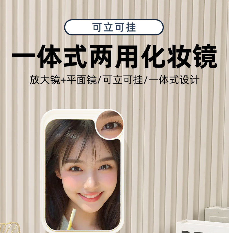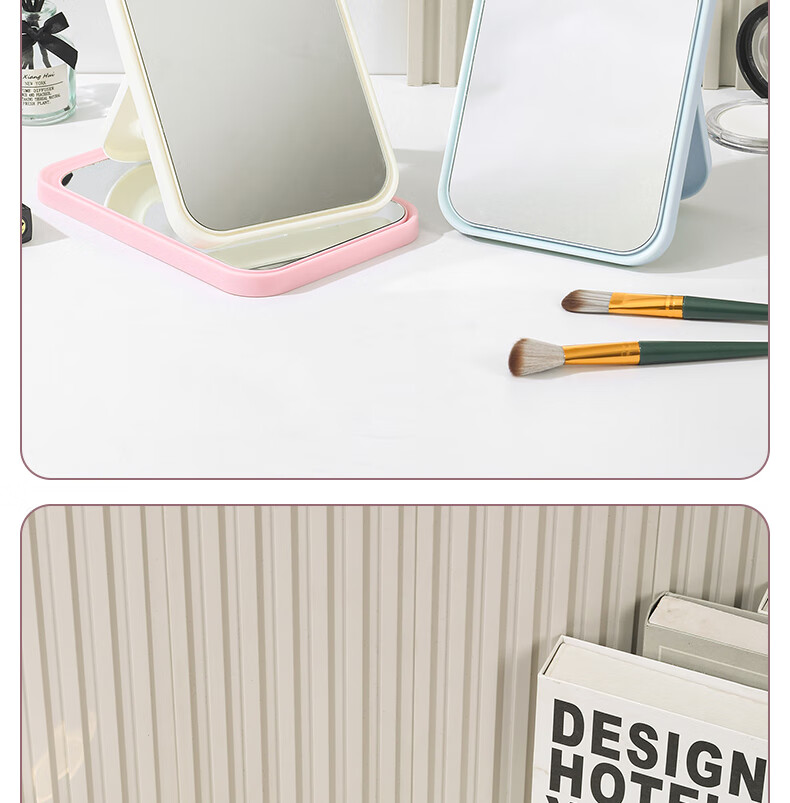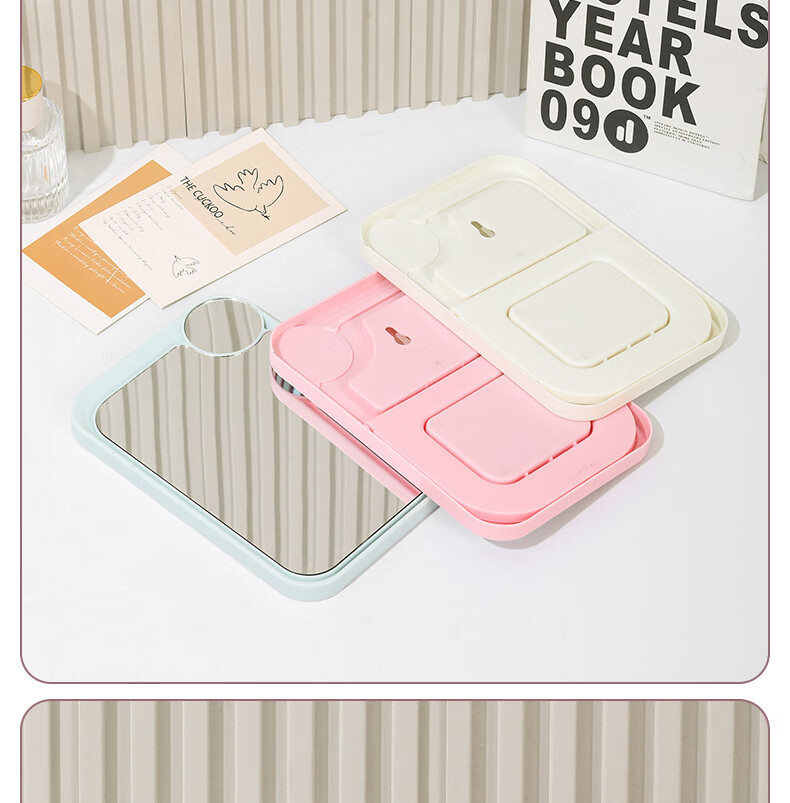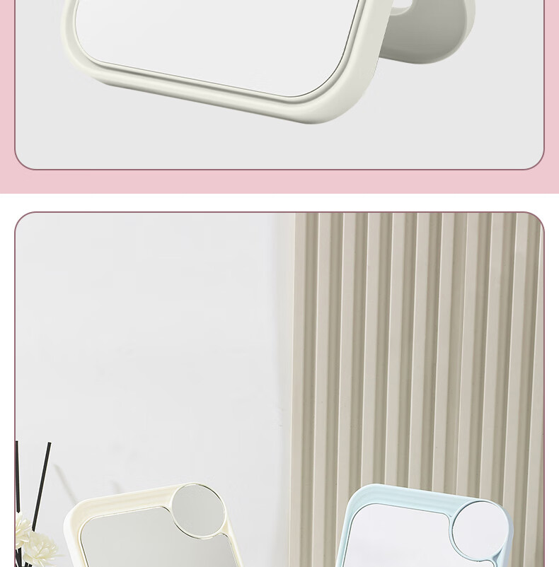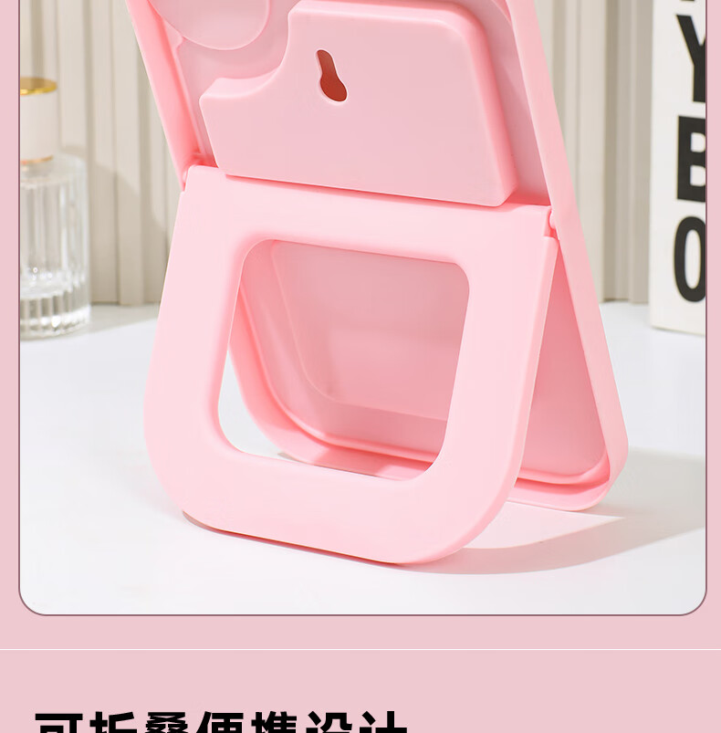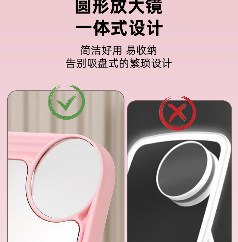 网红ins超高清化妆镜方形台式单面带放大小圆镜美发工具放大两用单面镜LED随身补光镜子 蓝色