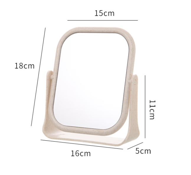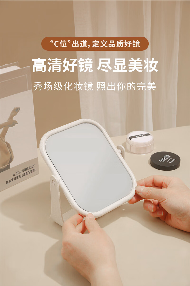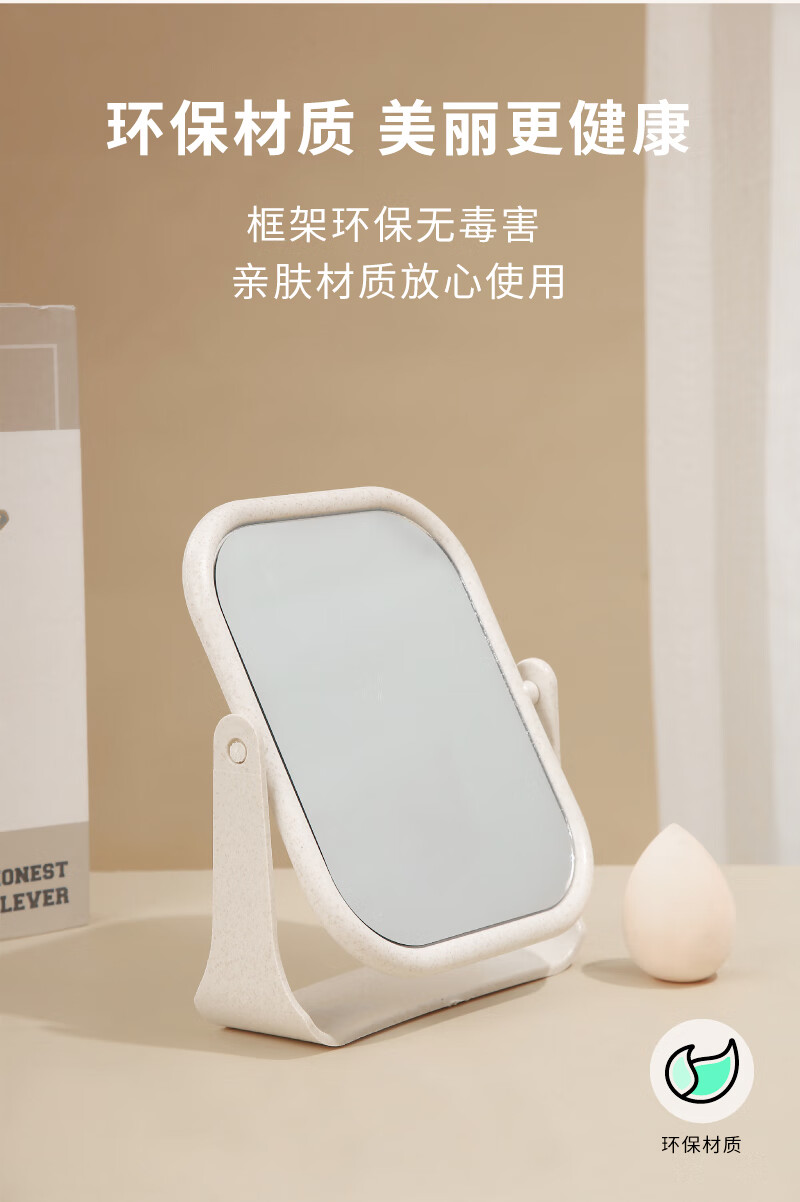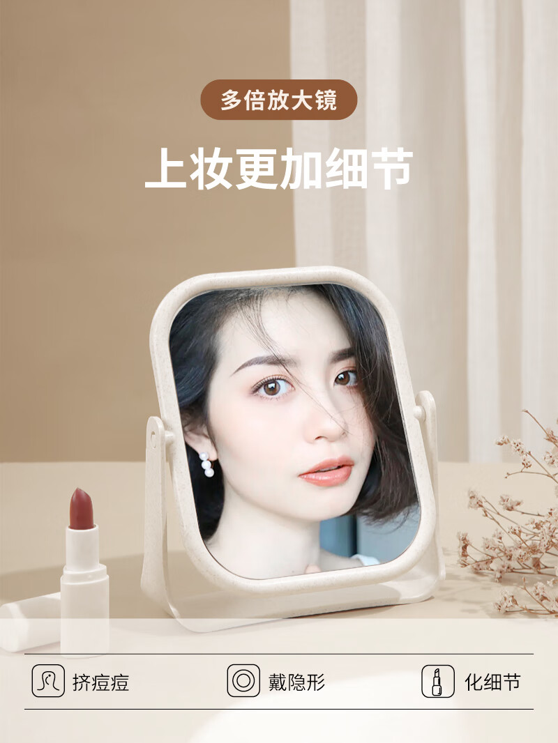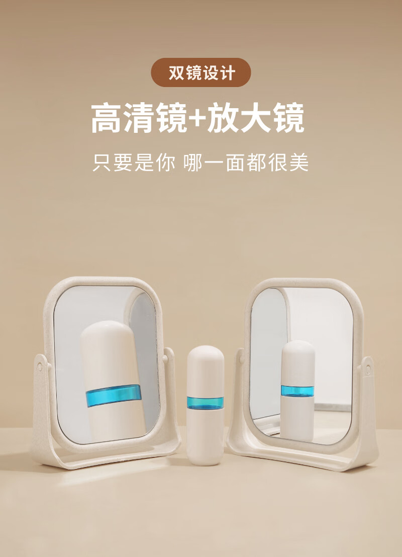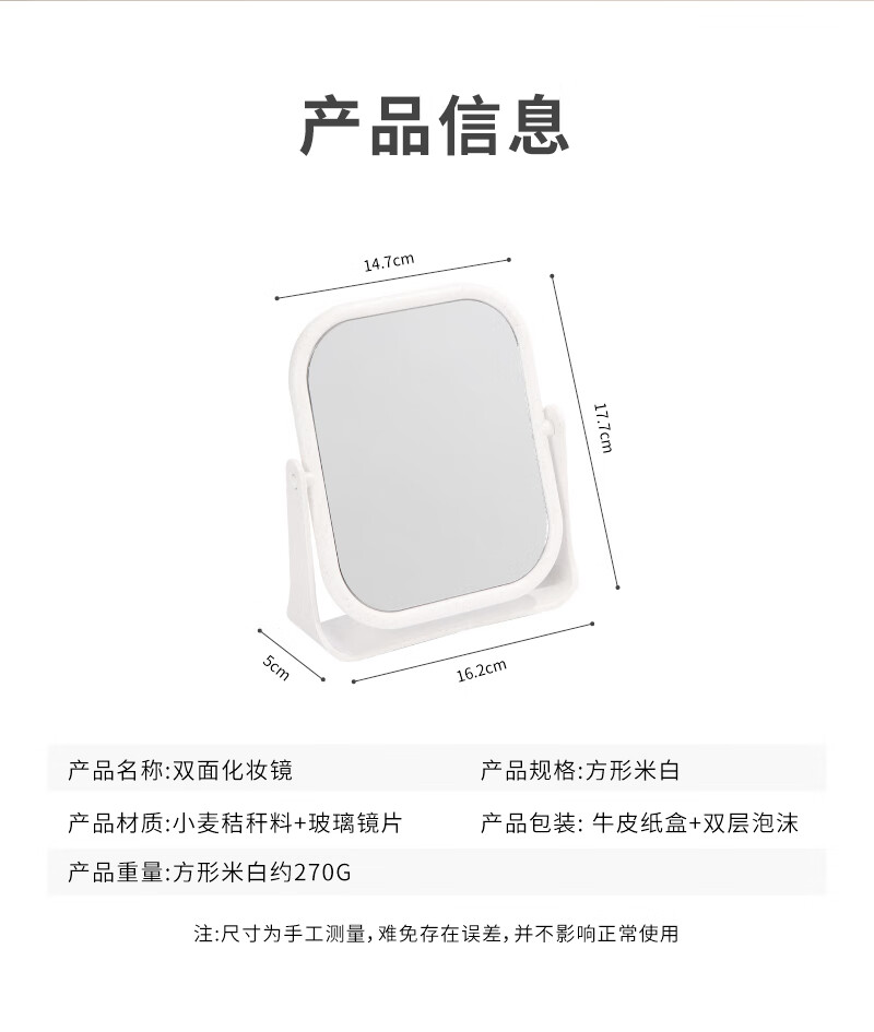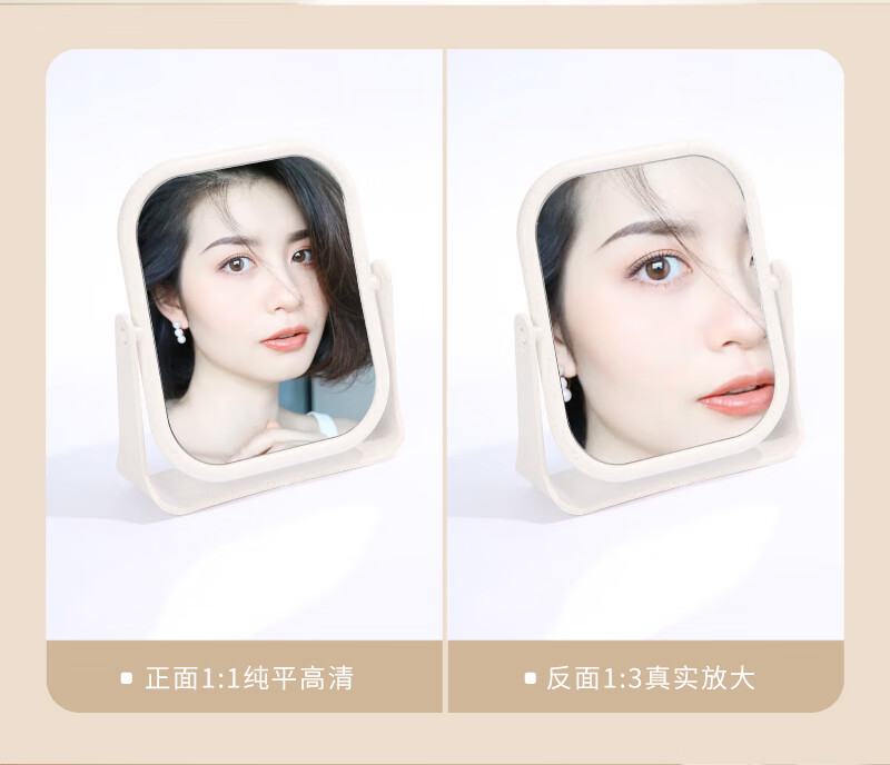 High-quality European desktop makeup mirror, simple high-definition double-sided rotatable makeup mirror, desktop standable small mirror, LED portable light-filling mirror, square off-white