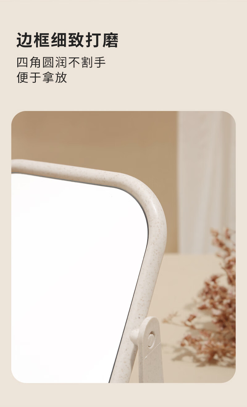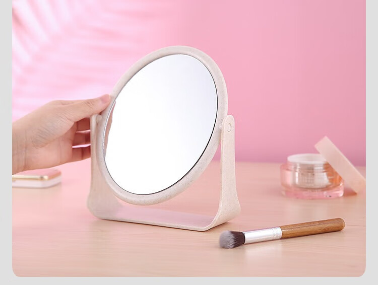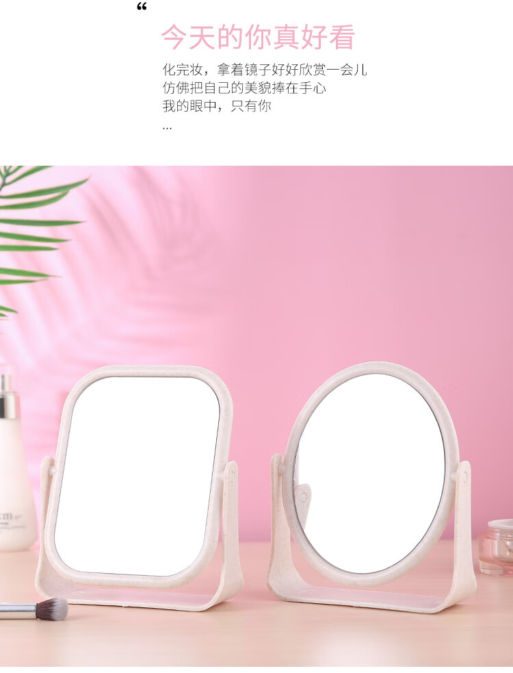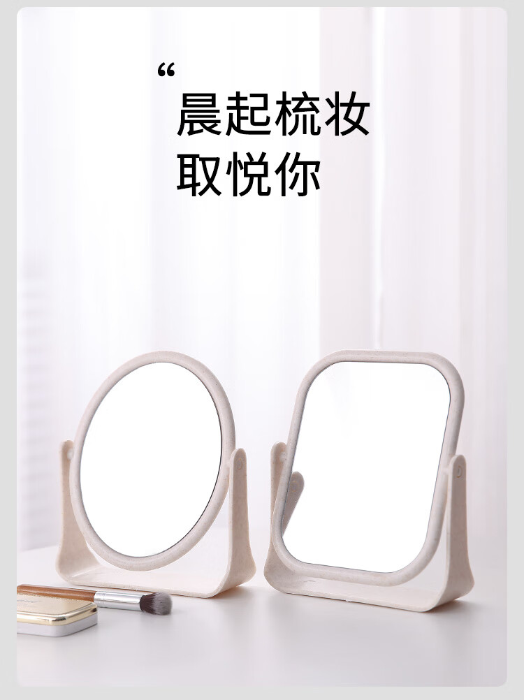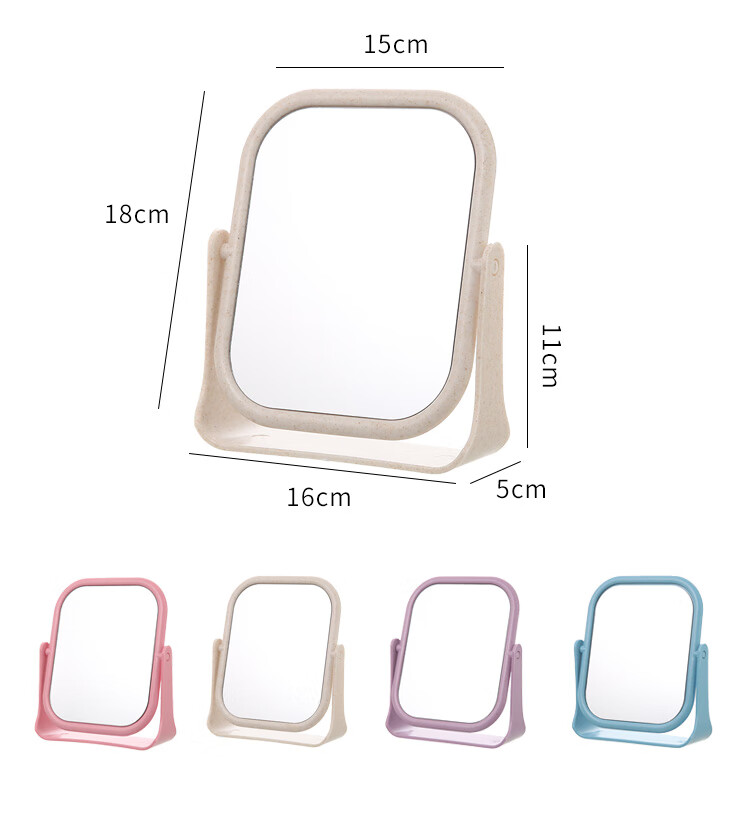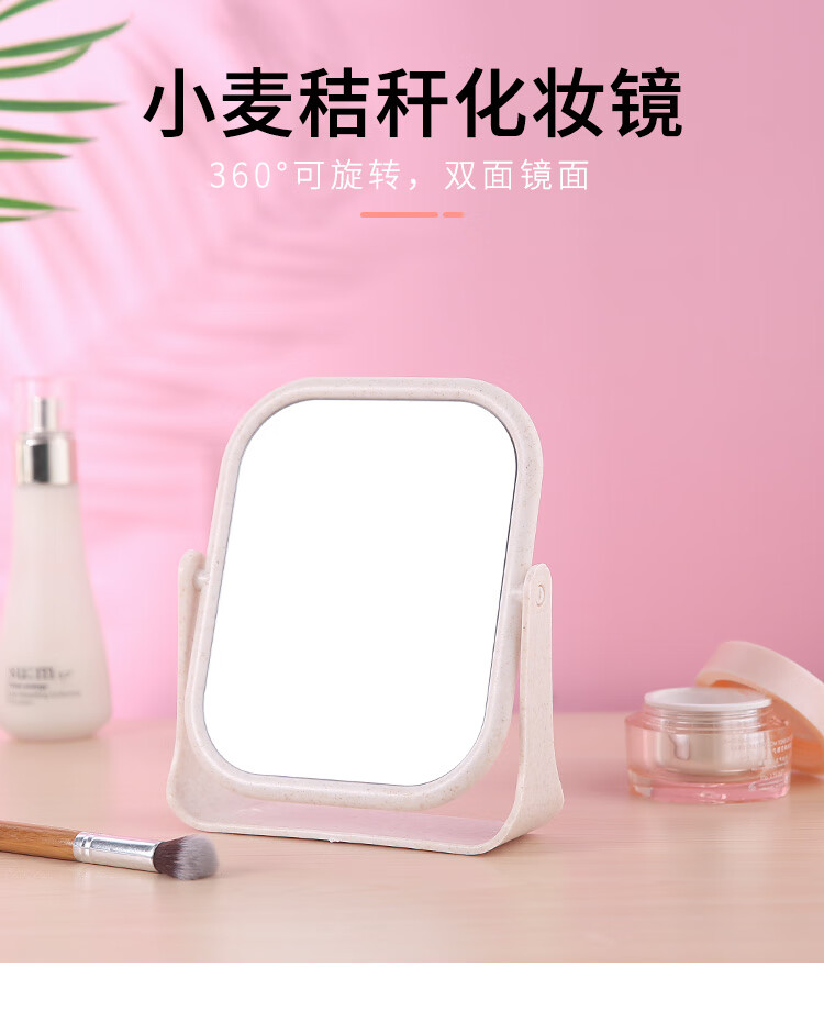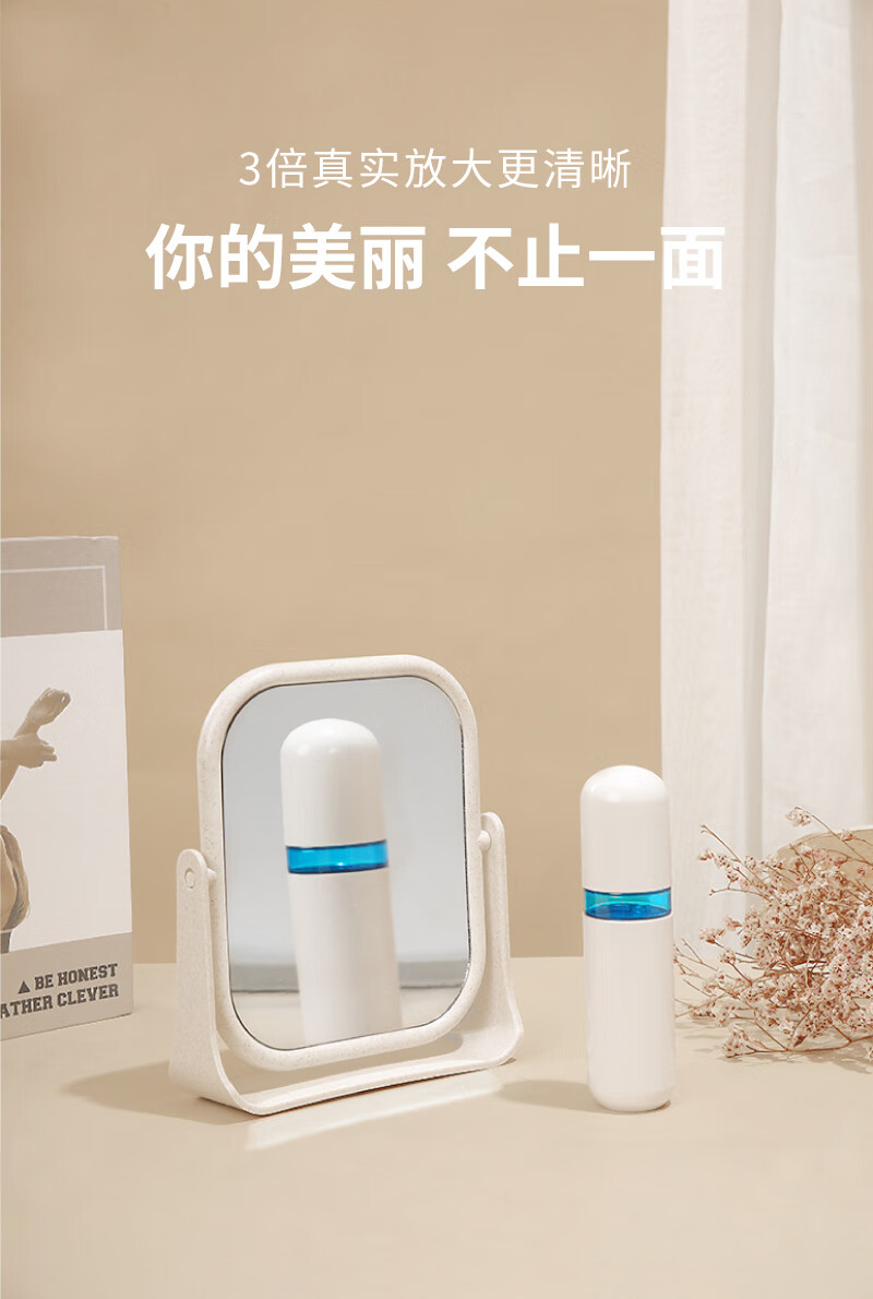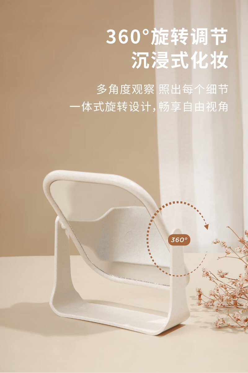 High-quality European desktop makeup mirror, simple high-definition double-sided rotatable makeup mirror, desktop standable small mirror, LED portable light-filling mirror, square off-white