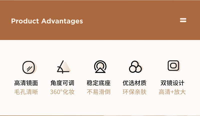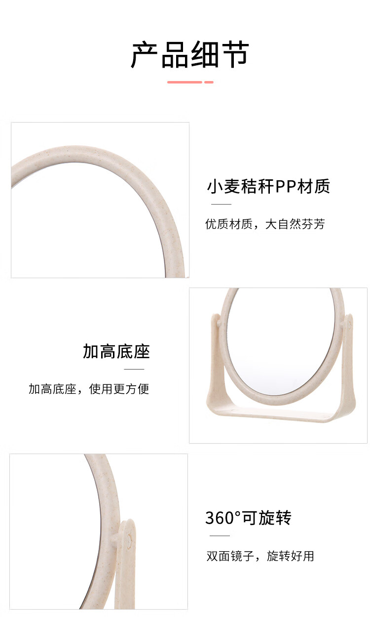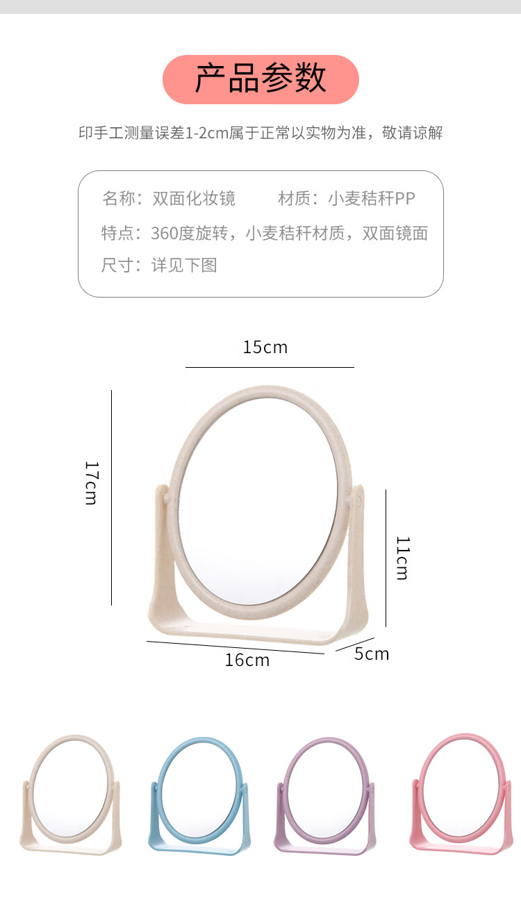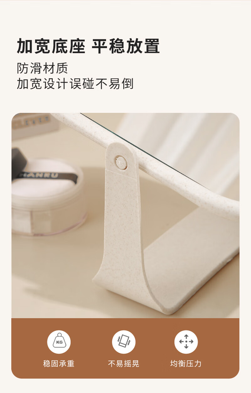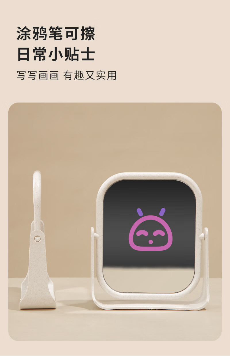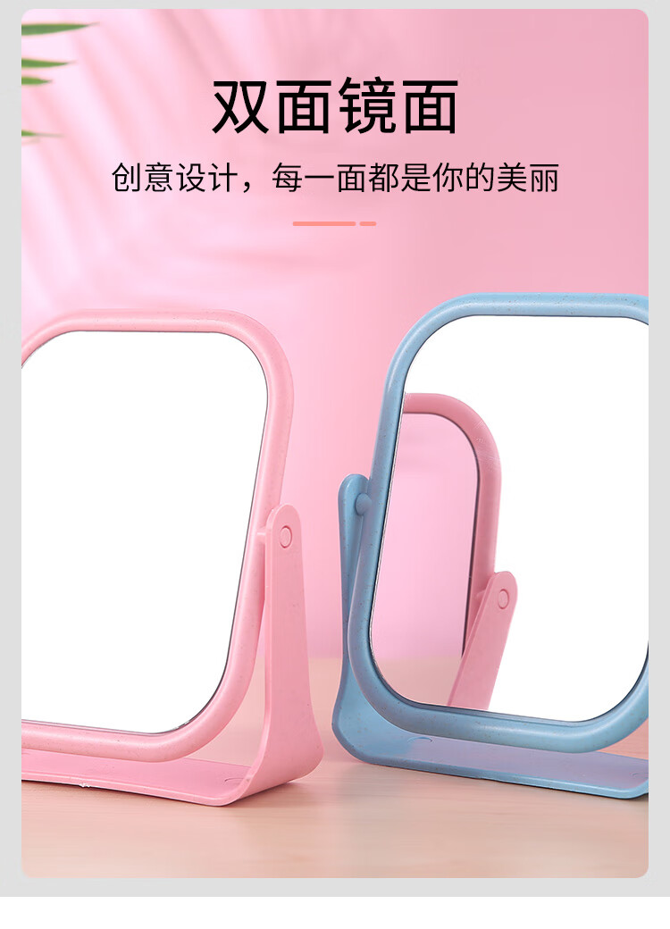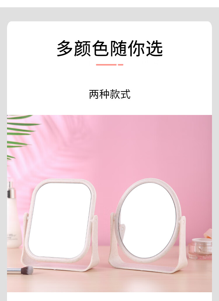 High-quality European desktop makeup mirror, simple high-definition double-sided rotatable makeup mirror, desktop standable small mirror, LED portable light-filling mirror, square off-white