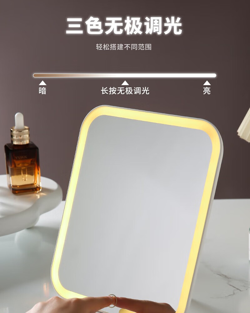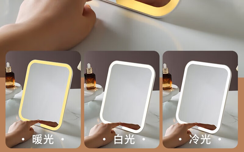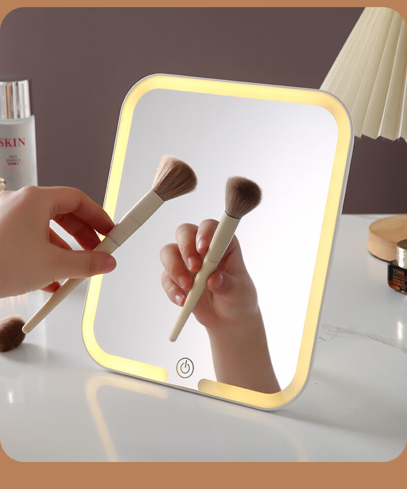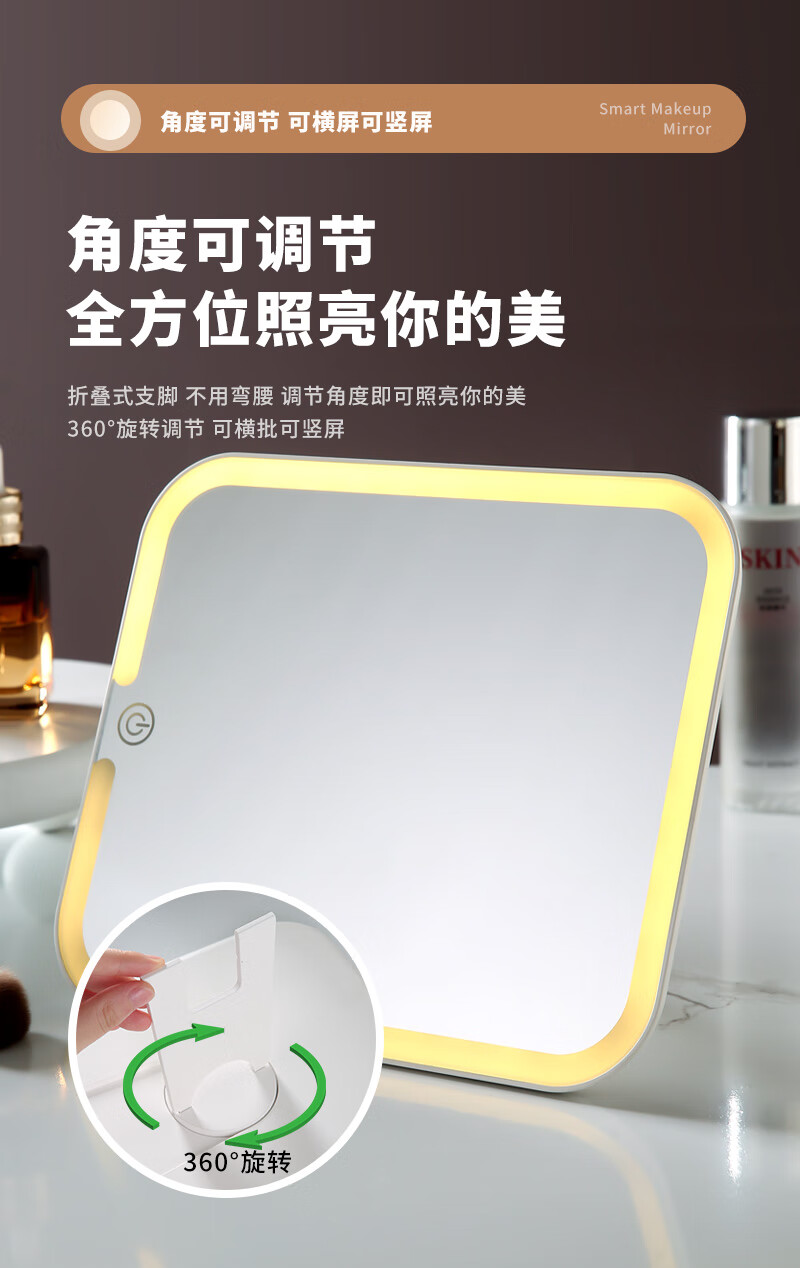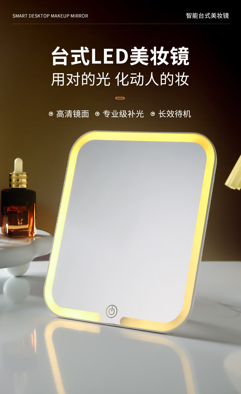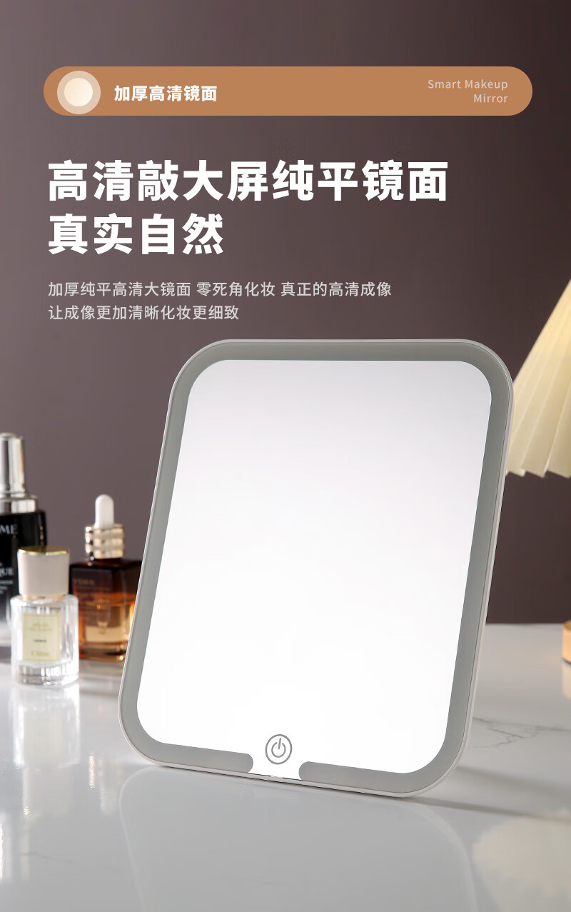 Quality assurance LED lighted makeup mirror large mirror student dormitory desktop home desktop 9-inch large screen folding light mirror dormitory bargain hunting limited time white 19.9*23*1.3